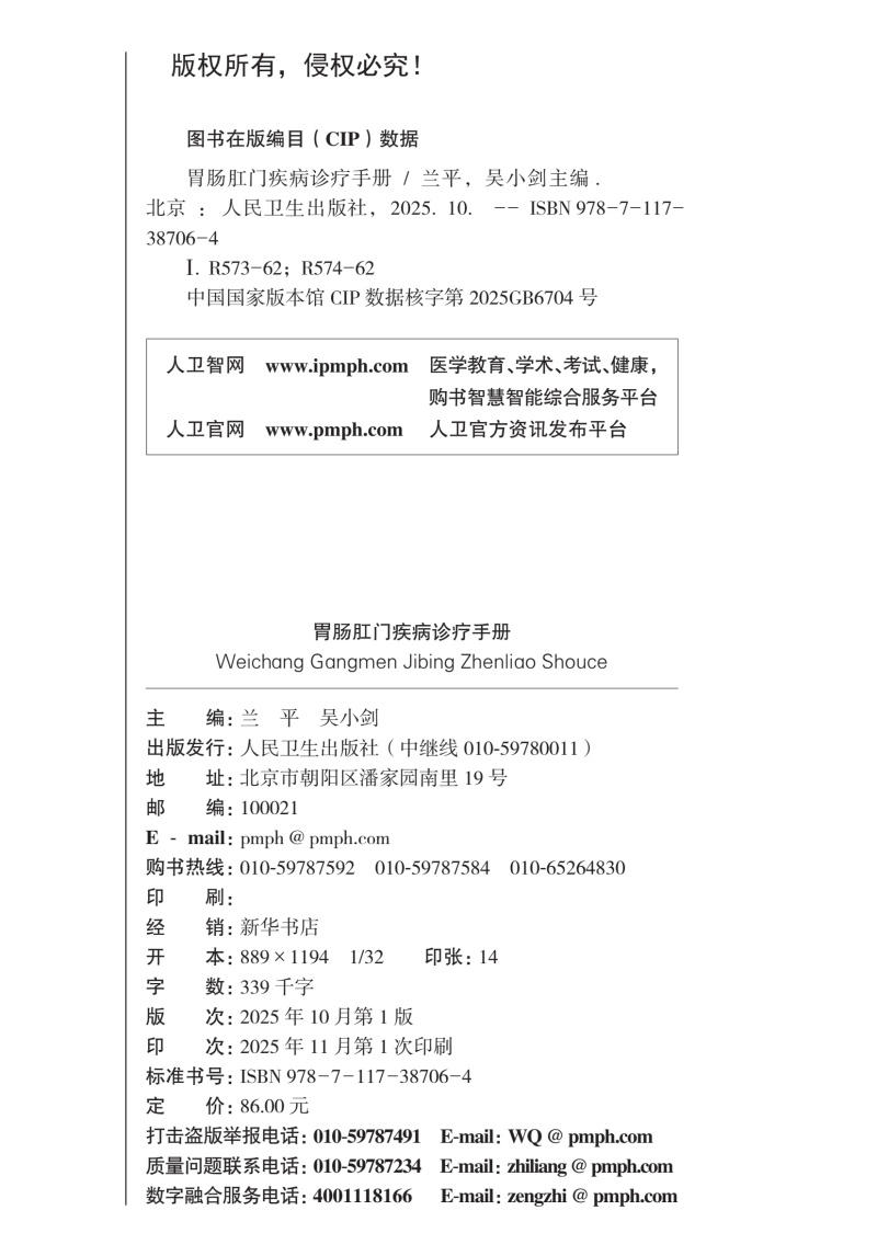 胃肠肛门疾病诊疗手册 兰平 吴小剑 主编 介绍胃肠肛门门]疾病的内科常规诊疗 外科常规诊疗 影像诊断 病理诊断等 人民卫生出版社