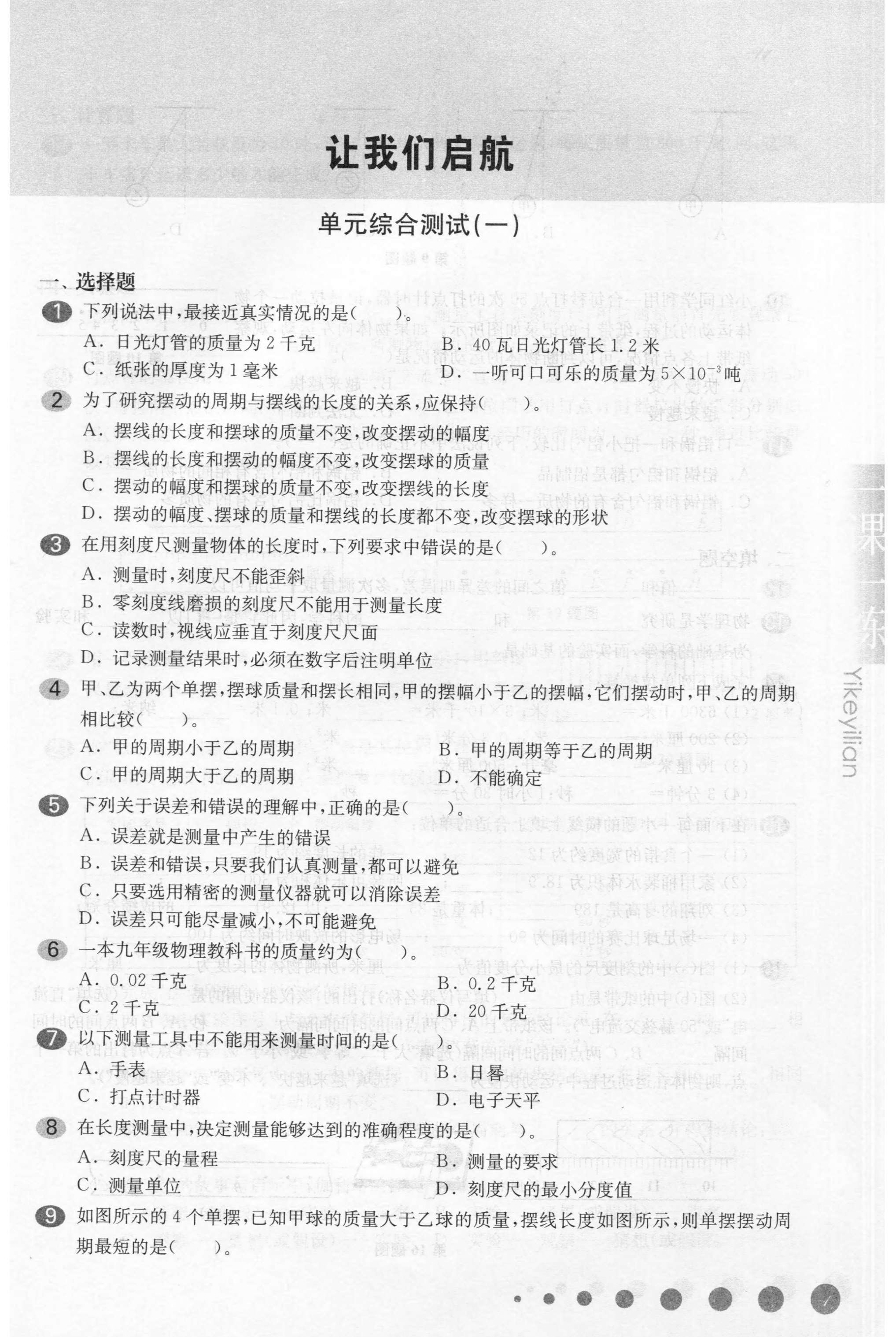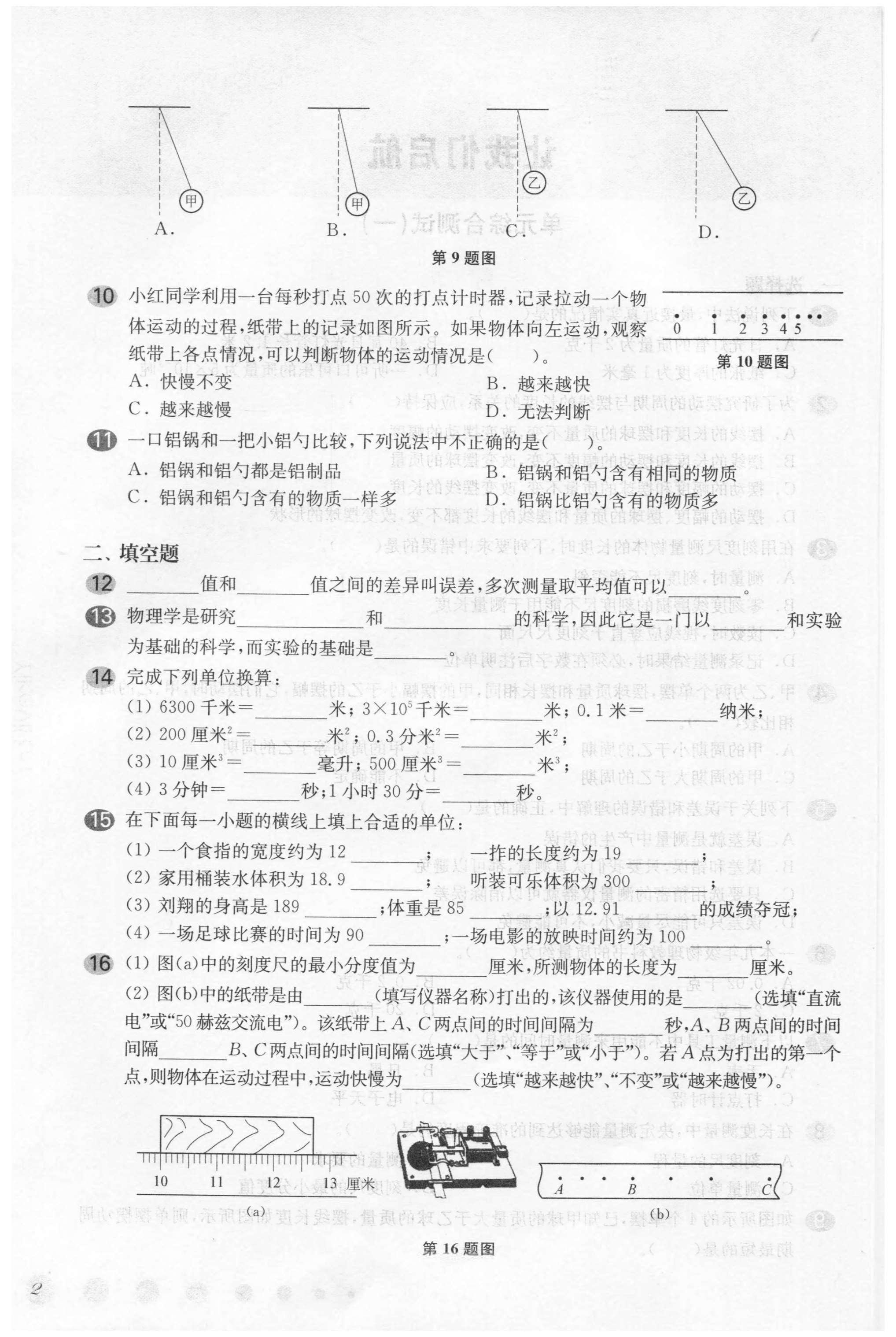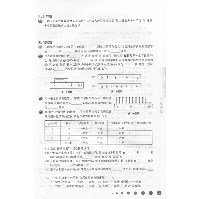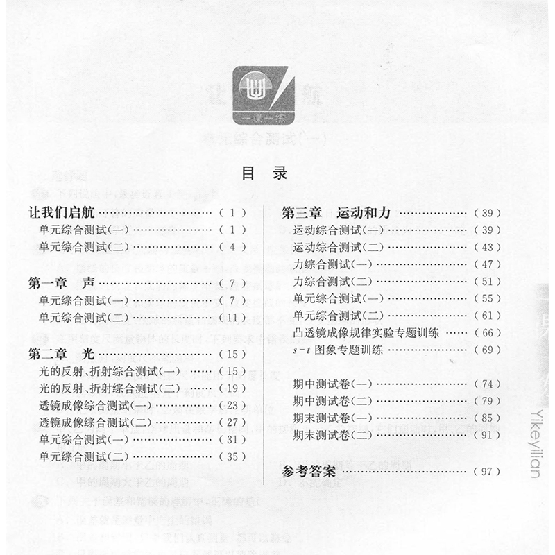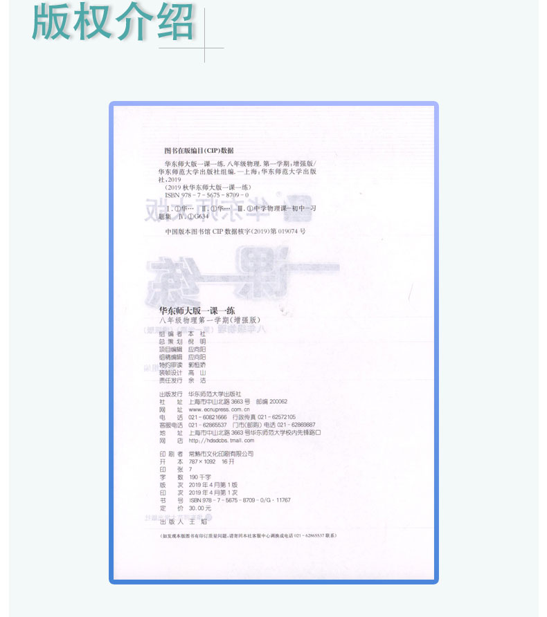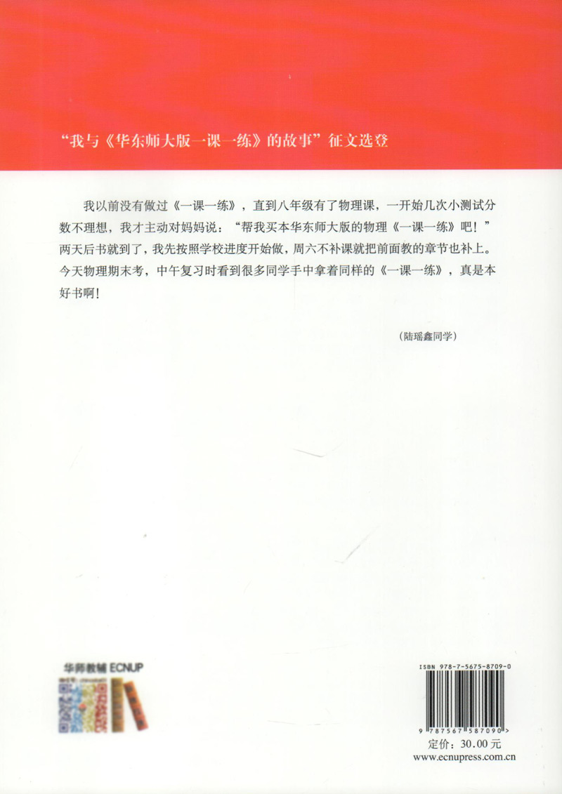 2020新版 华东师大版一课一练 物理 增强版 八年级上册/8年级第一学期 上海初中初二教材教辅配套课后同步练习 华东师范大学出版社