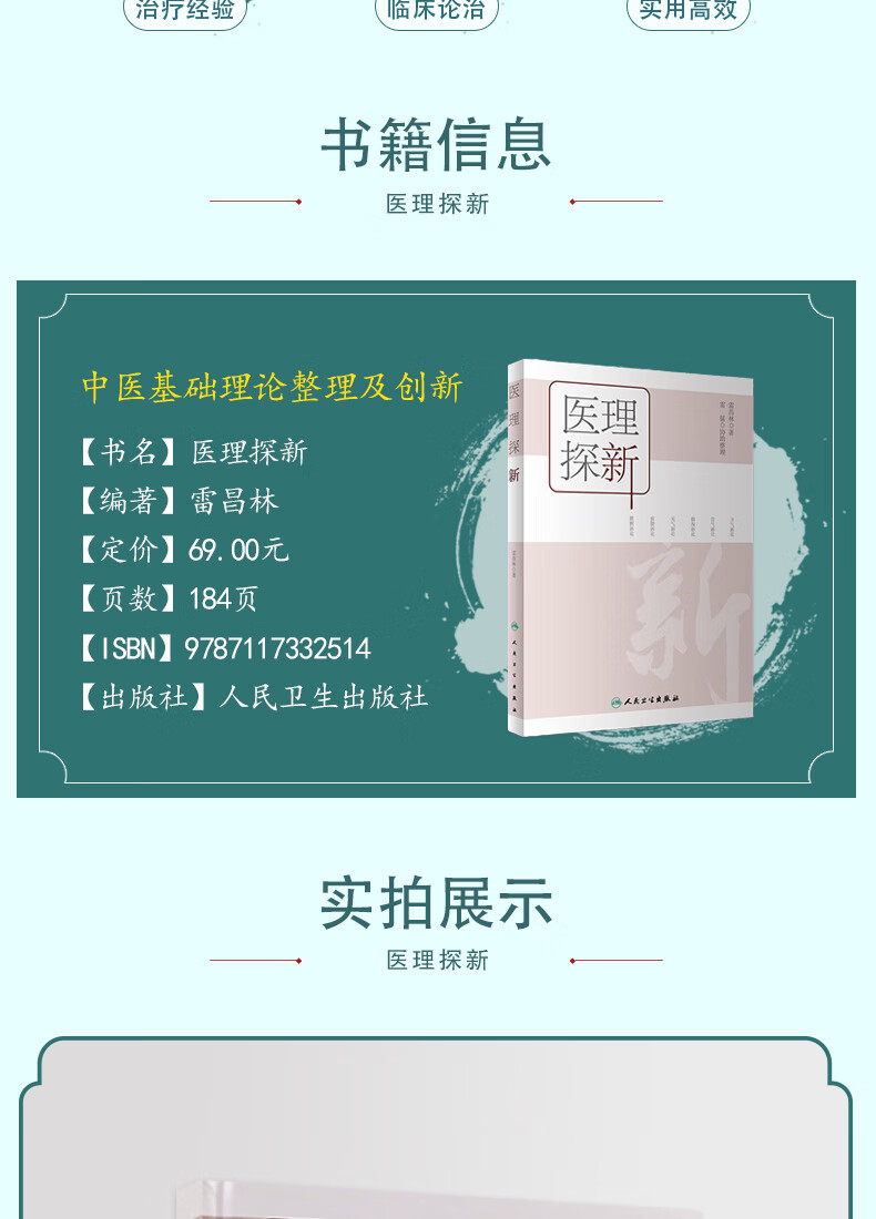 医理探新 雷昌林著 中医基础理论整理及创新中医卫气营气痰脂脏腑经络临床 雷猛协助整理 人民卫生出版社9787117332514
