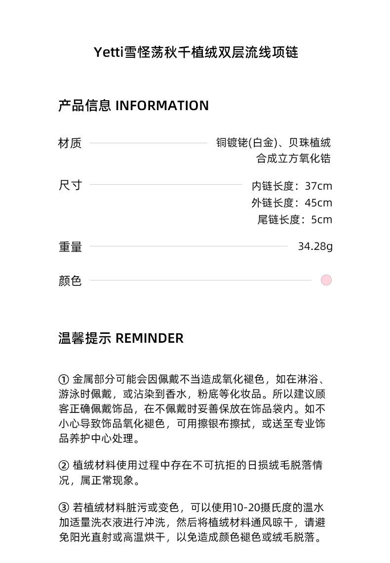 lost in echo2023秋冬新品Yetti荡秋千植绒双层流线项链锁骨链女