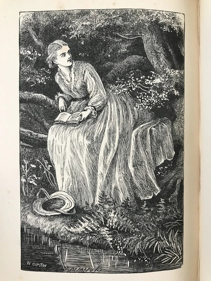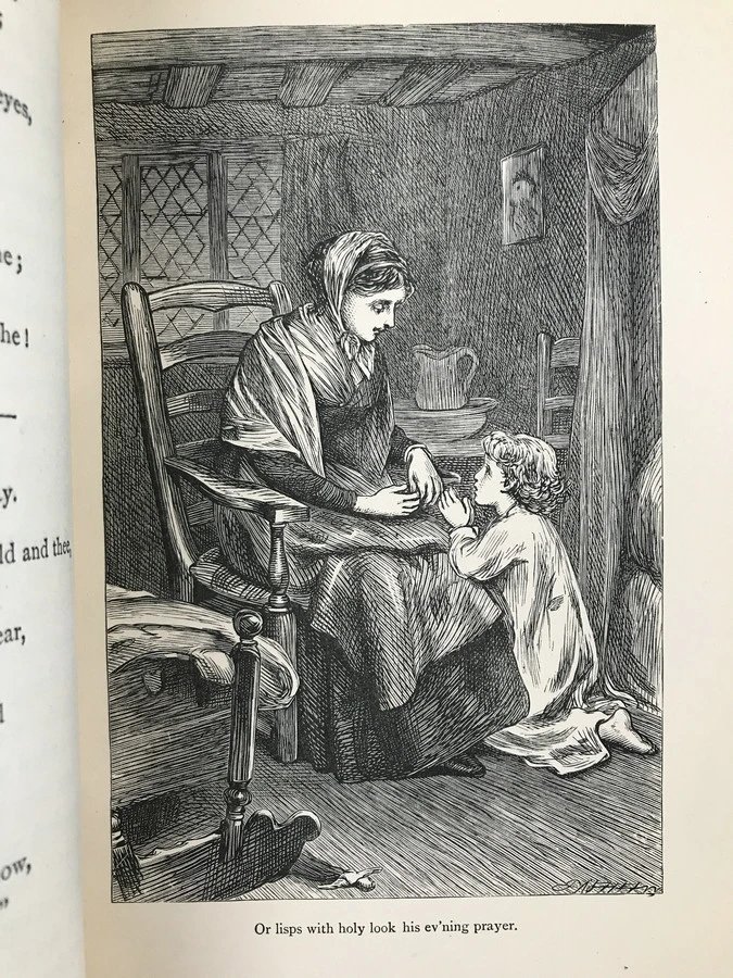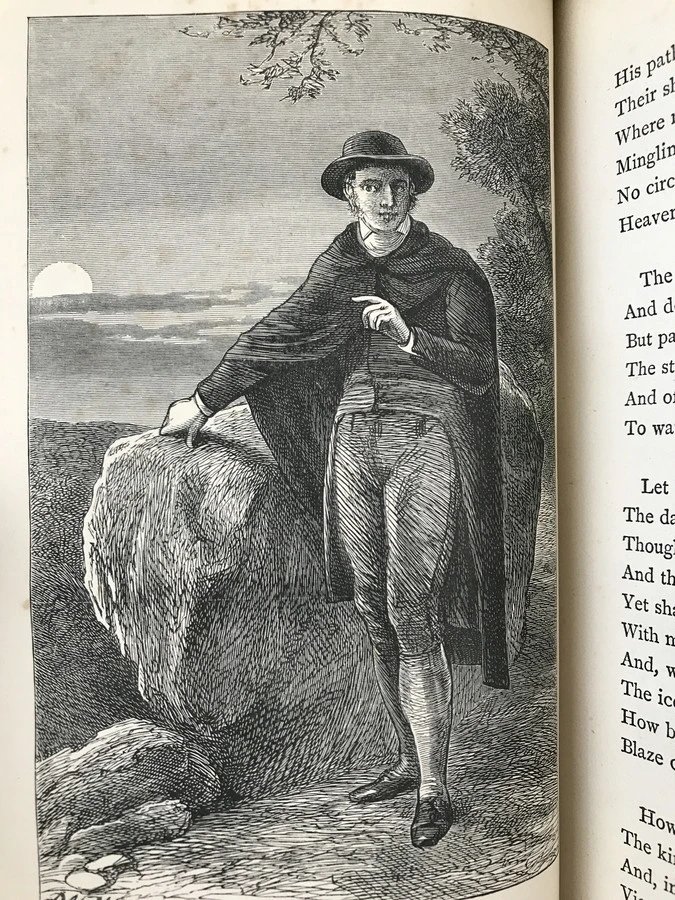 特装本!约19世纪后期 坎贝尔诗集 9幅版画插图 全真皮精装36开