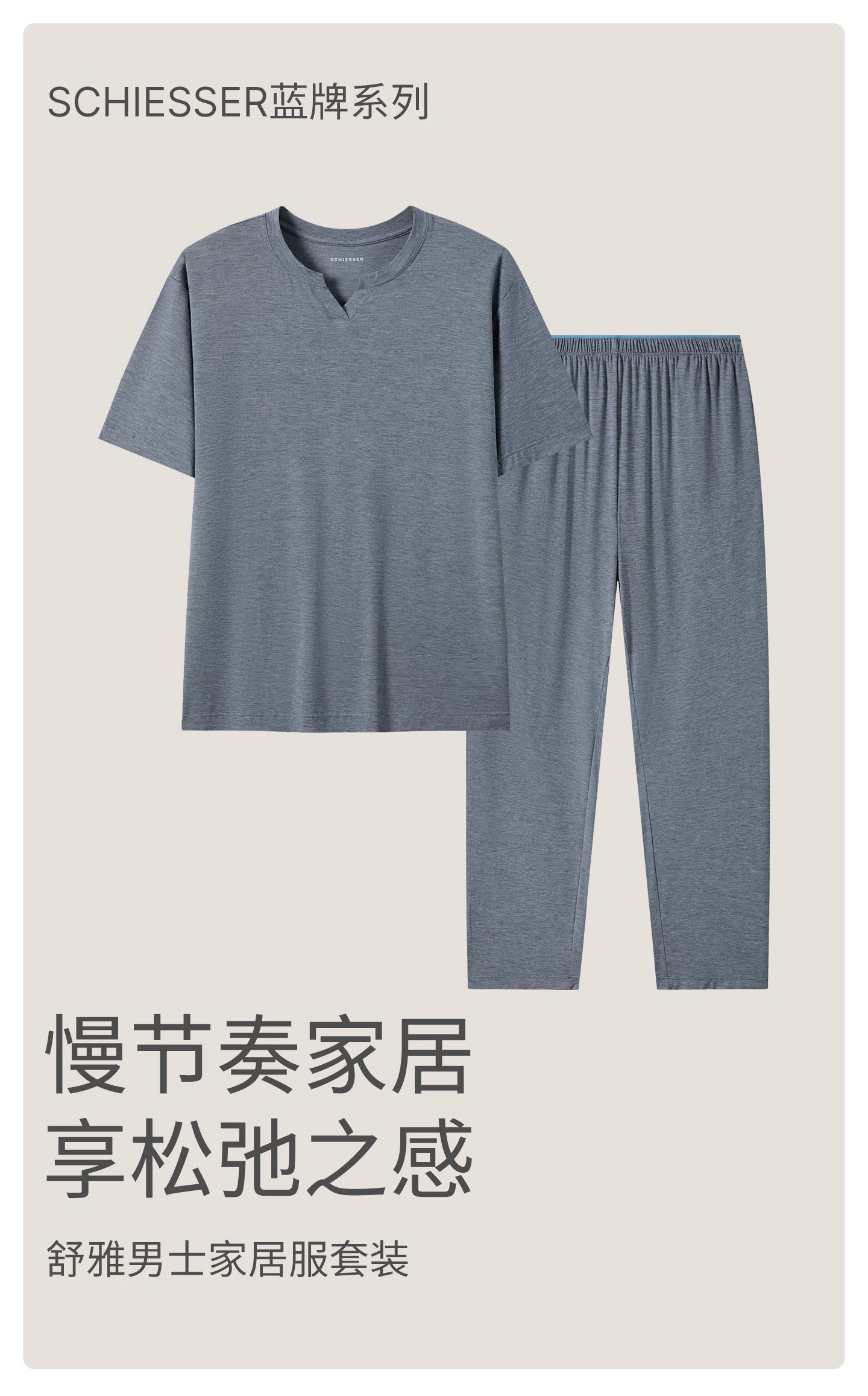 【竹纤维提花平纹系列】SCHIESSER德国舒雅男士竹纤维提花平纹家居外穿短袖长裤套装39/26840H