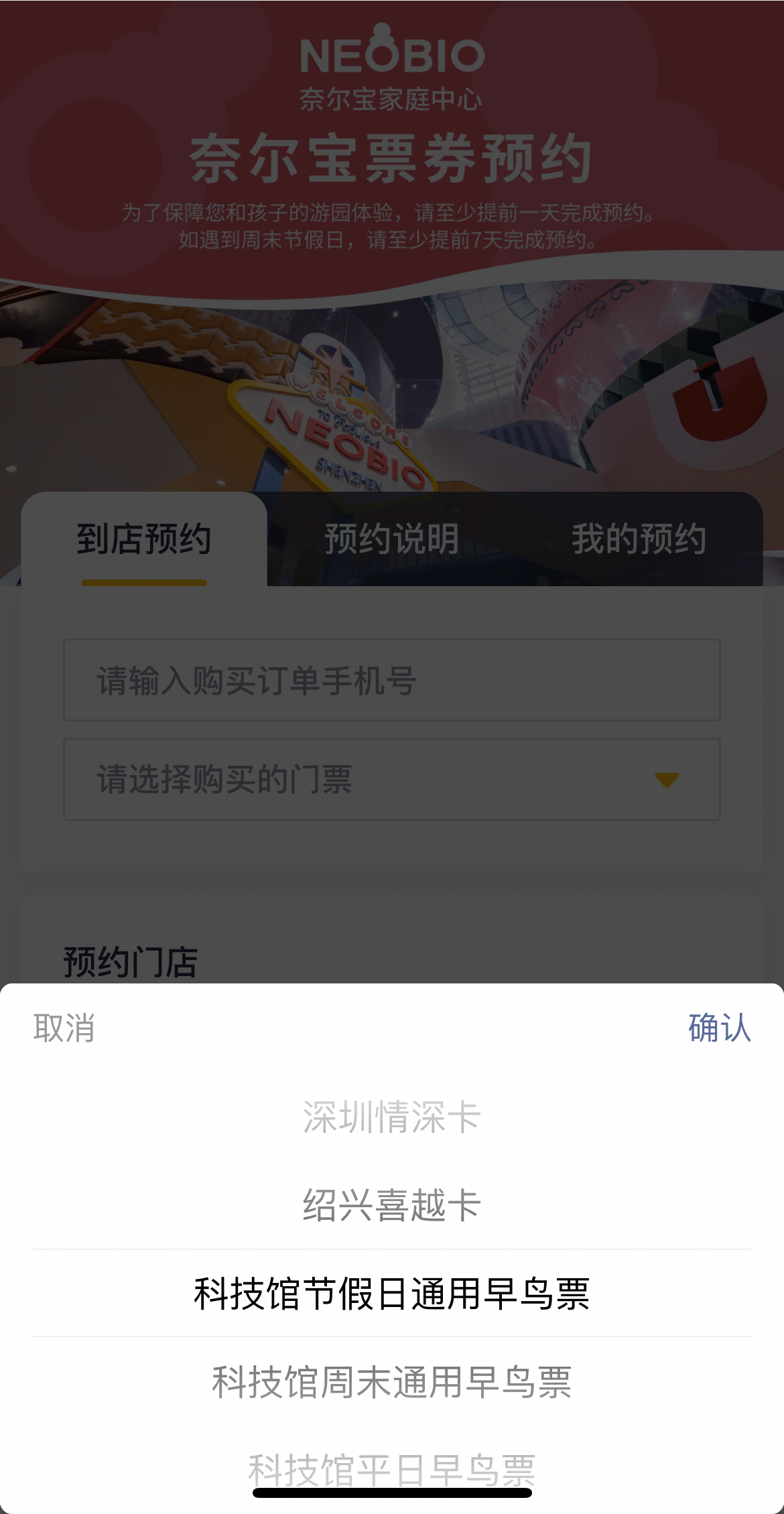 【预约提示】进入预约页面后务必先选择购买的门票种类再选择门店、日期及人数。