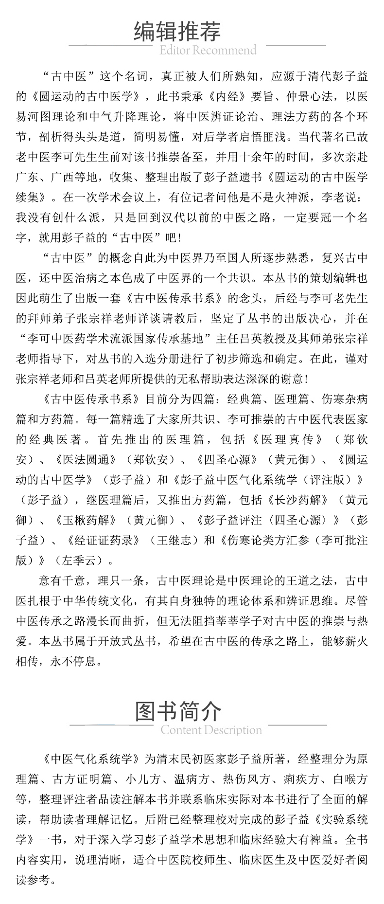 书名:彭子益中医气化系统学 评注版 古中医传承书系之医理篇