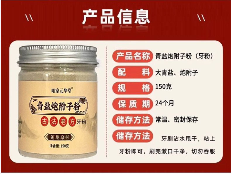 青盐炮附牙粉 小白牙刷牙粉青盐炮附粉青海青盐中老年刷牙粉