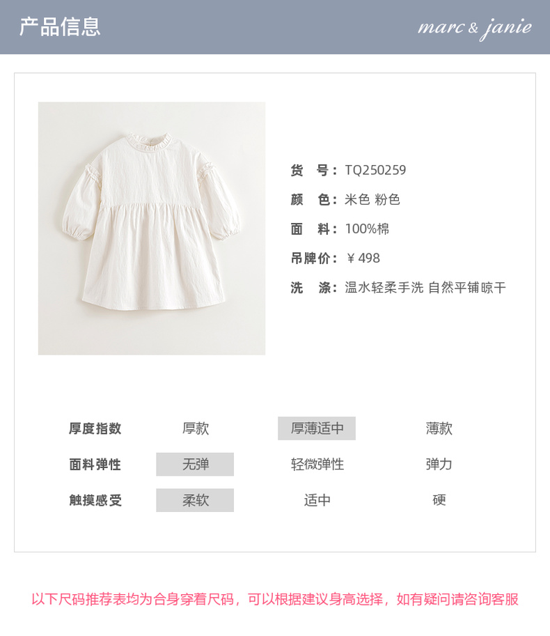 马克珍妮2025年春装新款女童甜美提花A字纯棉连衣裙250259