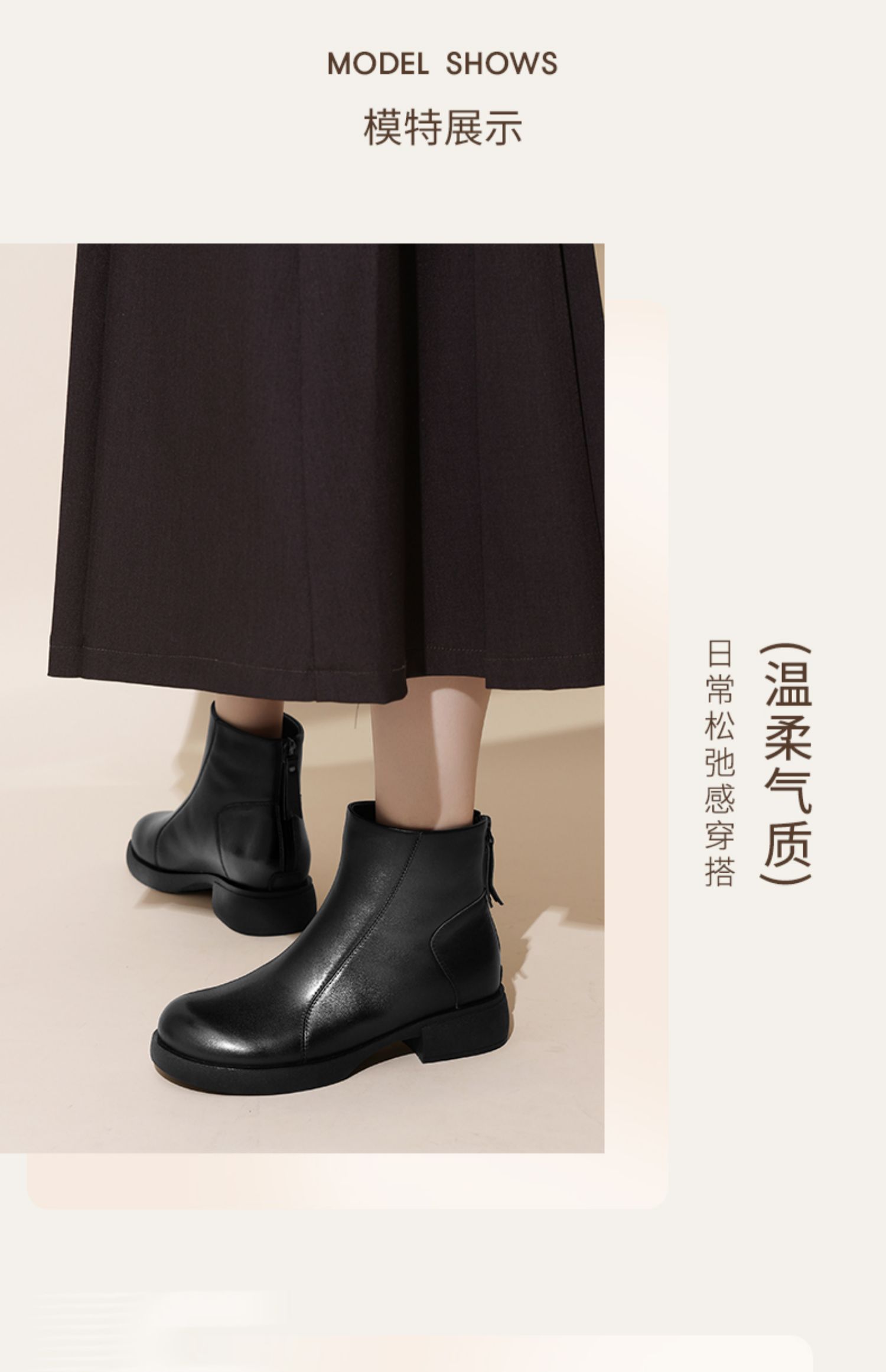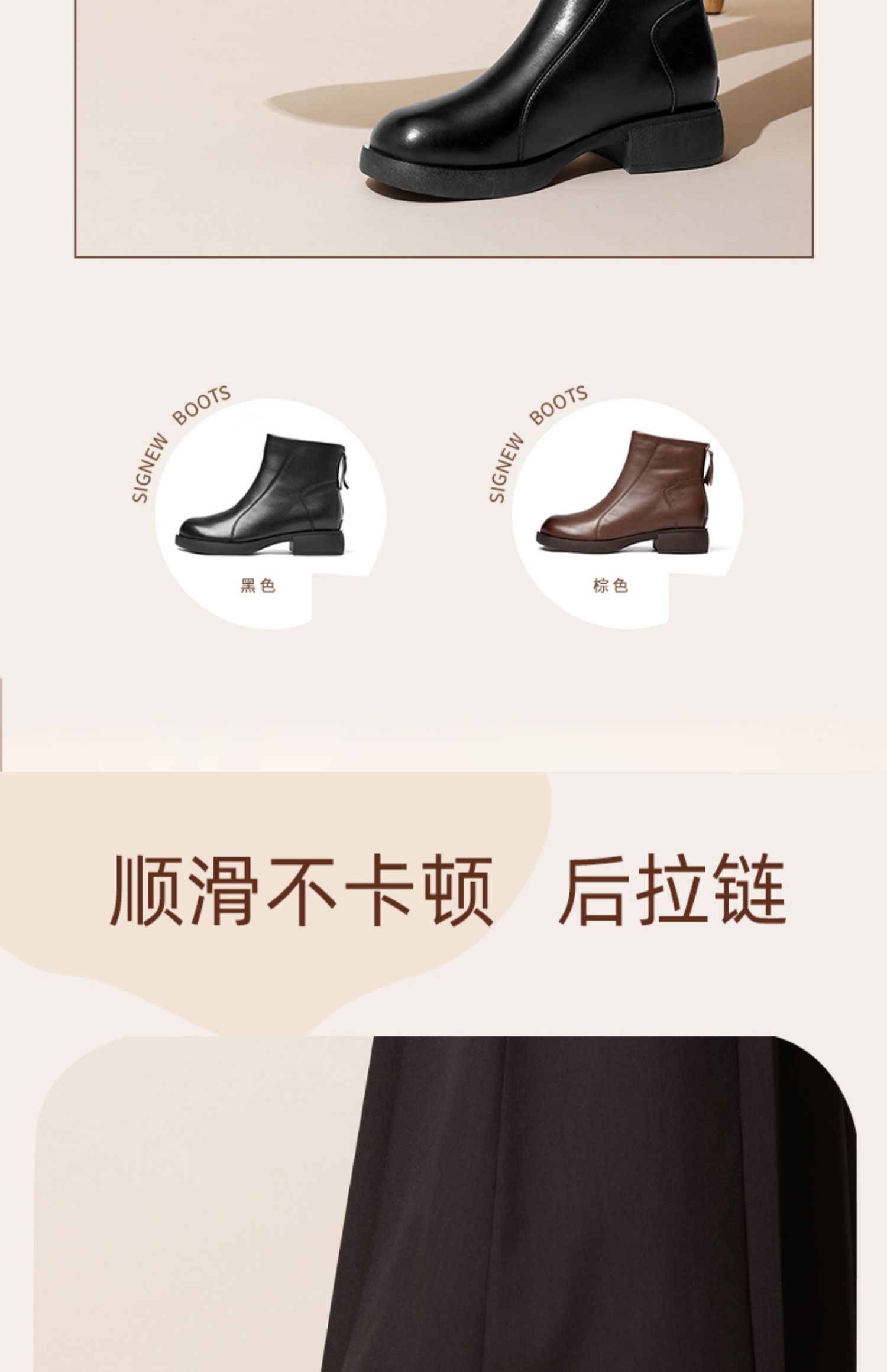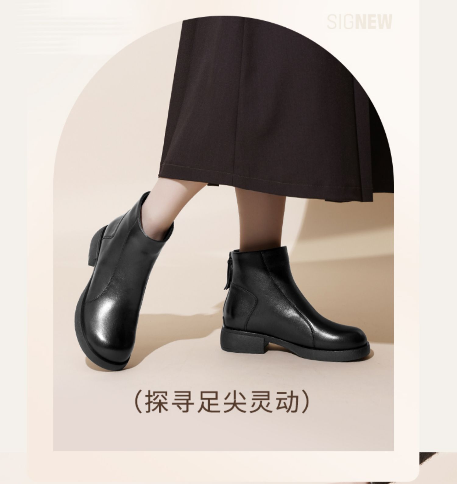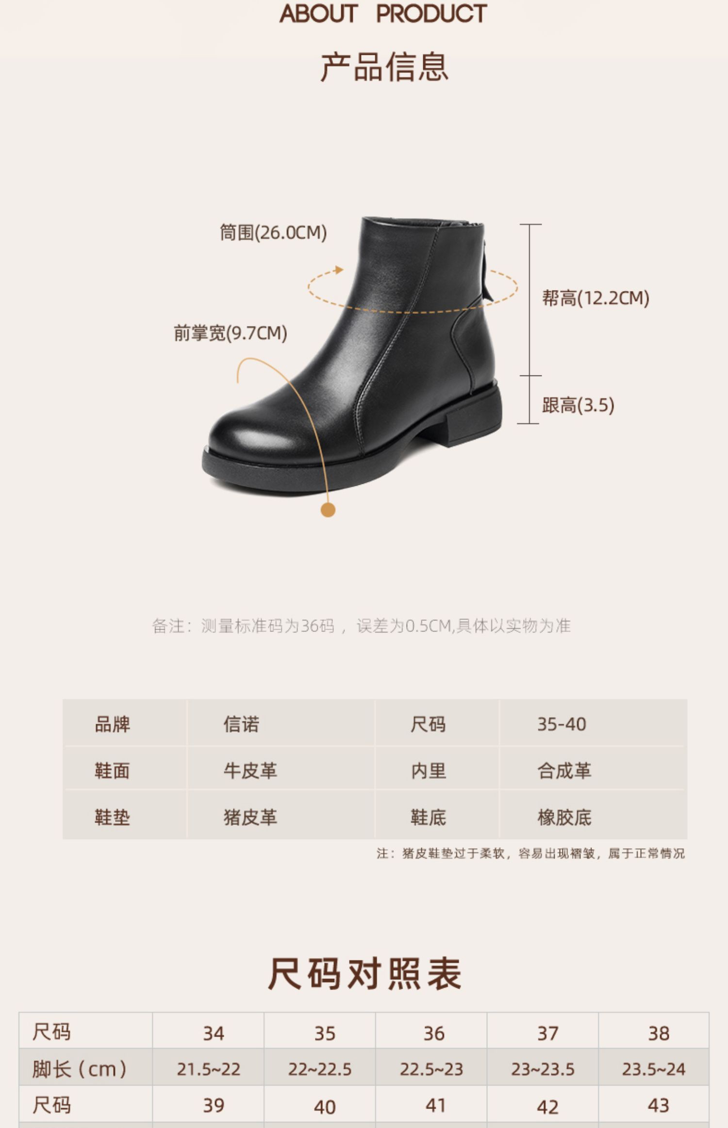 信诺真皮厚底英伦单靴切尔西弹力靴女鞋子复古短靴子2024秋冬新款M178-8C