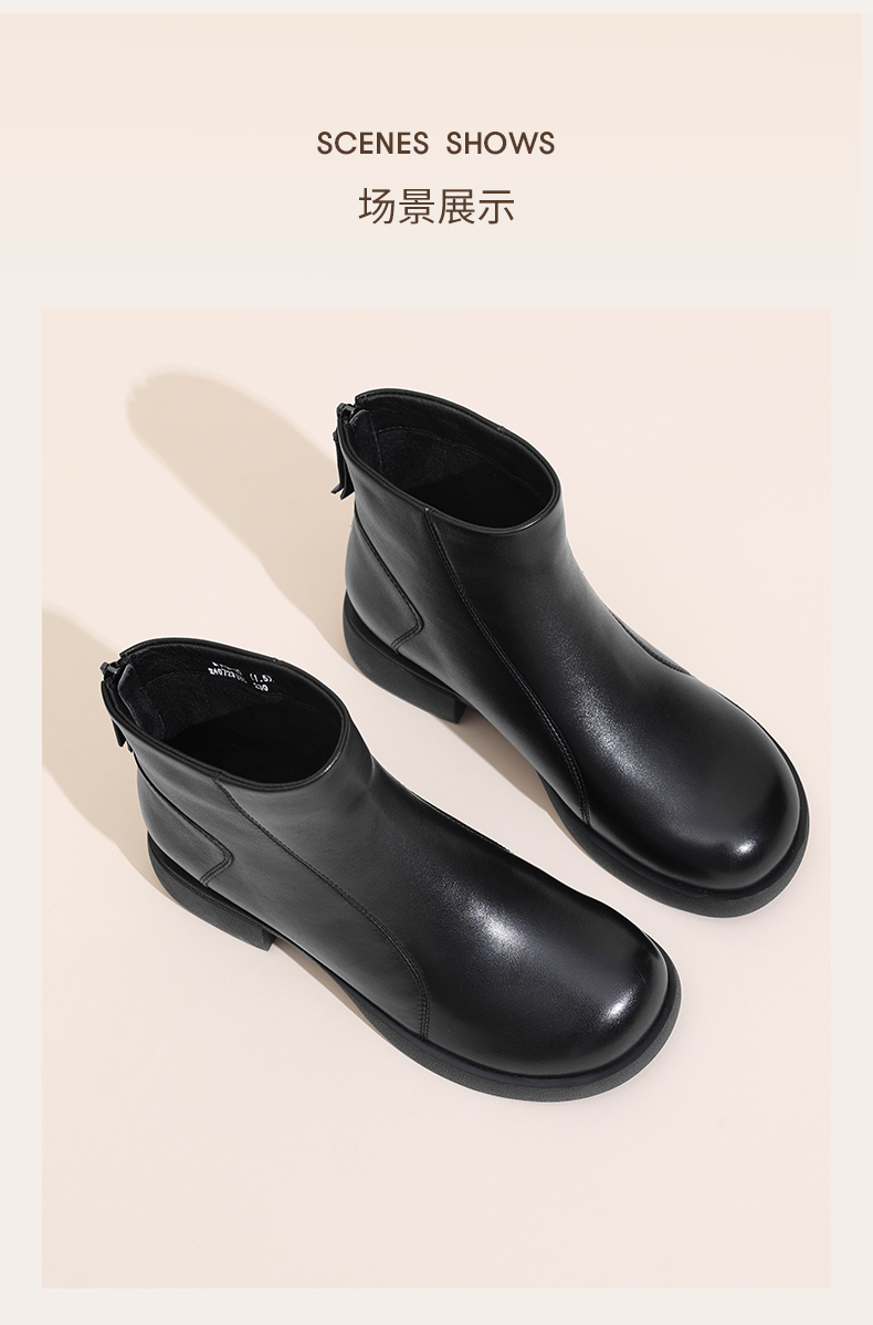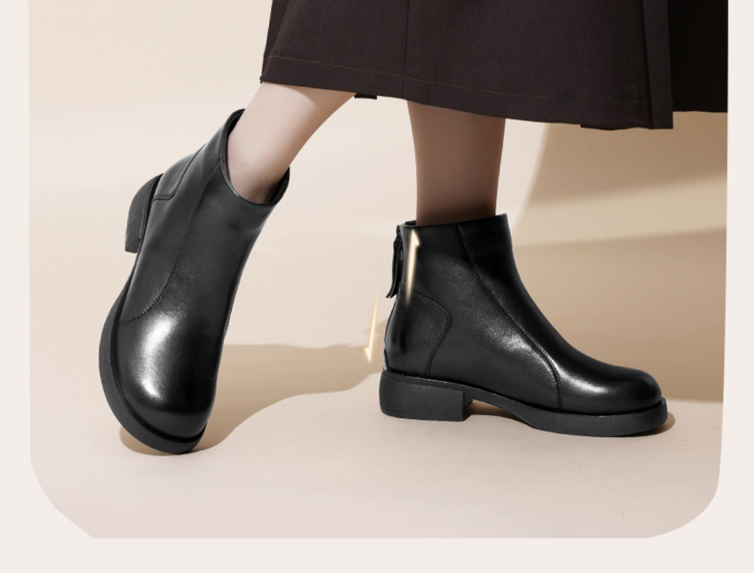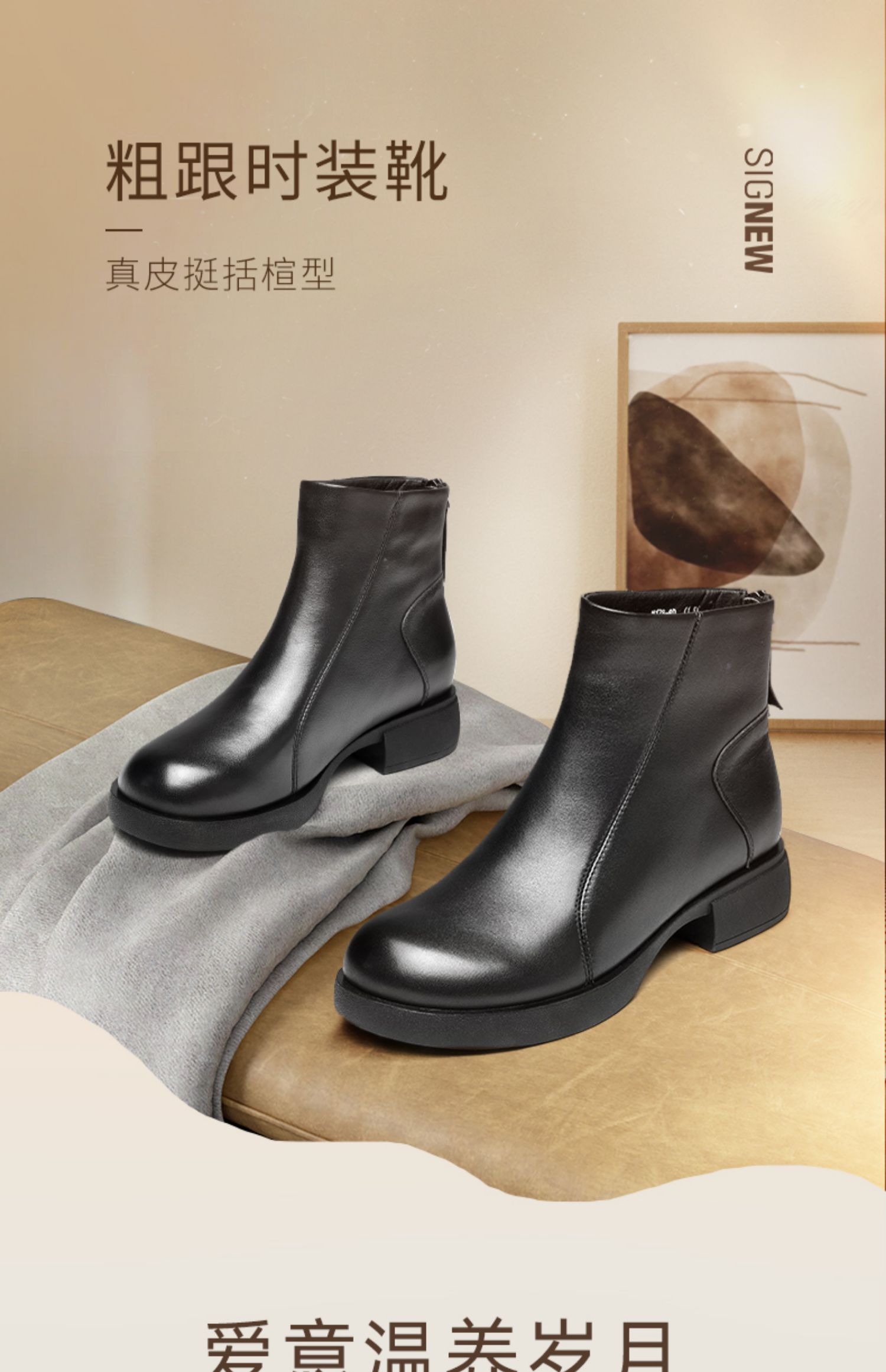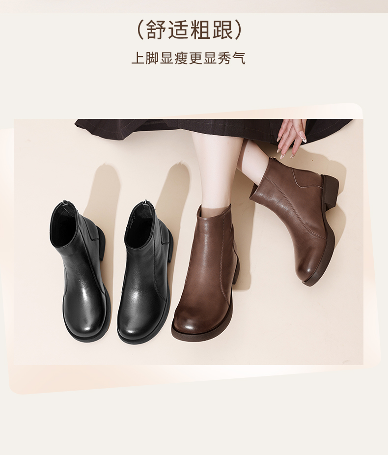 信诺真皮厚底英伦单靴切尔西弹力靴女鞋子复古短靴子2024秋冬新款M178-8C
