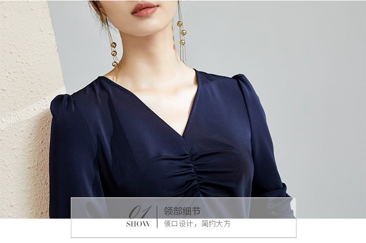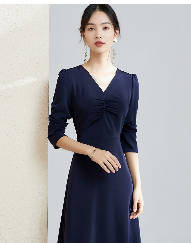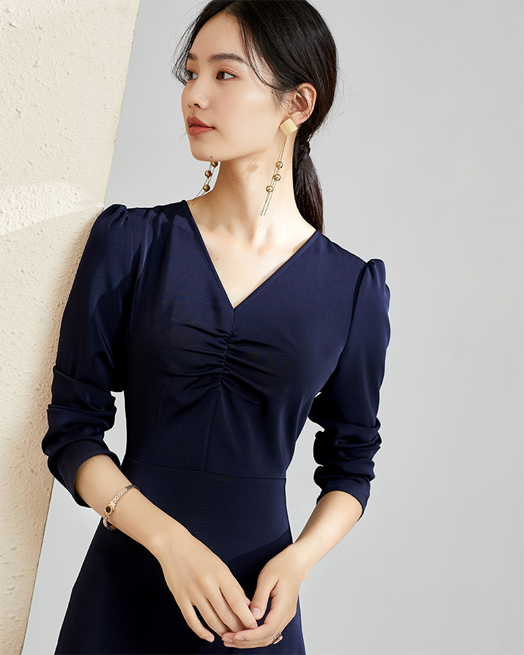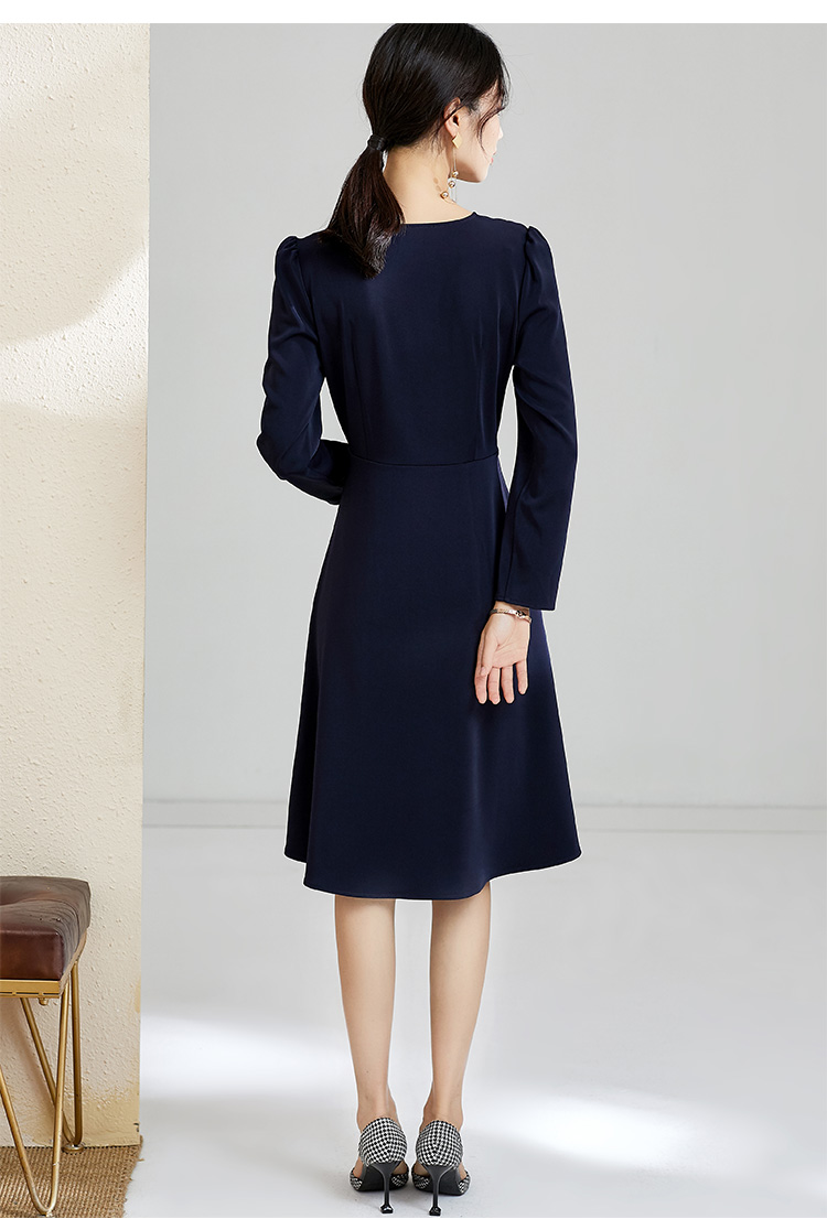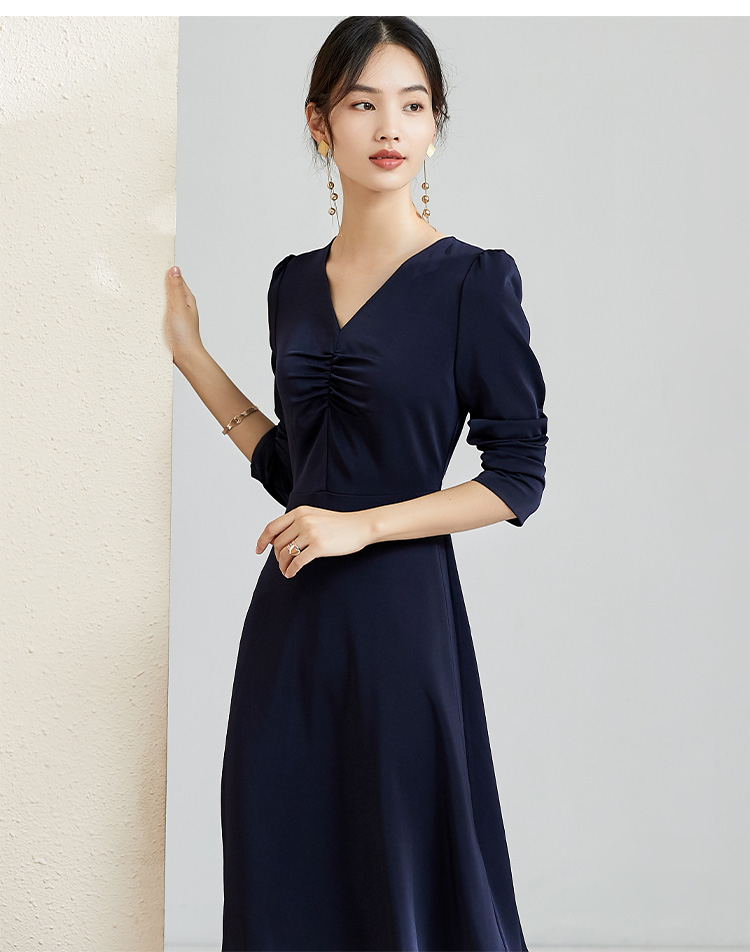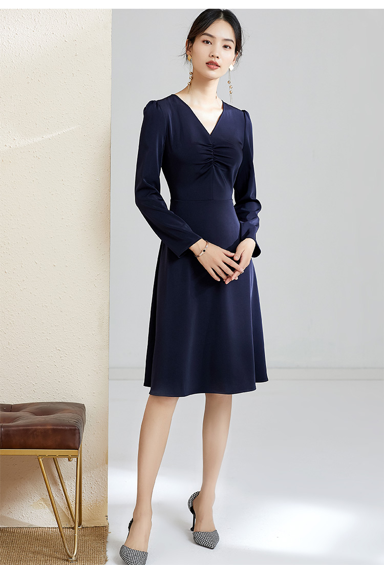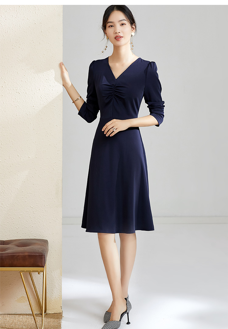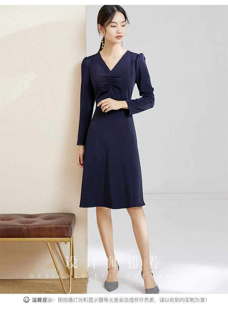 剩S 芳外秋季气质收腰显瘦中长裙子打底裙V领优雅长袖连衣裙女