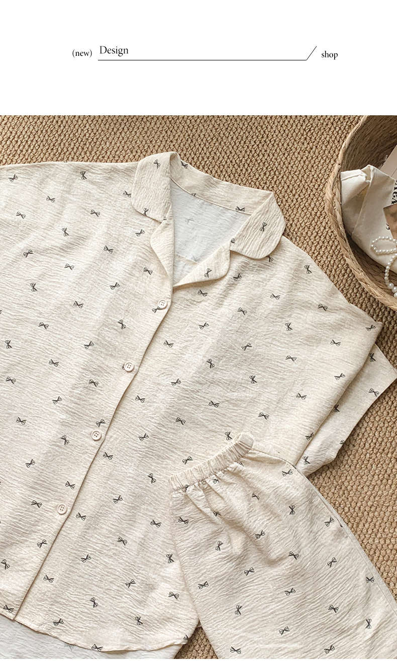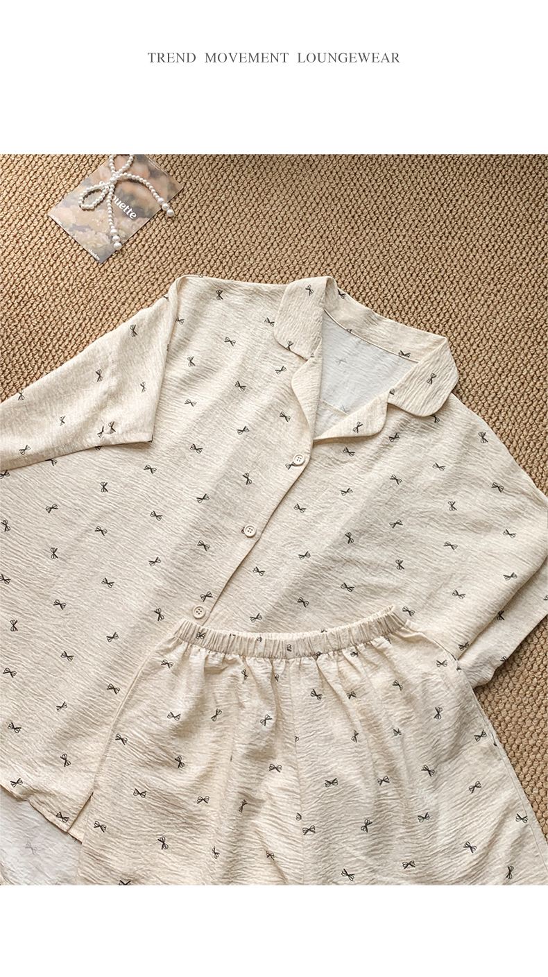 可人儿小众设计师新款奥力绵女士睡衣春夏短袖可外出家居服套装