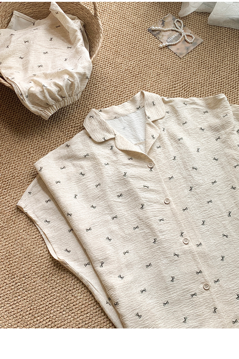 可人儿小众设计师新款泡泡绵女士睡衣夏季短袖可外出家居服三件套