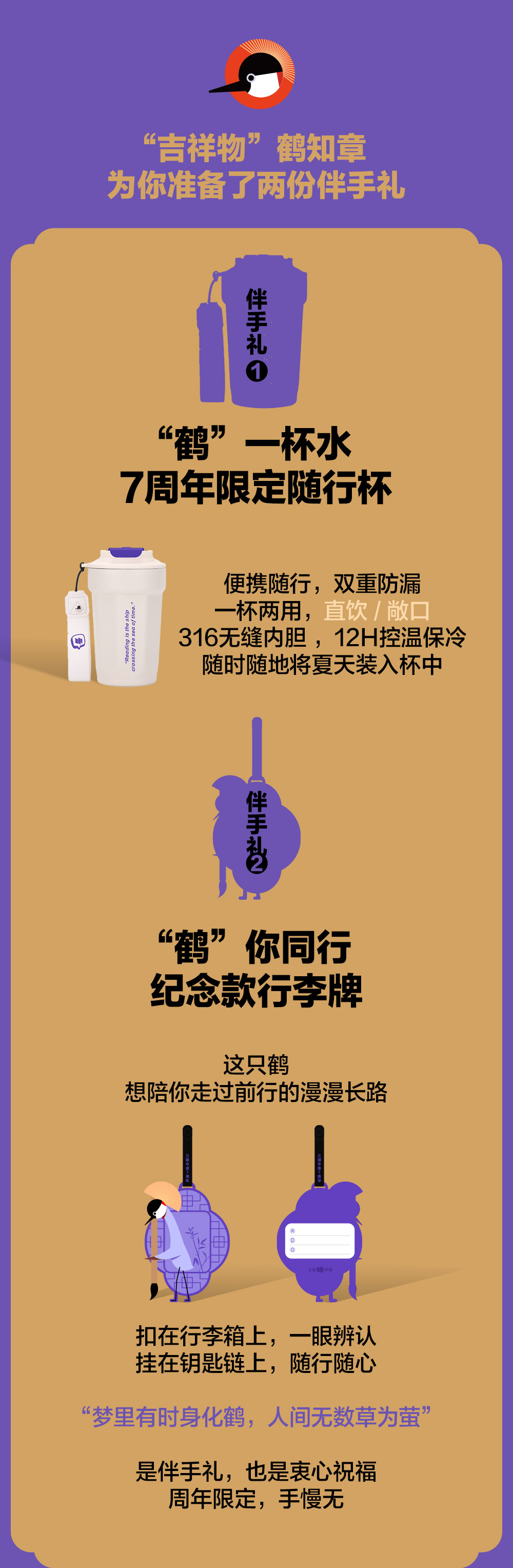 “鹤”一杯水·随行杯 +“鹤”你同行·纪念款行李牌将于购买后30个工作日内于北京发出。如有需要请您及时与中读客服取得联系。