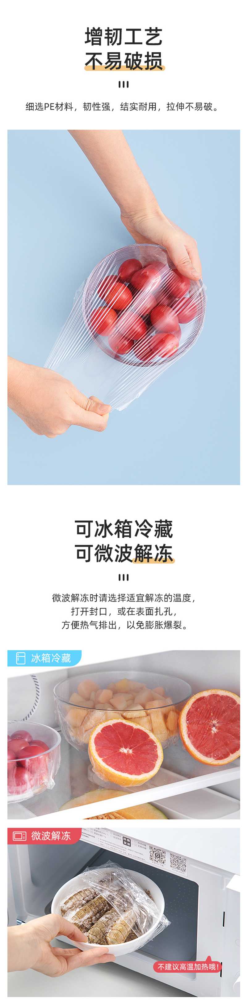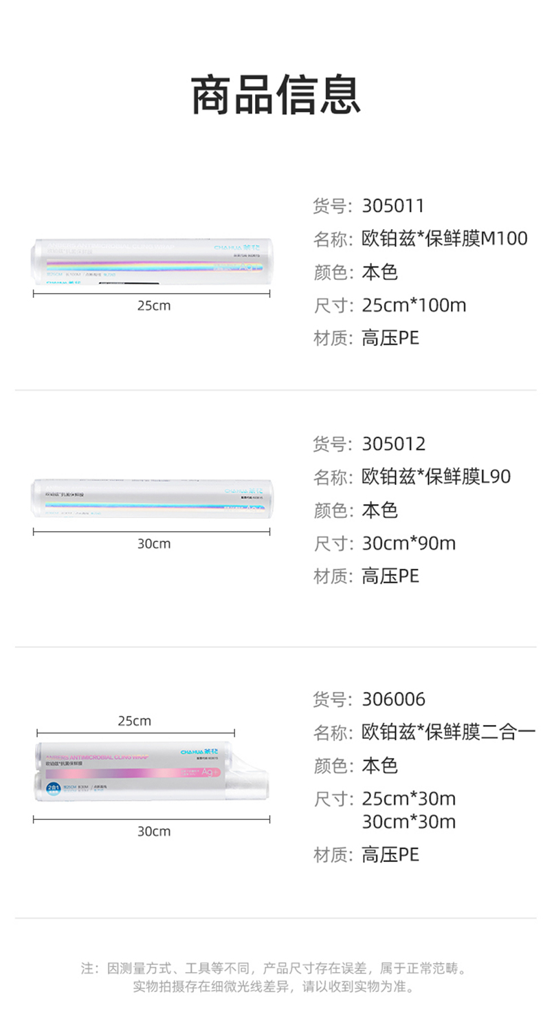 茶花 保鲜膜一次性厨房家用水果蔬菜食品保鲜膜断点易撕款30*90cm/100cm