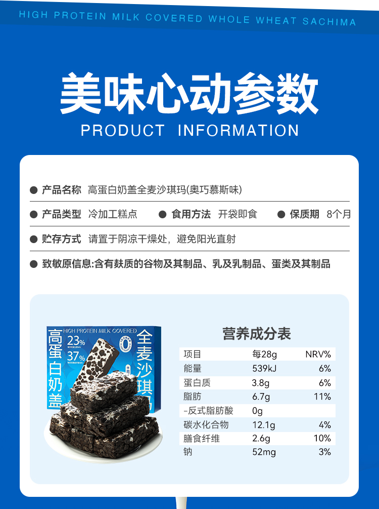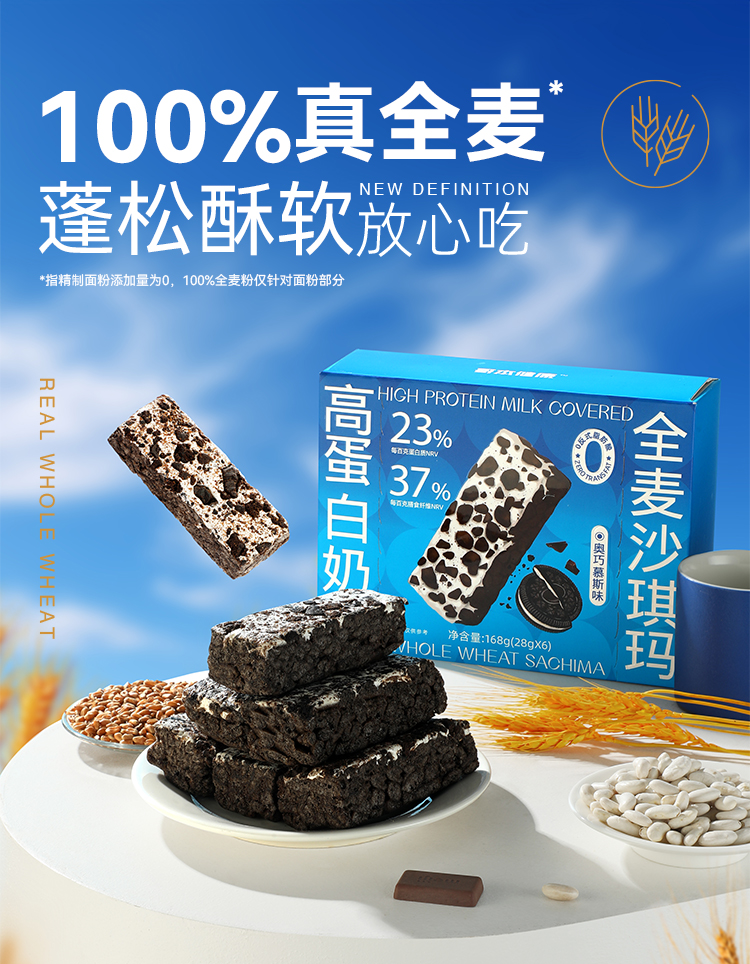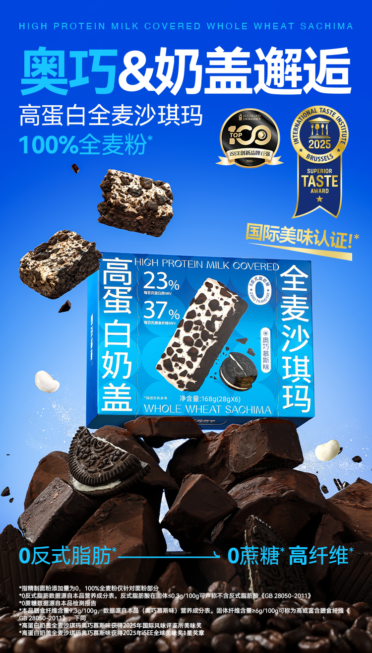 【退酮过渡】【生酮不可】哥本™高蛋白奶盖全麦沙琪玛(奥巧慕斯味)168g(28gx6袋)