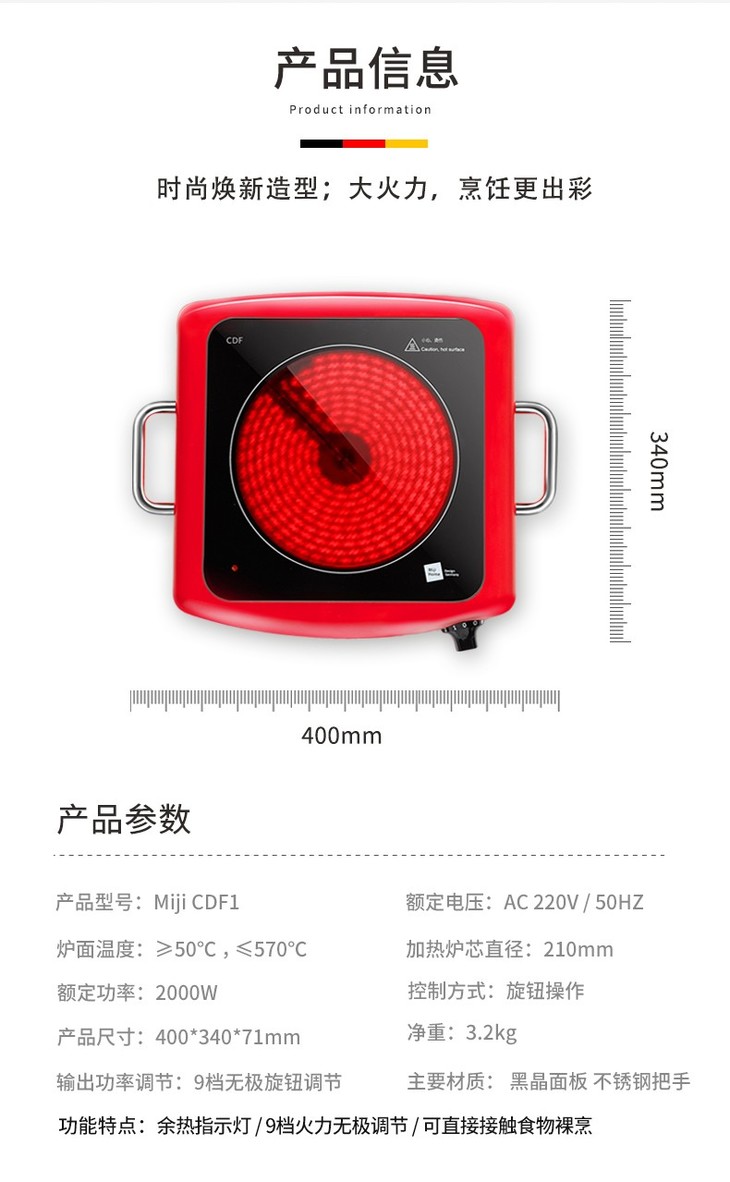 德国米技(MIJI)家用电陶炉CDF1 红色