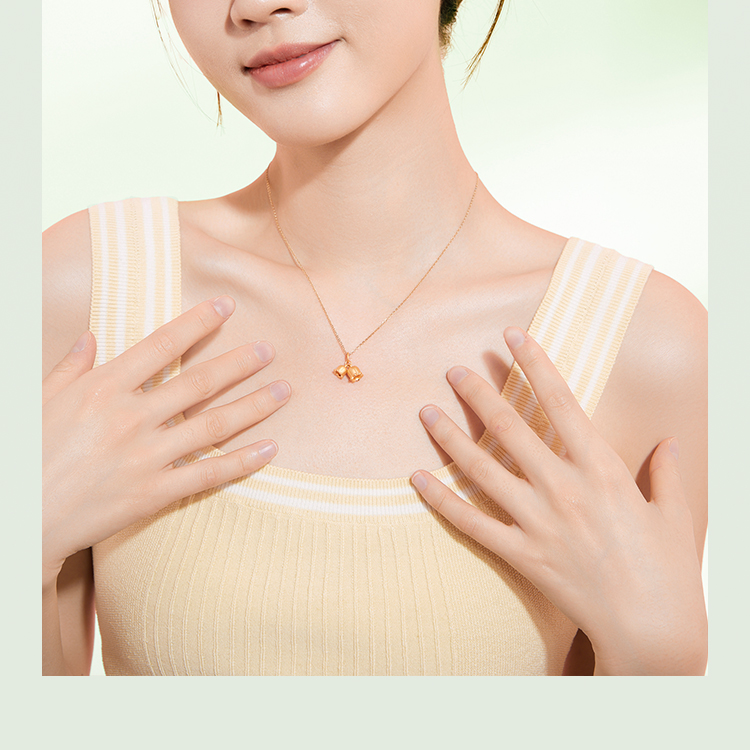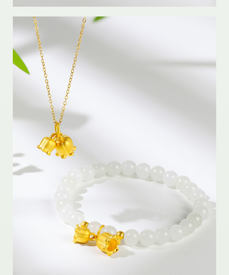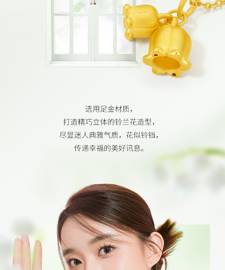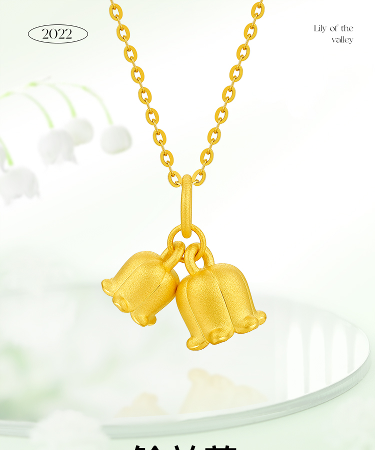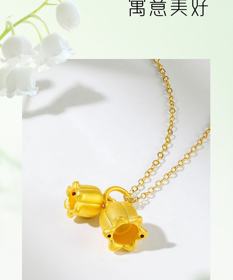 周六福珠宝黄金吊坠女定价铃兰花足金挂坠坠子锁骨链送女友礼物