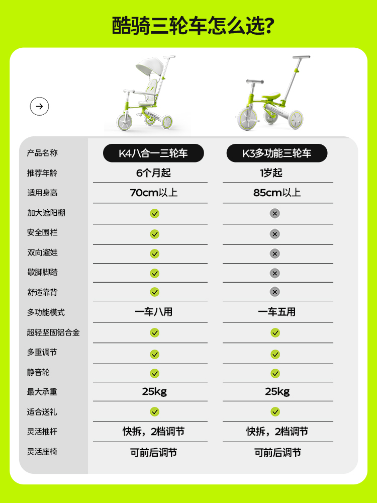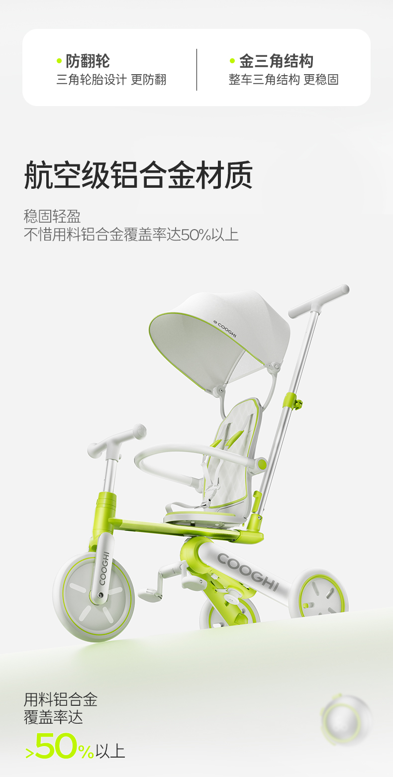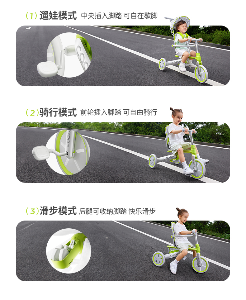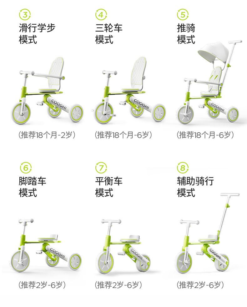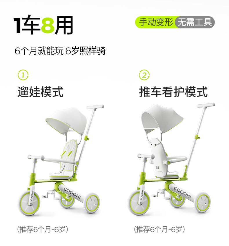 【酷骑官方授权】COOGHI酷骑八合一遛娃三轮车K4南瓜车