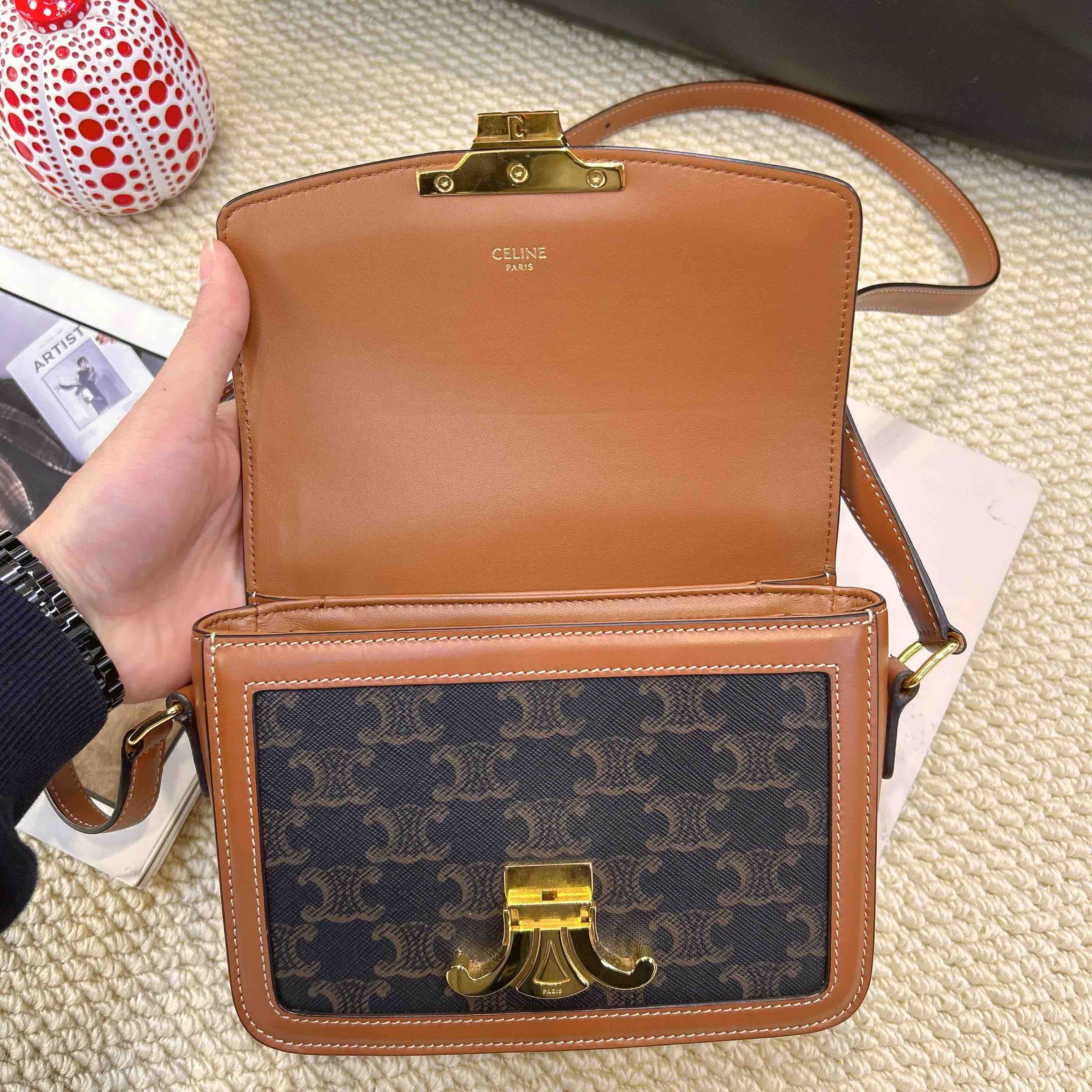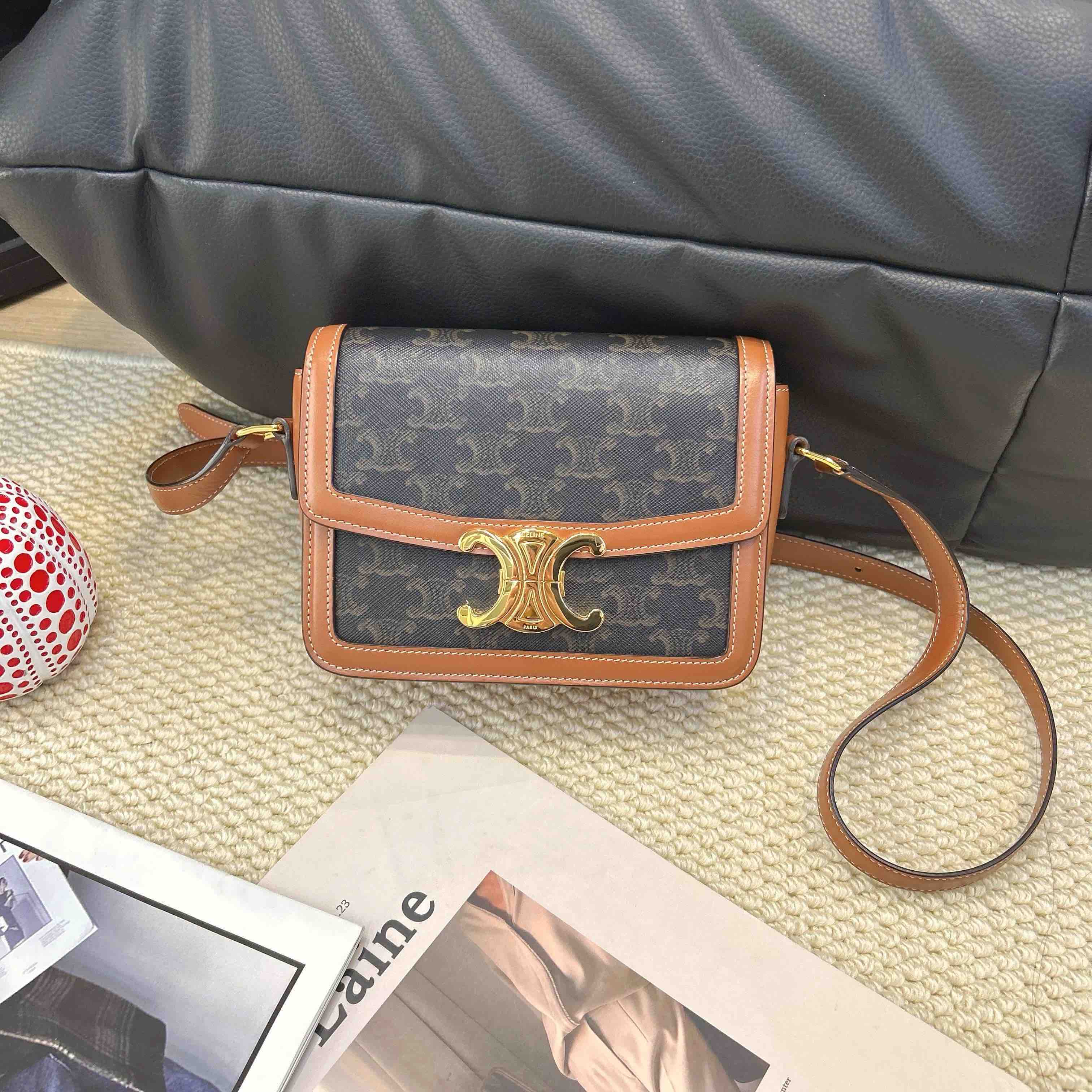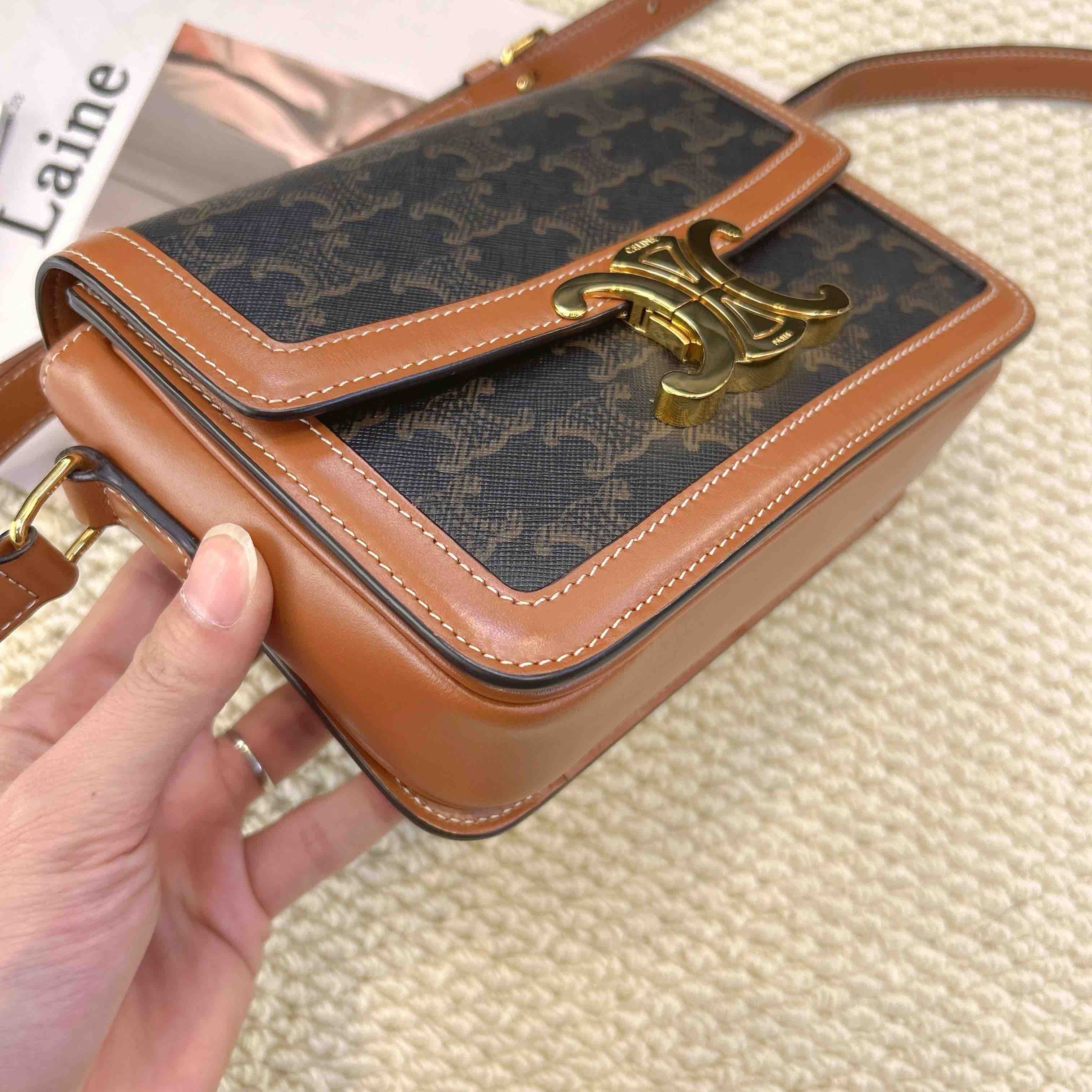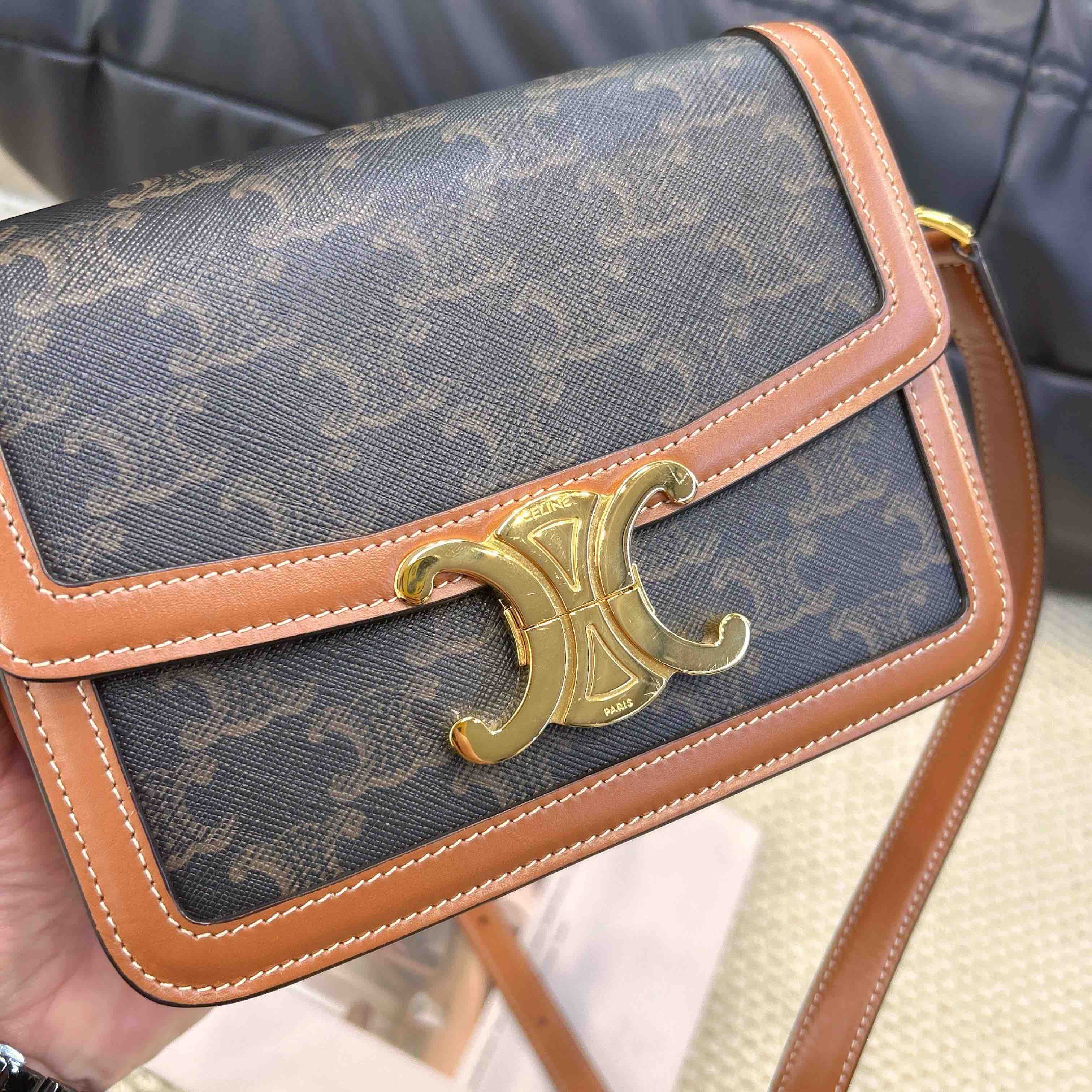 Celine 金扣 棕老花 凯旋门 teen 斜挎包
