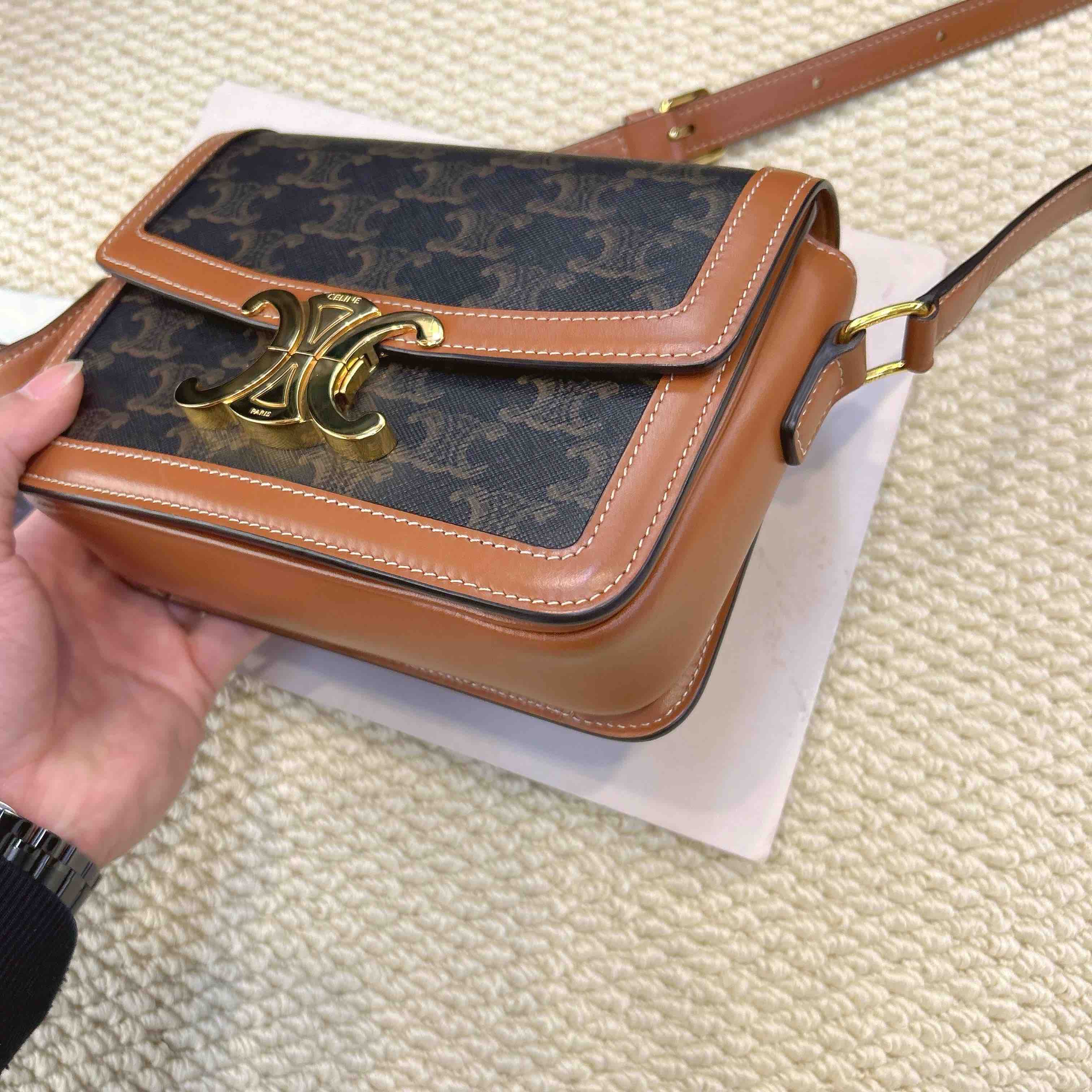 【商品详情】正品二手 Celine 金扣 棕老花 凯旋门 teen 斜挎包⛏️98新 19x14 金属扣微微使用感 金典大爆款