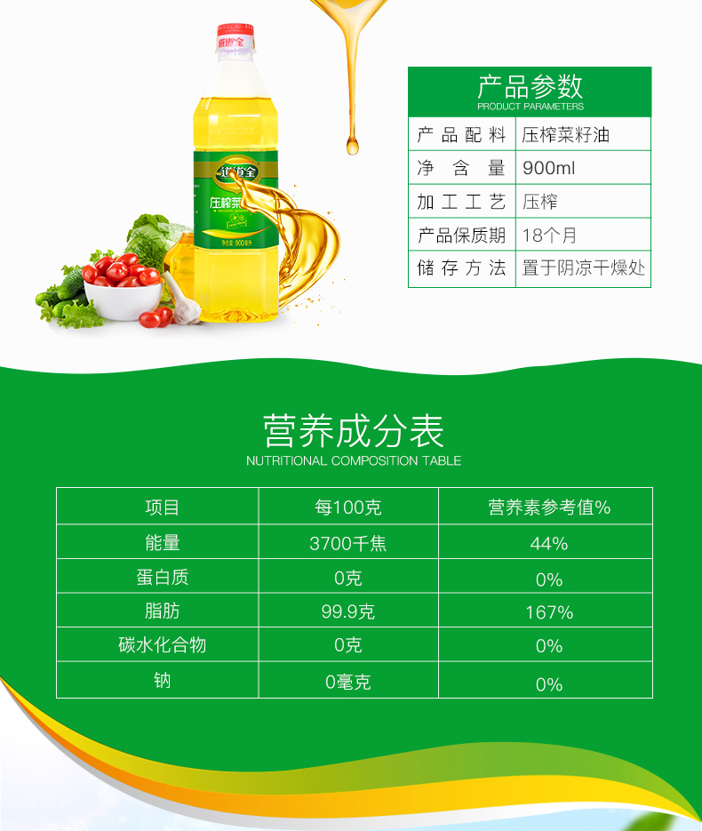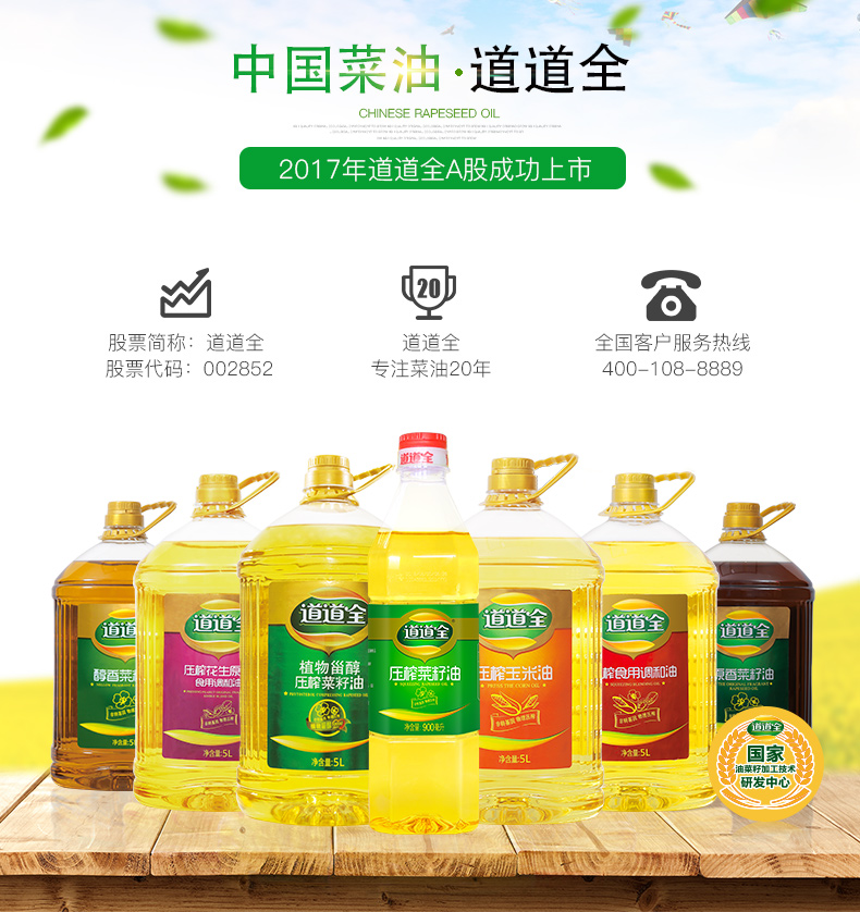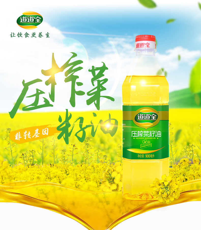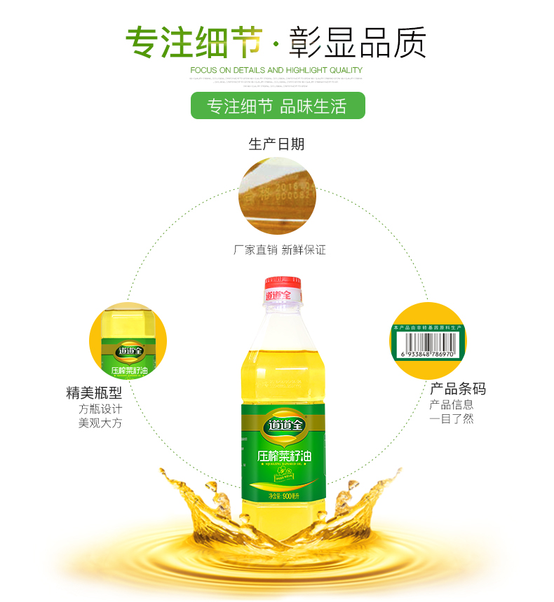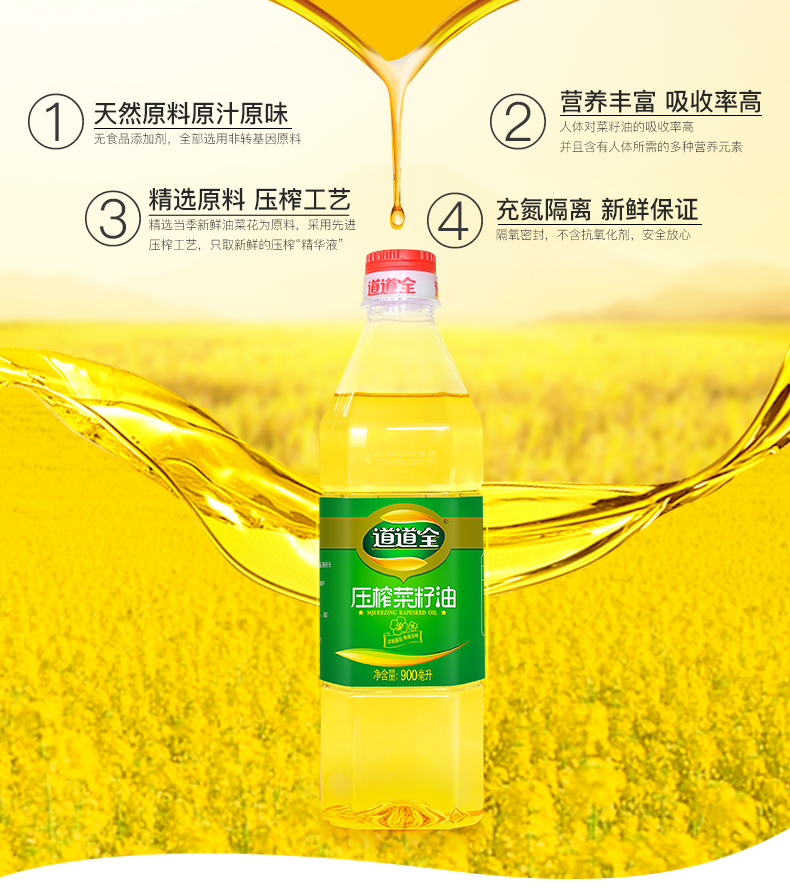 道道全压榨菜籽油 非转基因一级压榨 自然清香(体验装) 900ml