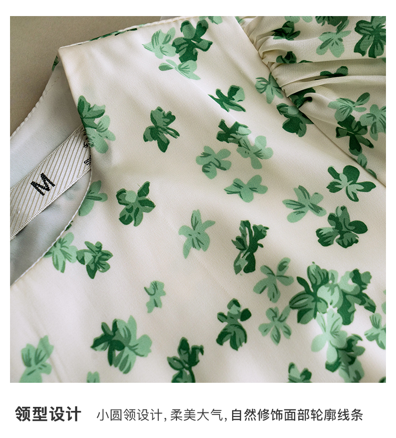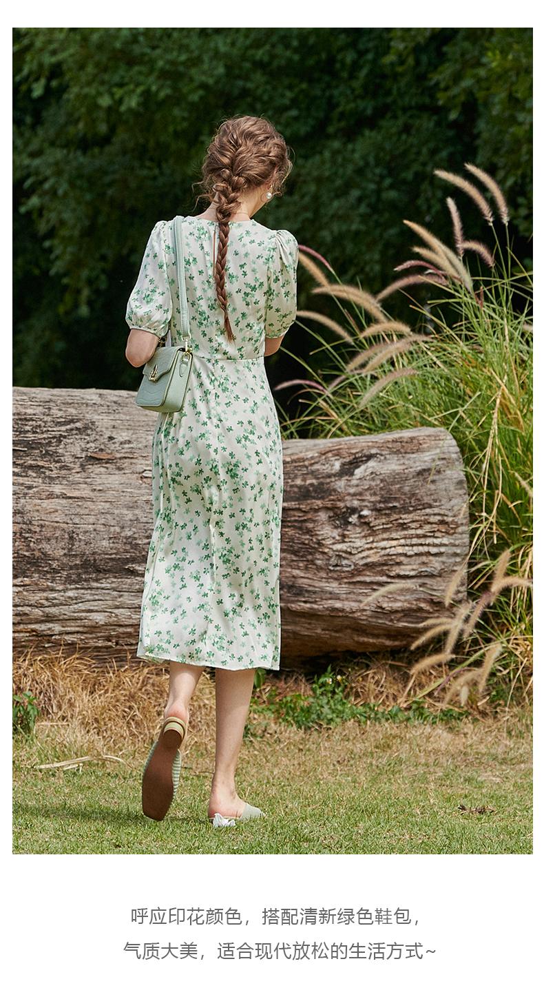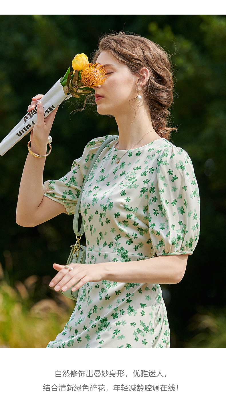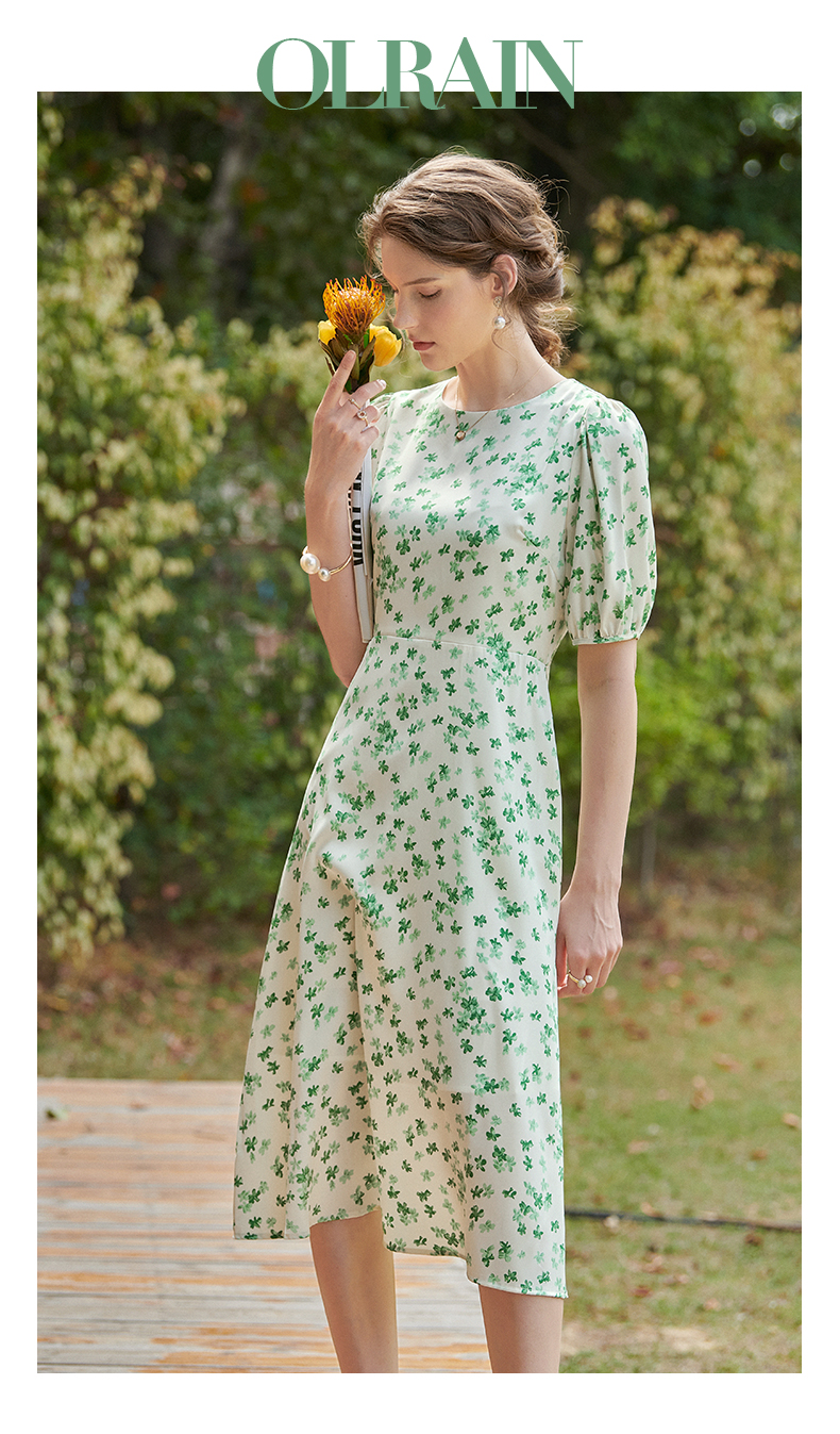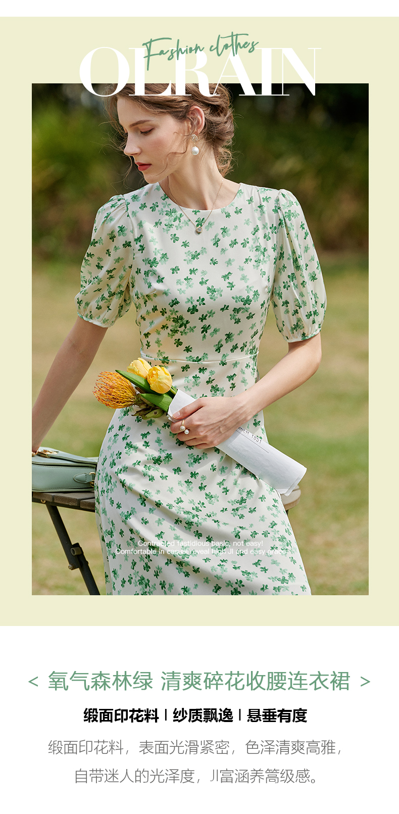 欧芮儿碎花连衣裙女新款2021收腰显瘦气质小清新减龄绿色裙子