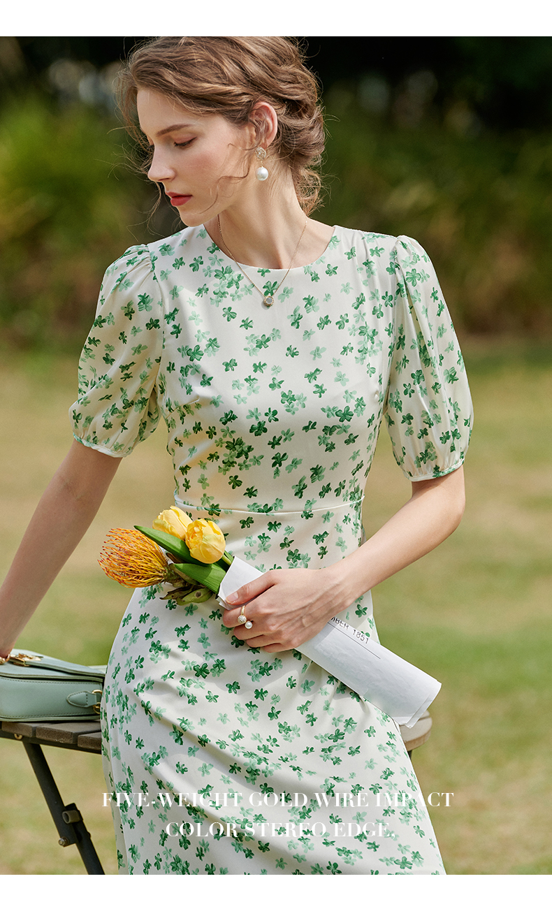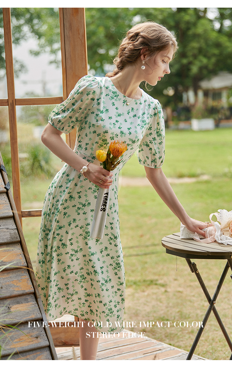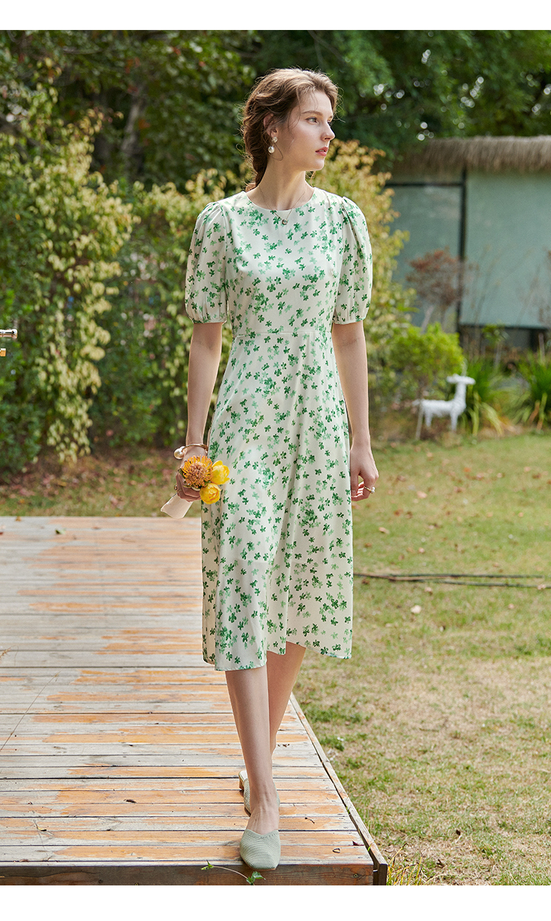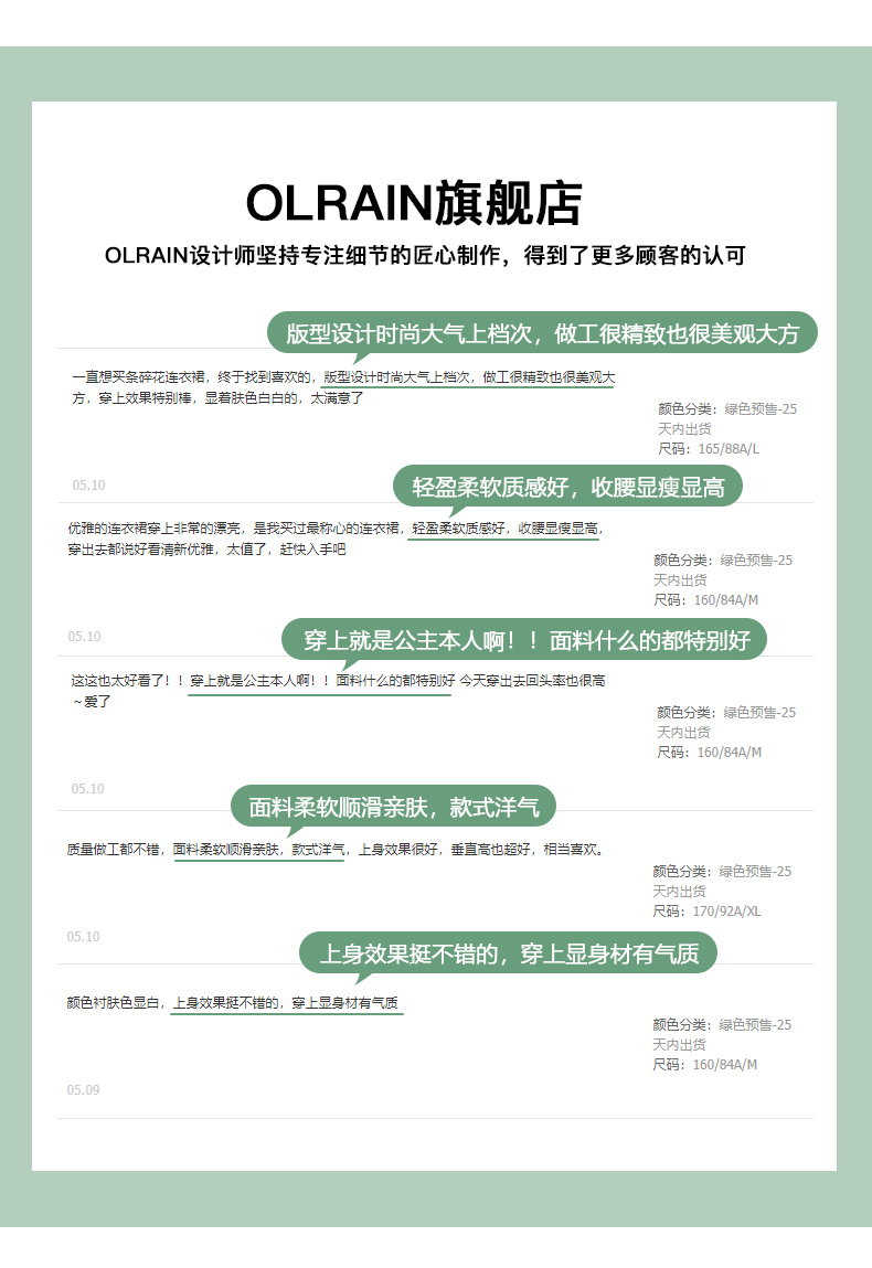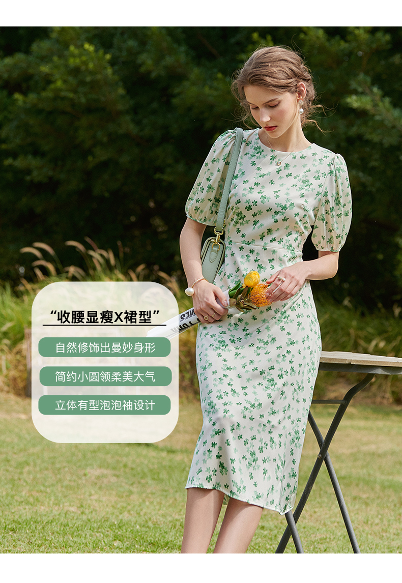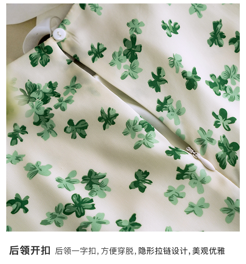 欧芮儿碎花连衣裙女新款2021收腰显瘦气质小清新减龄绿色裙子
