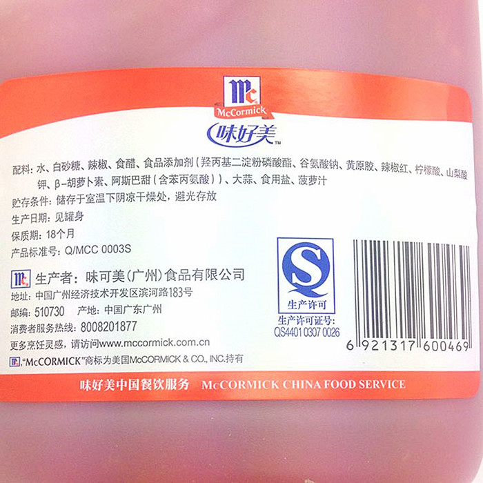 2kg/桶装 味好美泰式甜辣酱 鸡肉卷酱料 汉堡手抓饼甜辣酱泰国料理
