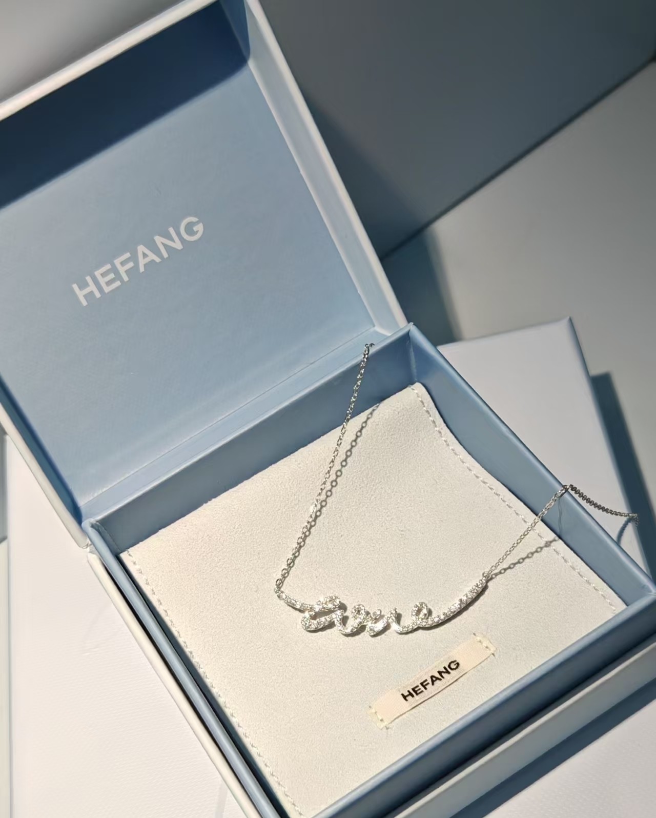 何方用一场精致的光影叙事,定格爱意的永恒模样。棱角分明的“LOVE”字样,以细腻金属线条勾勒告白轮廓,每一笔都藏着未说尽的温柔;精选闪耀锆石密镶其间,在光线下折射出细碎星光!利落的设计适配每一种日常场景,无论是叠戴出个性层次感,还是单条点缀脖颈曲线,都能让优雅不经意间流淌。将“爱”字化作贴身信物,每一次触碰都是温柔的提醒——爱意无需言说,早已被珠宝铭记,成为专属于你的浪漫标识。