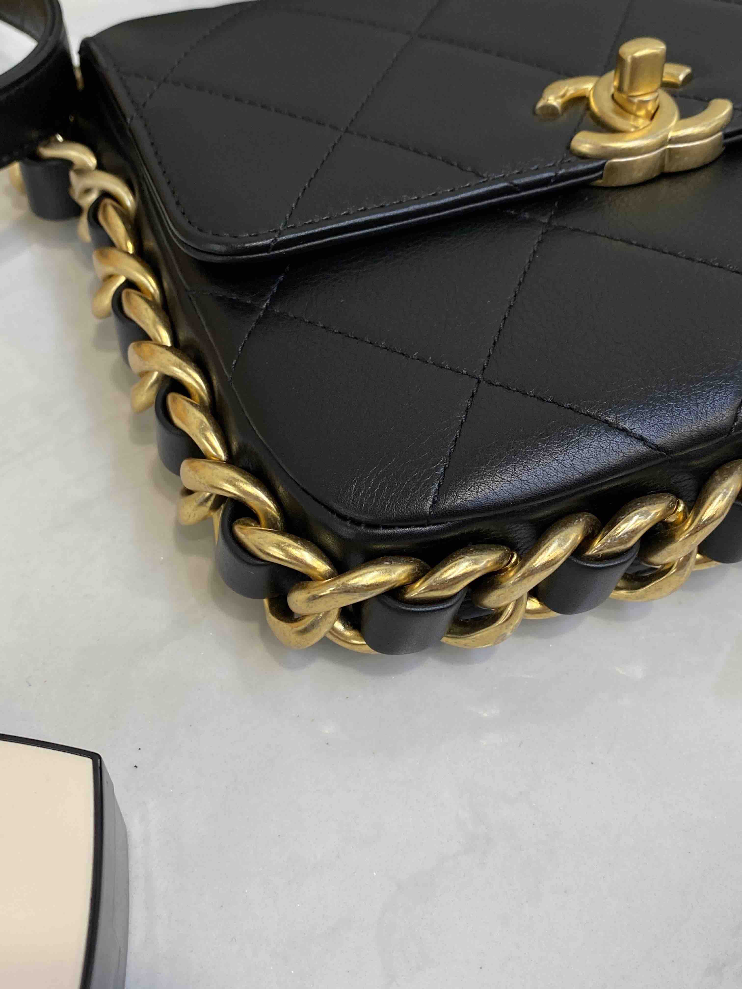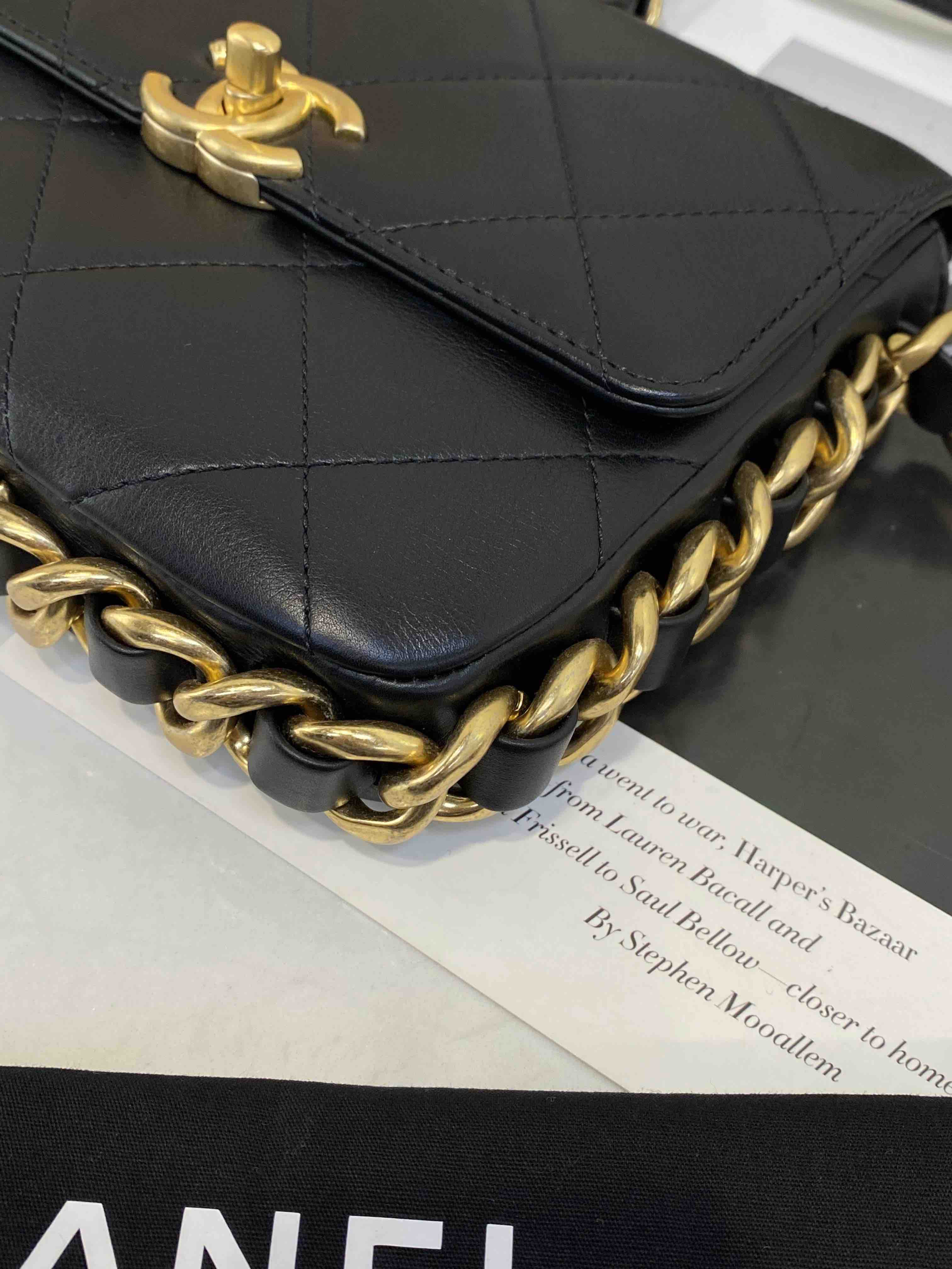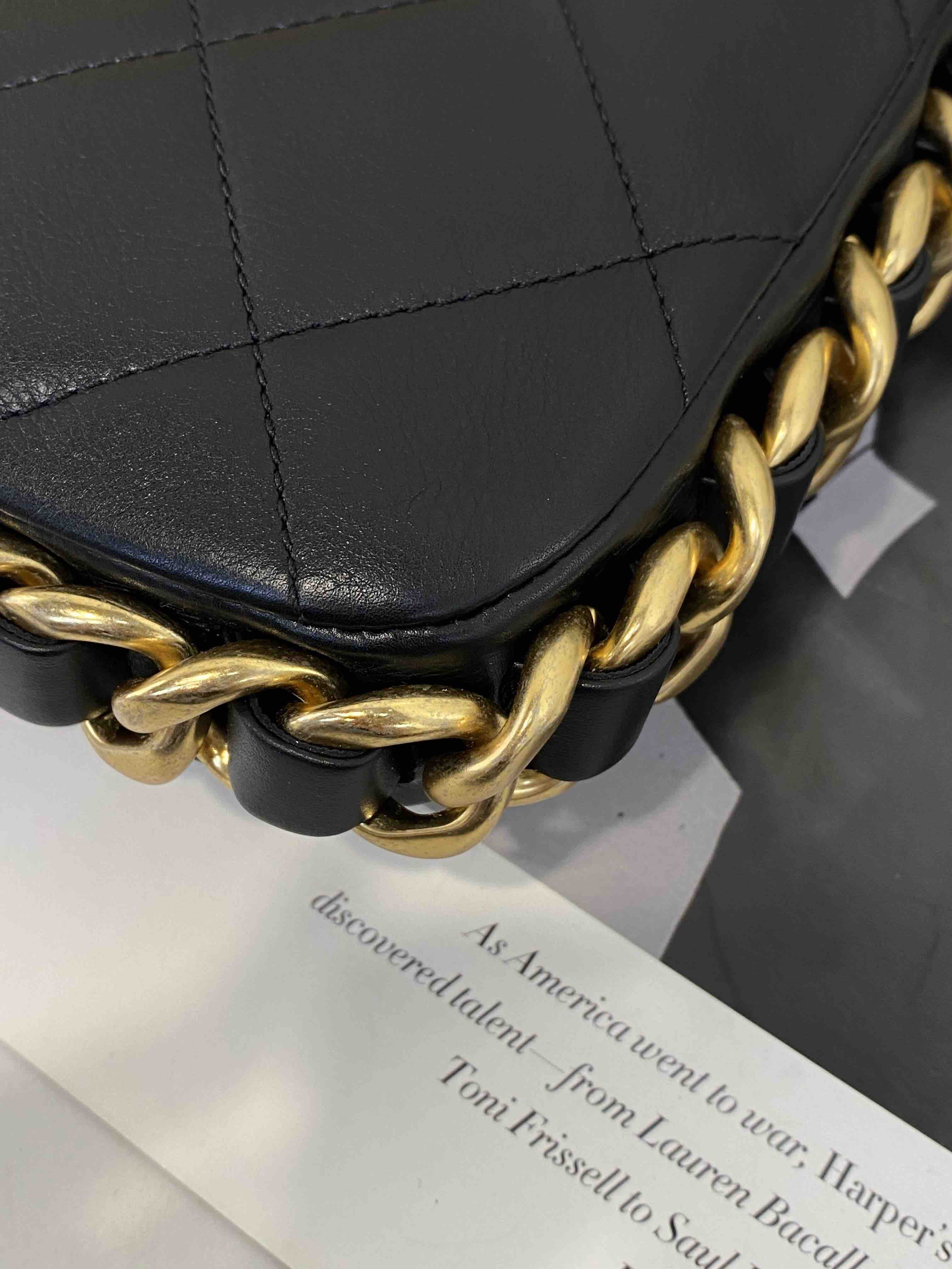 Chanel 21k 秋冬新款 黑色 粗链条 牛皮 方胖子