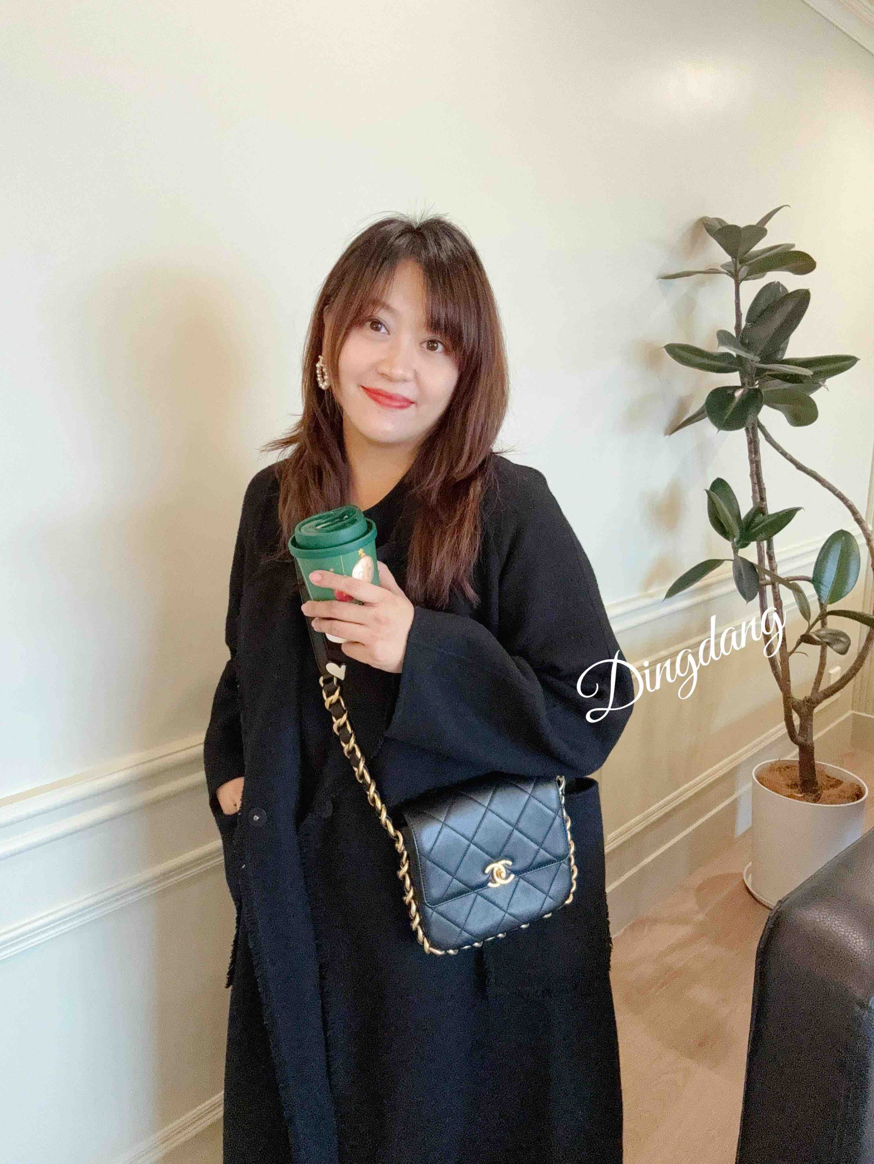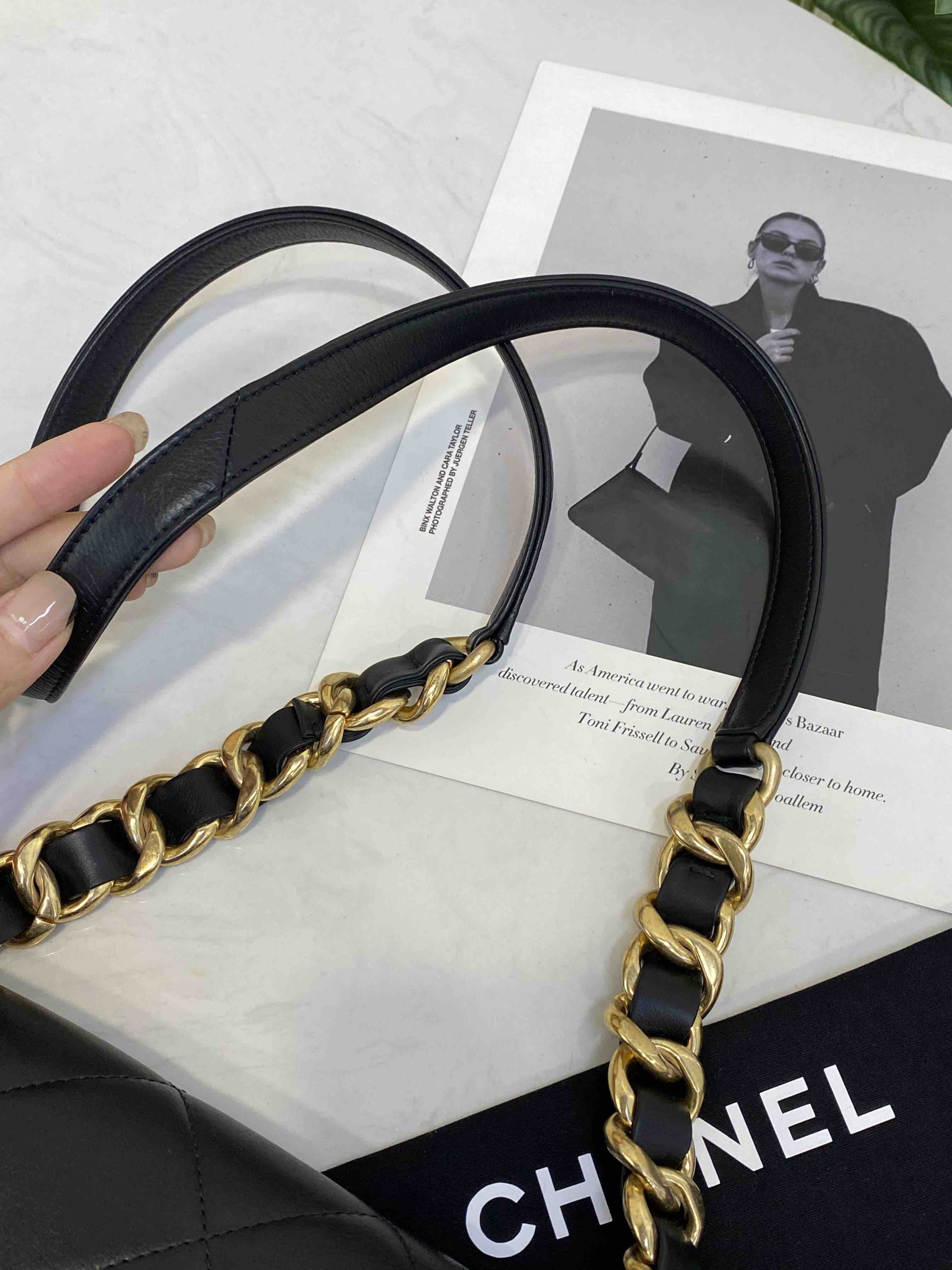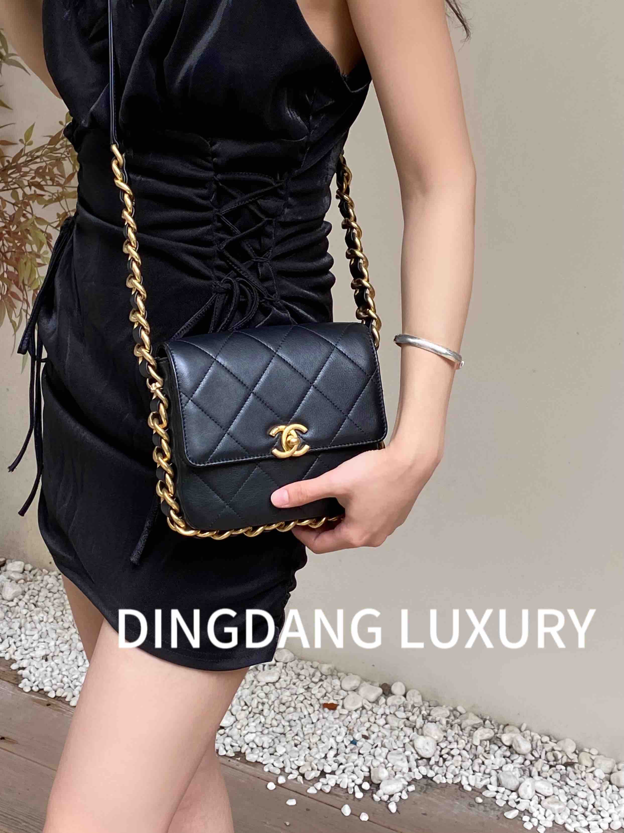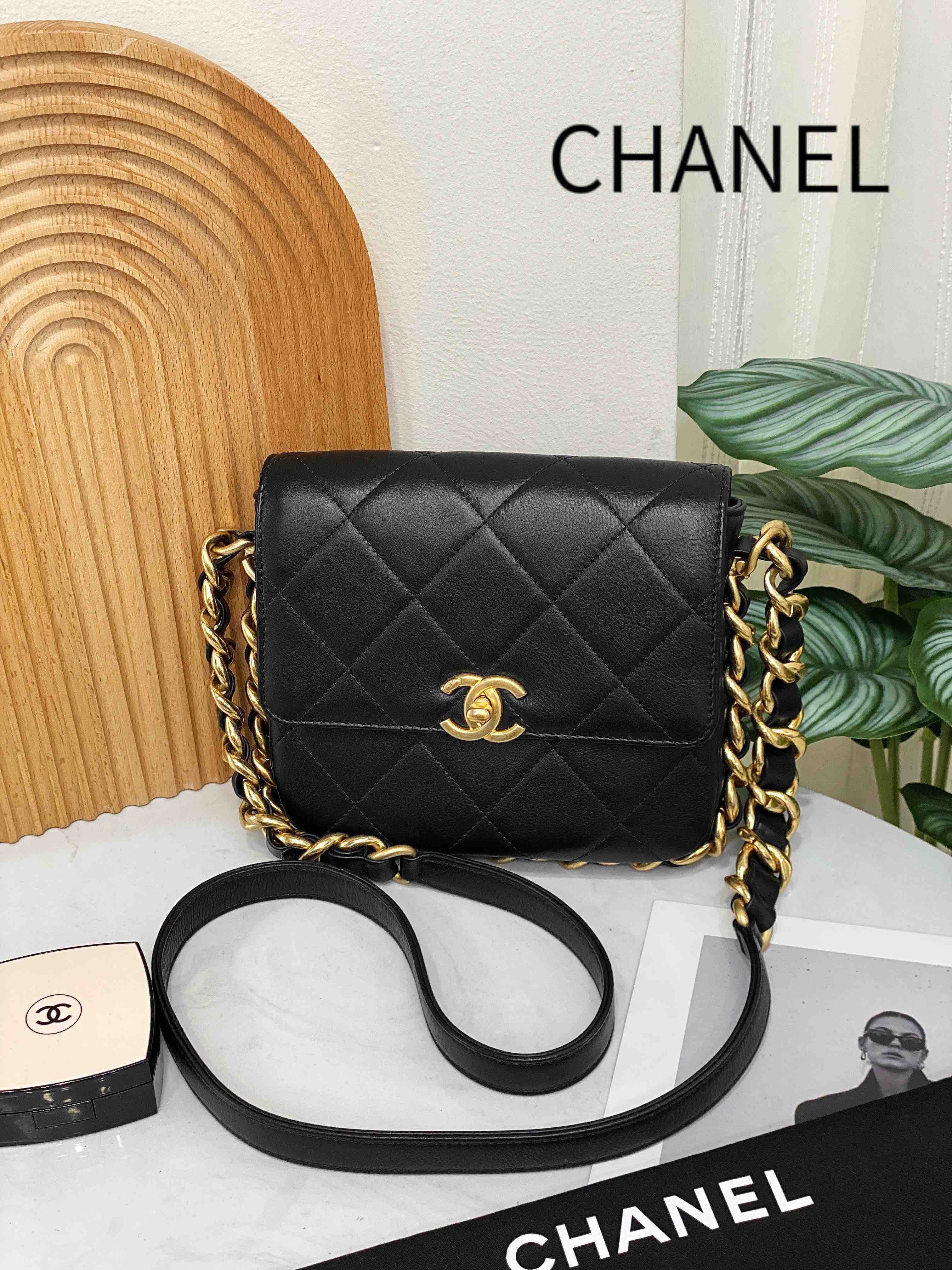 Chanel 21k 秋冬新款 黑色 粗链条 牛皮 方胖子