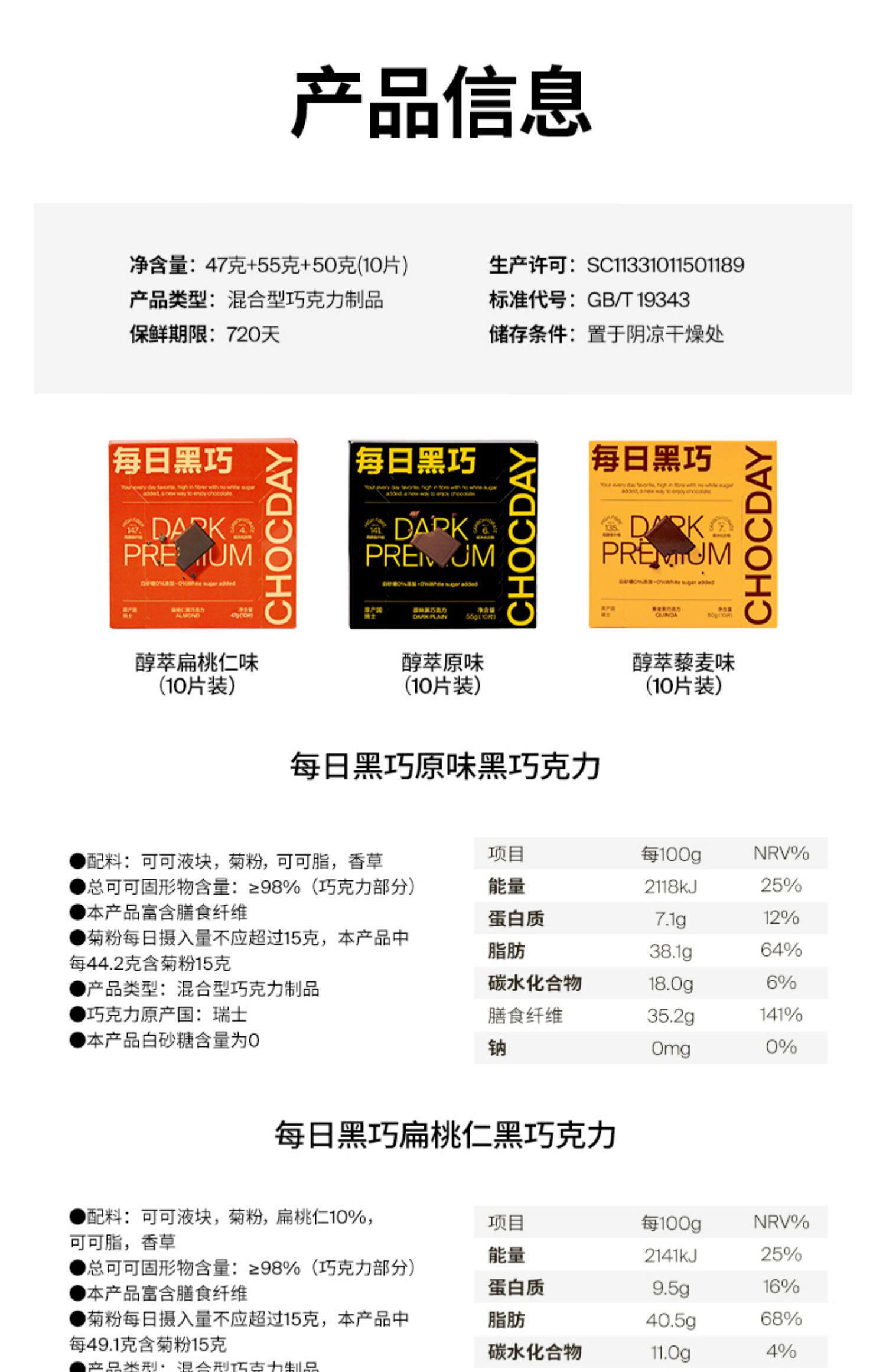 每日黑巧黑巧克力 原味蔬麦扁桃仁系列