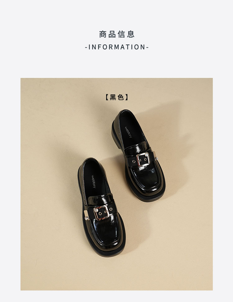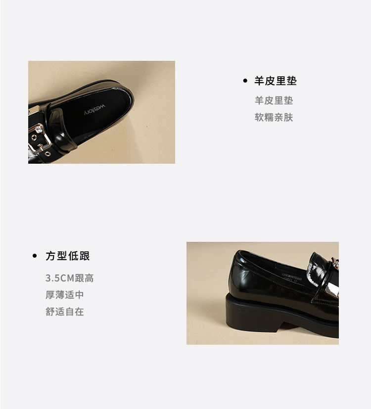 Westory2025年秋季方圆头型乐福鞋开边珠牛皮百搭甜酷深口单鞋S25CM76751