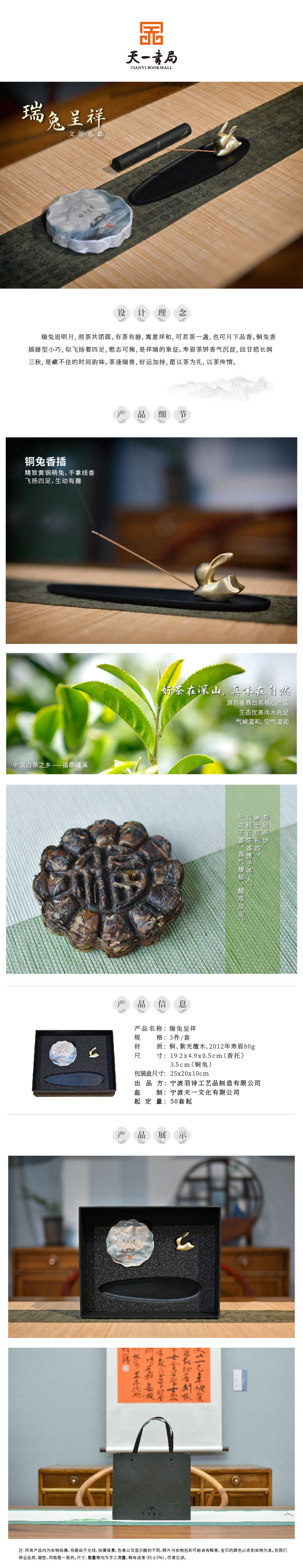 羽诗制造出品 瑞兔呈祥寿眉茶饼铜兔香插礼盒套装
