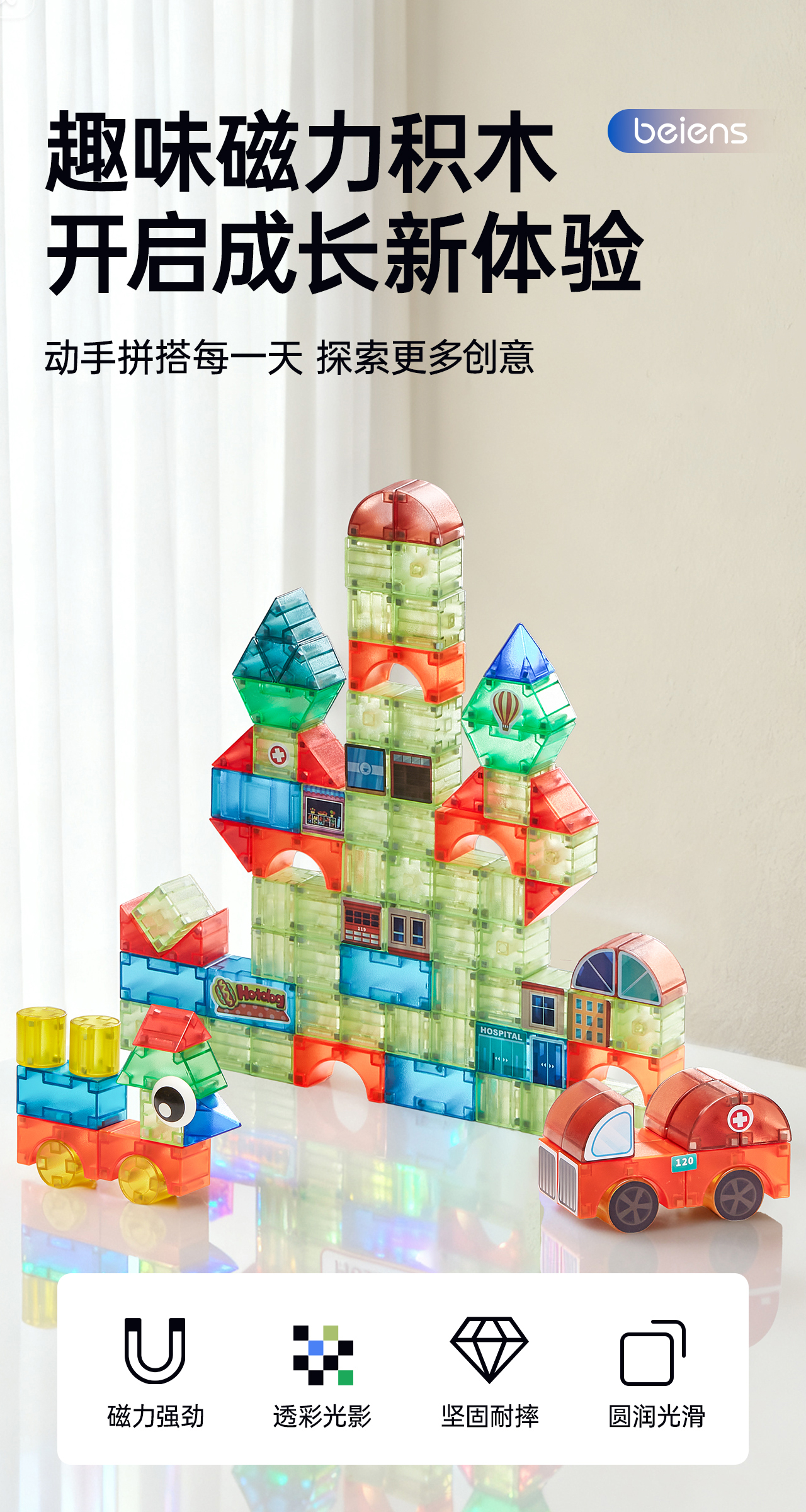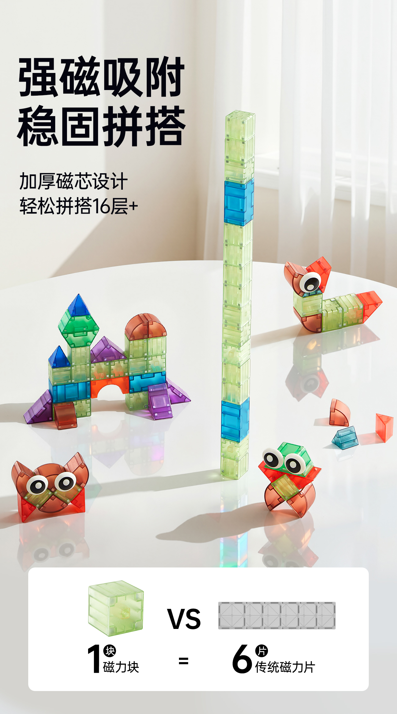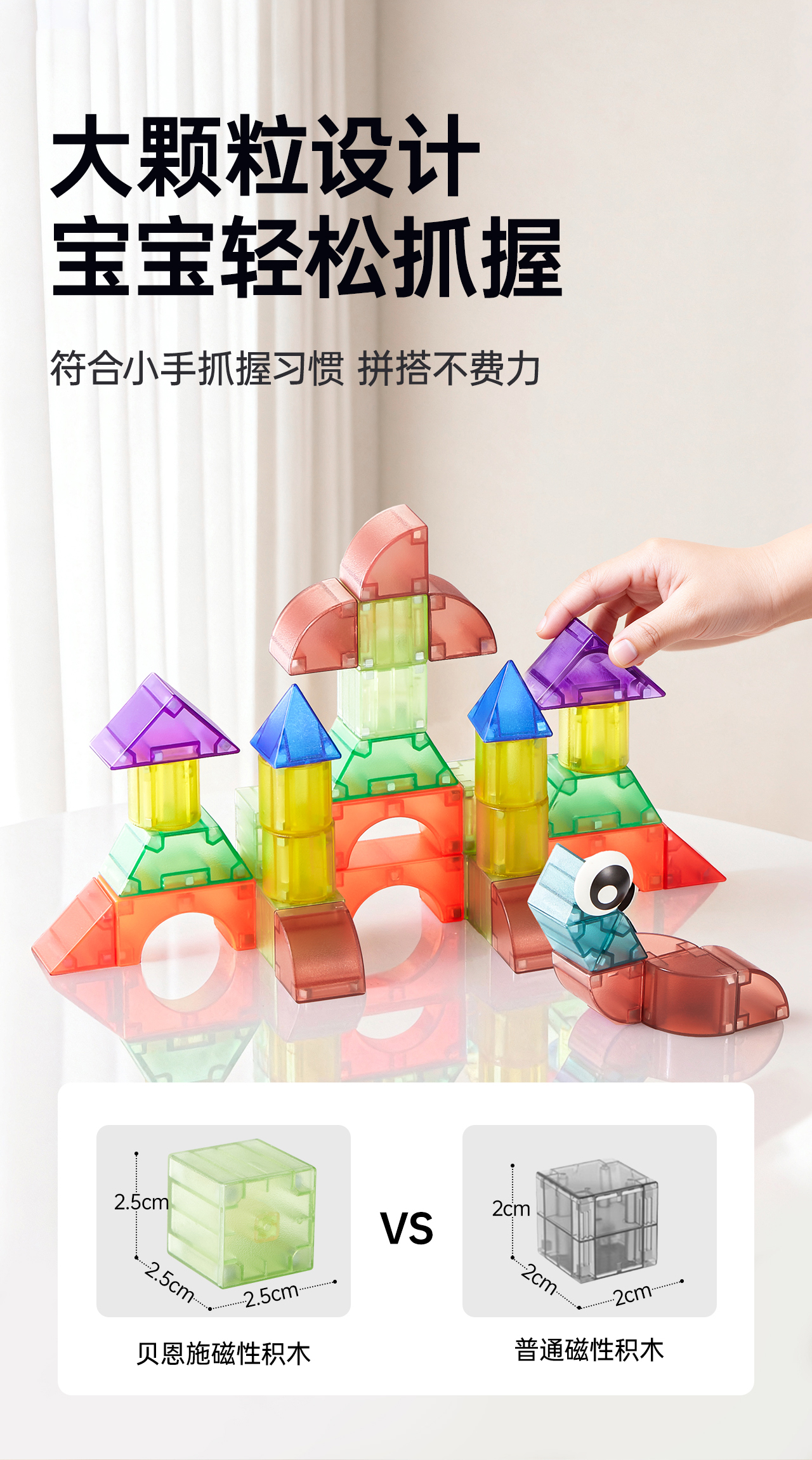 贝恩施儿童磁力方块彩窗磁吸立体方块男女孩拼图益智生日礼物玩具