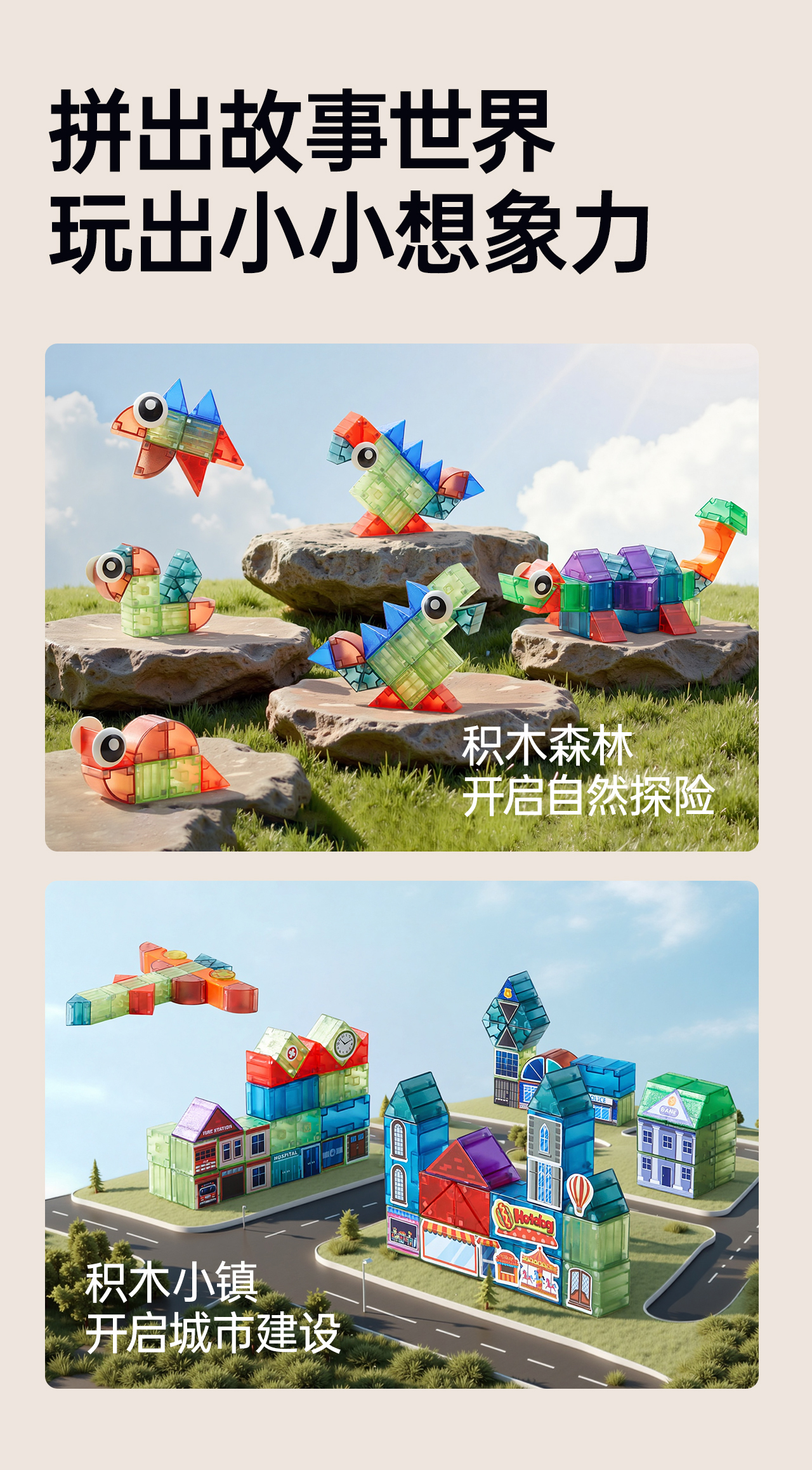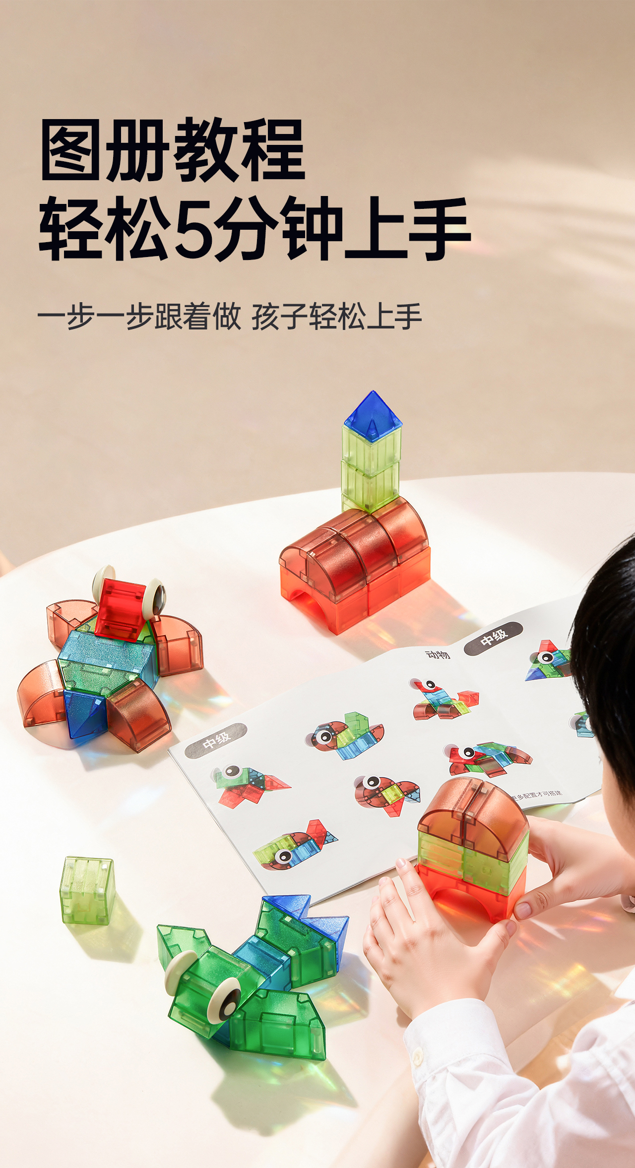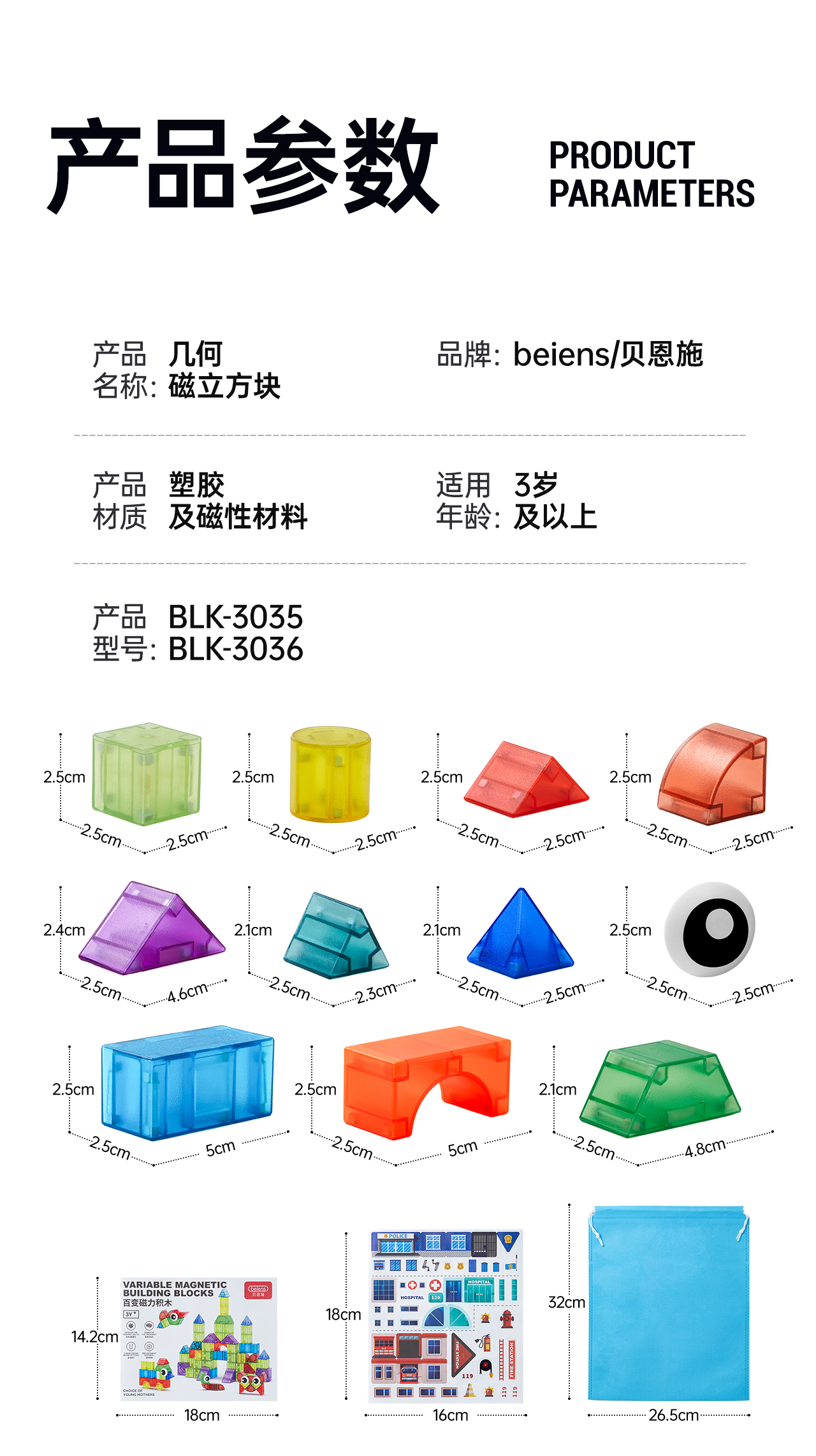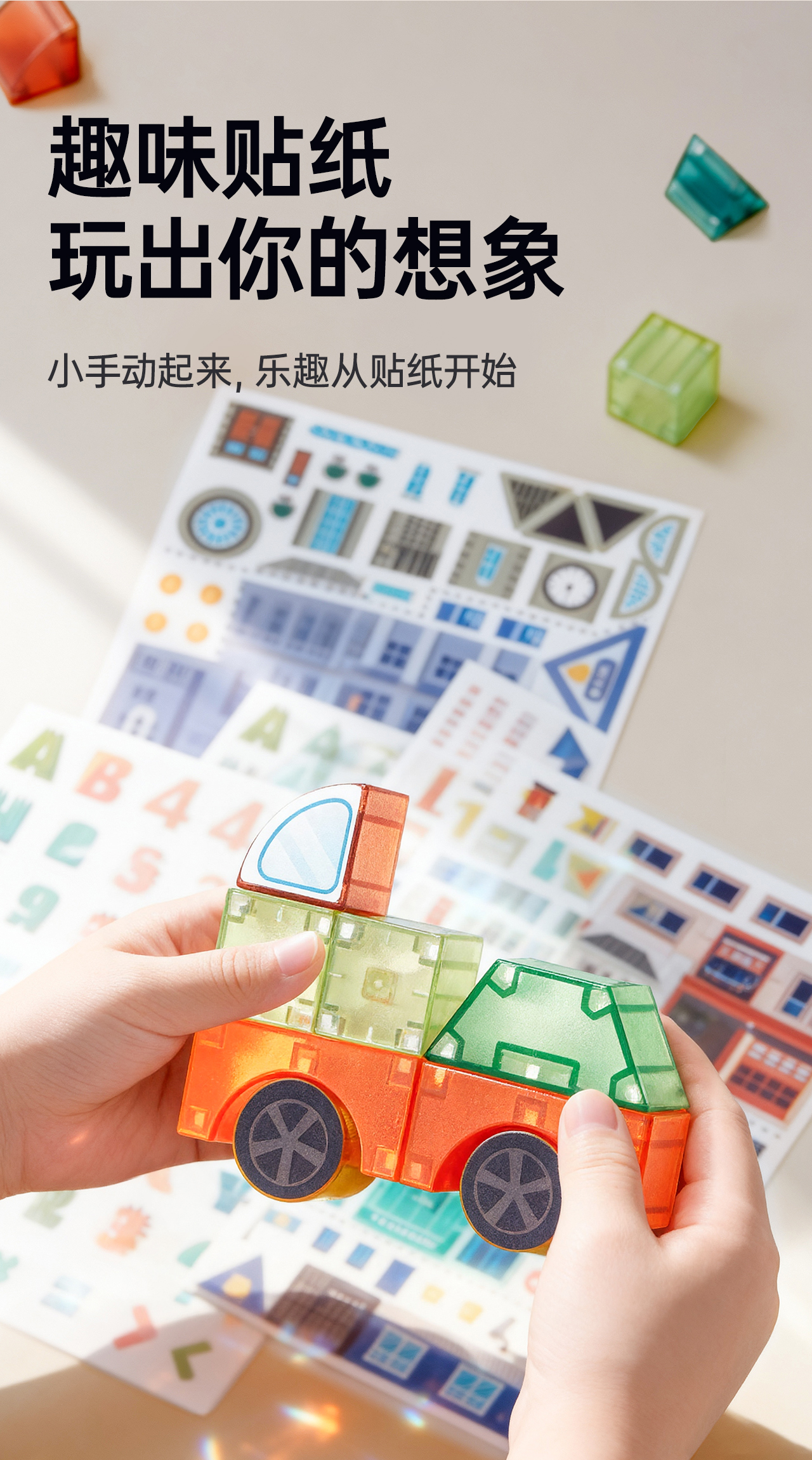 贝恩施儿童磁力方块彩窗磁吸立体方块男女孩拼图益智生日礼物玩具