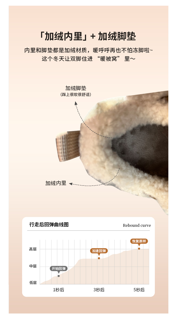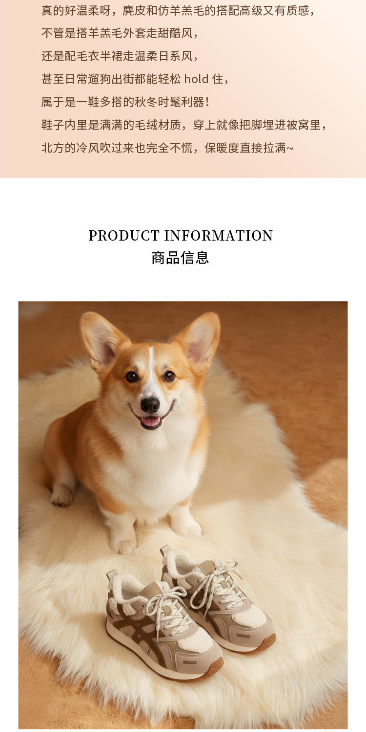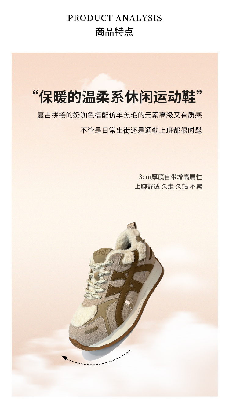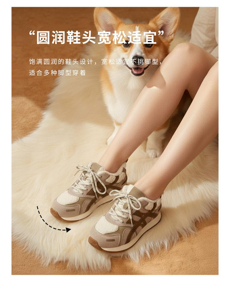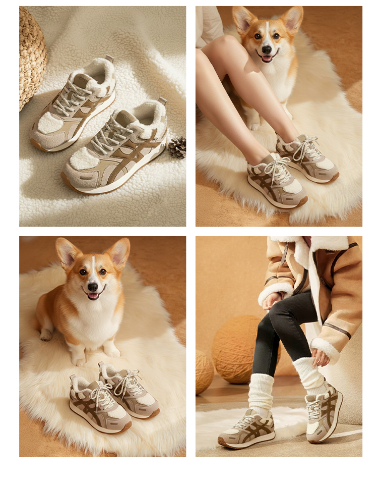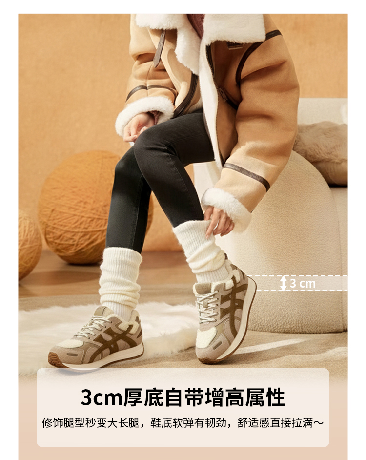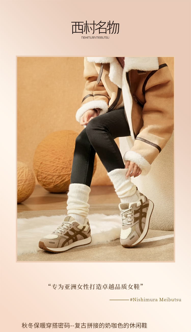 西村名物2025年冬季新款厚底防滑舒适毛绒内里保暖运动鞋德训鞋毛毛鞋T25DM40021