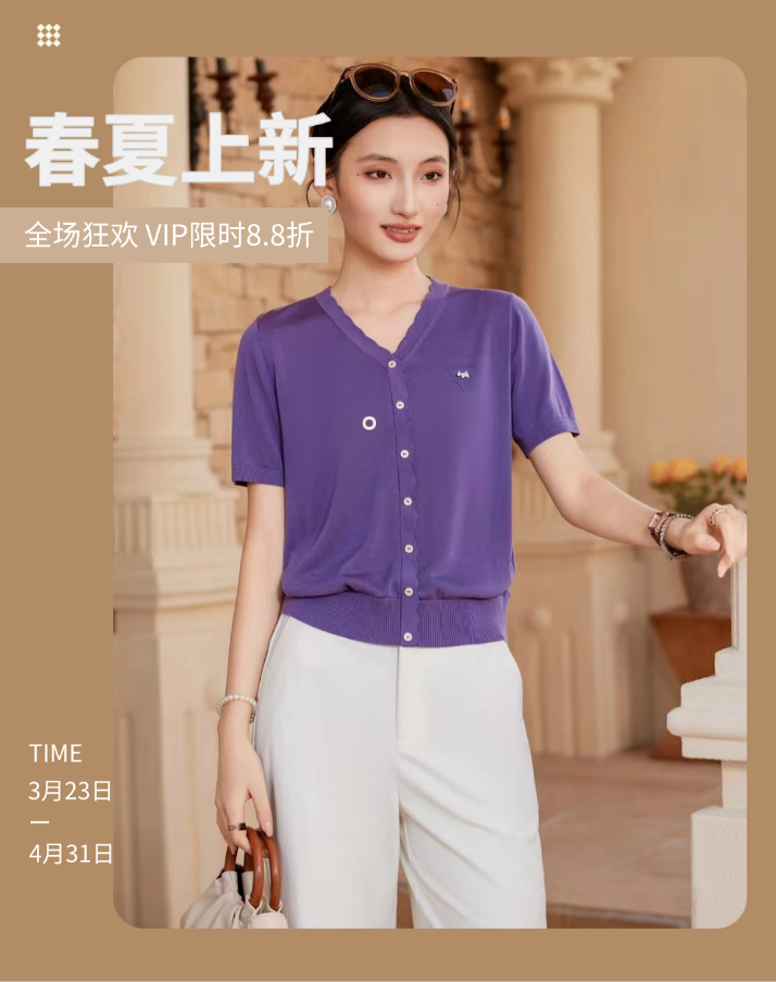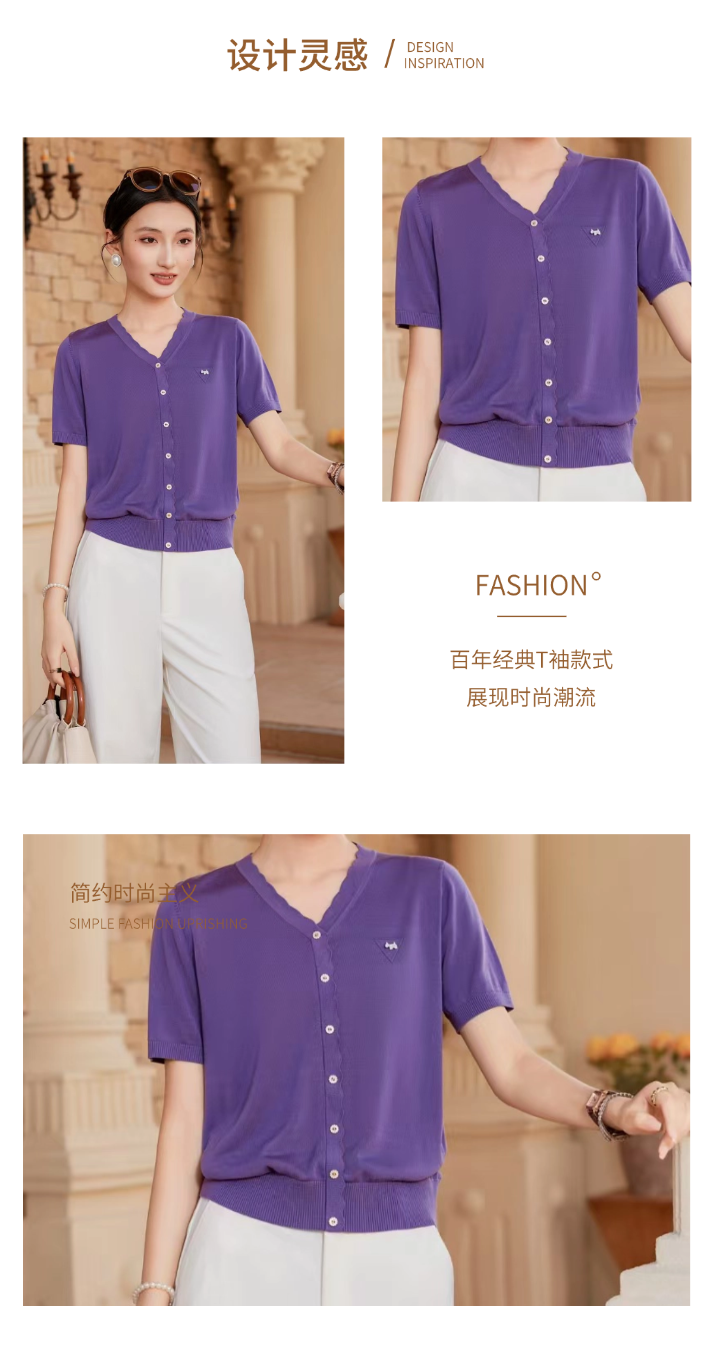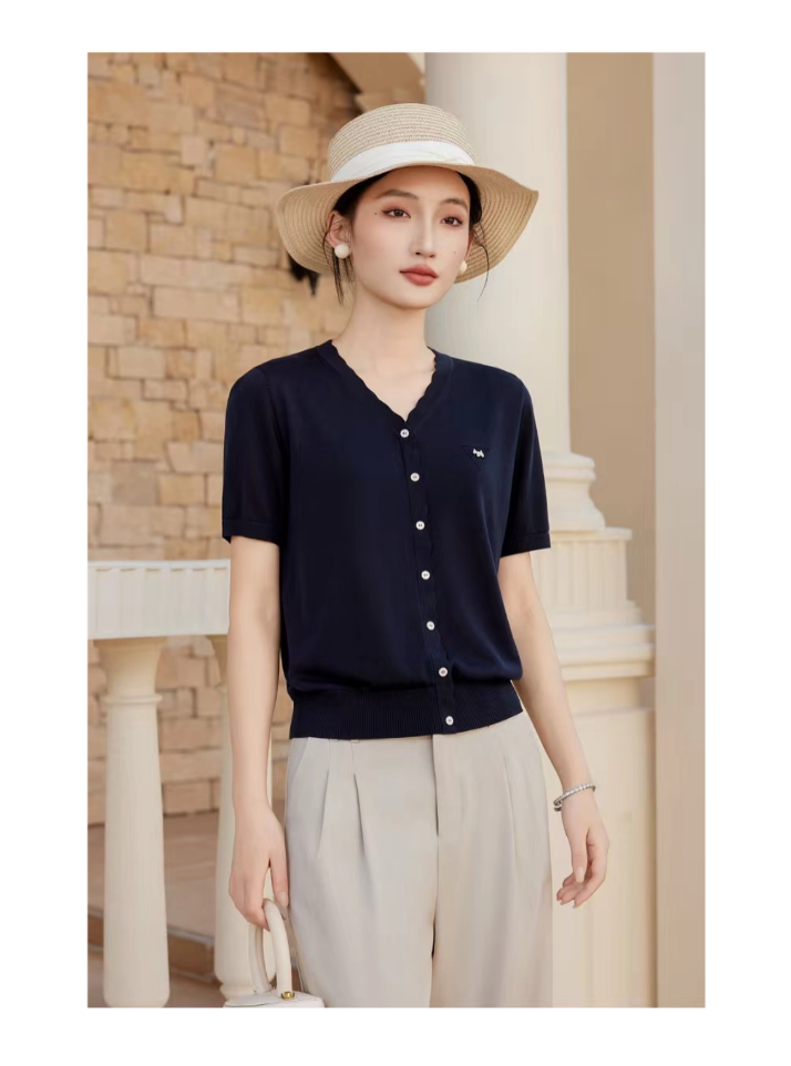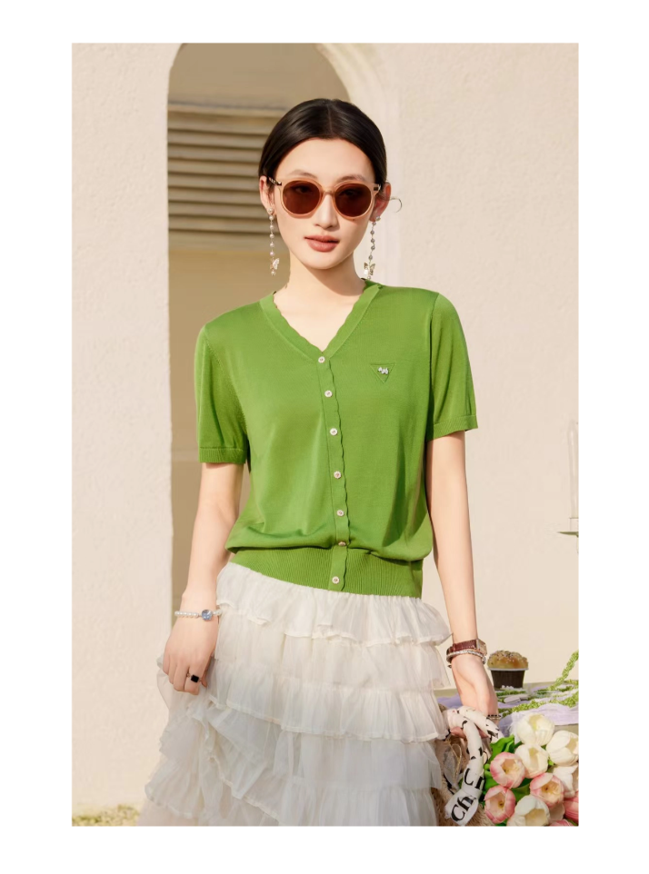 女装26春夏新品V领纽扣天丝短袖2290-20533
