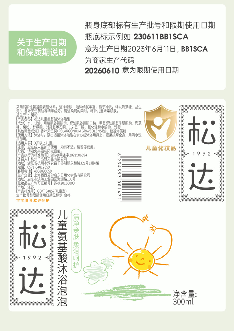 松达儿童氨基酸沐浴泡泡400ml/SD-02706