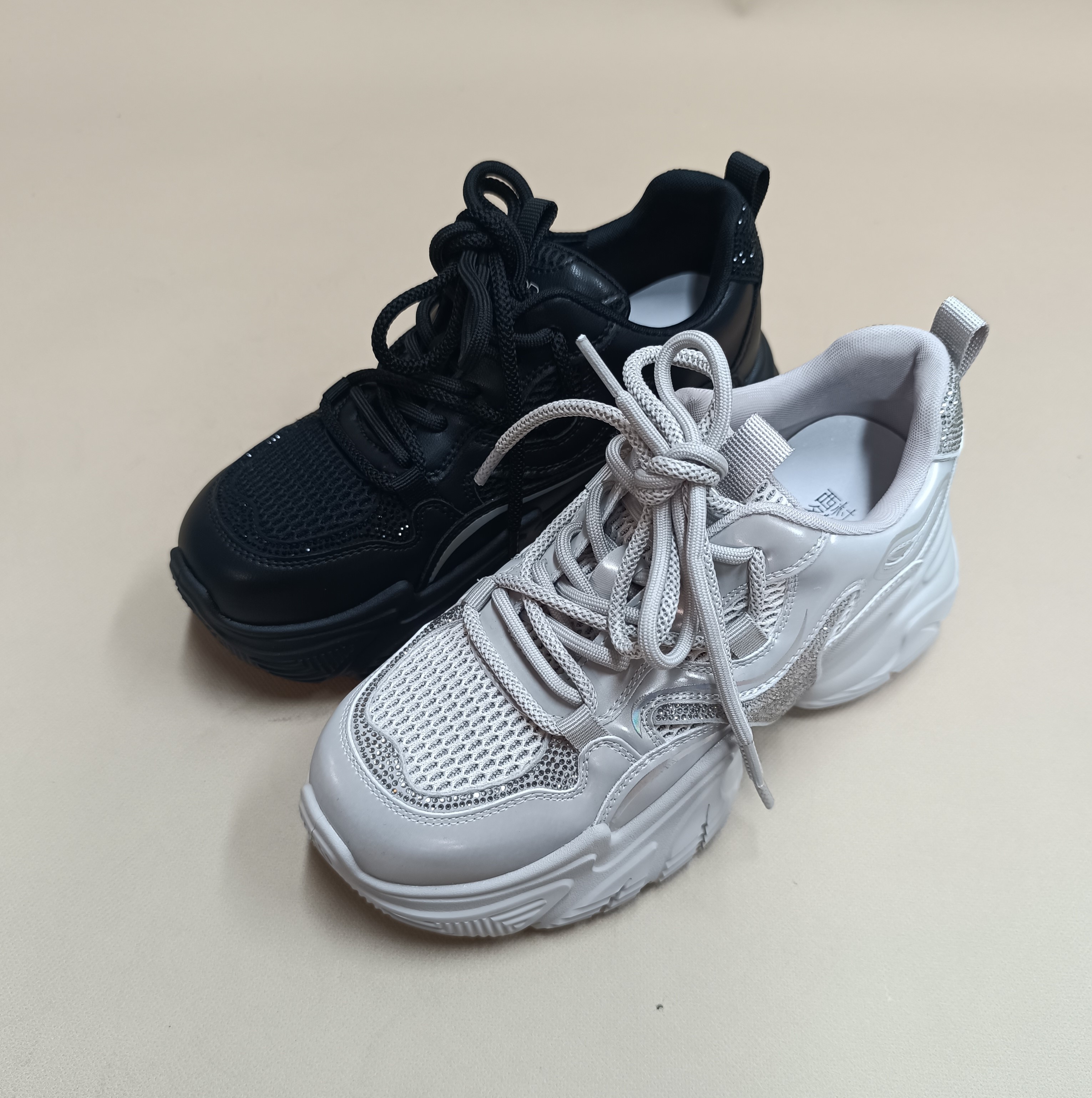 【潮流爆款】西村名物2025年秋季新款厚底轻便时尚带水钻休闲百搭透气老爹鞋运动鞋X25CM31811