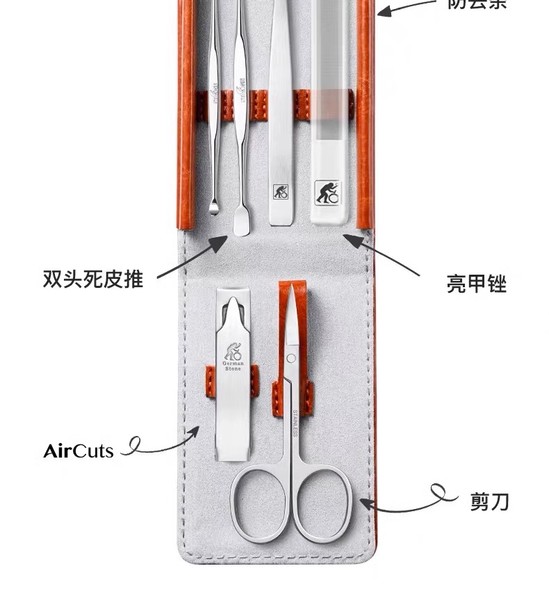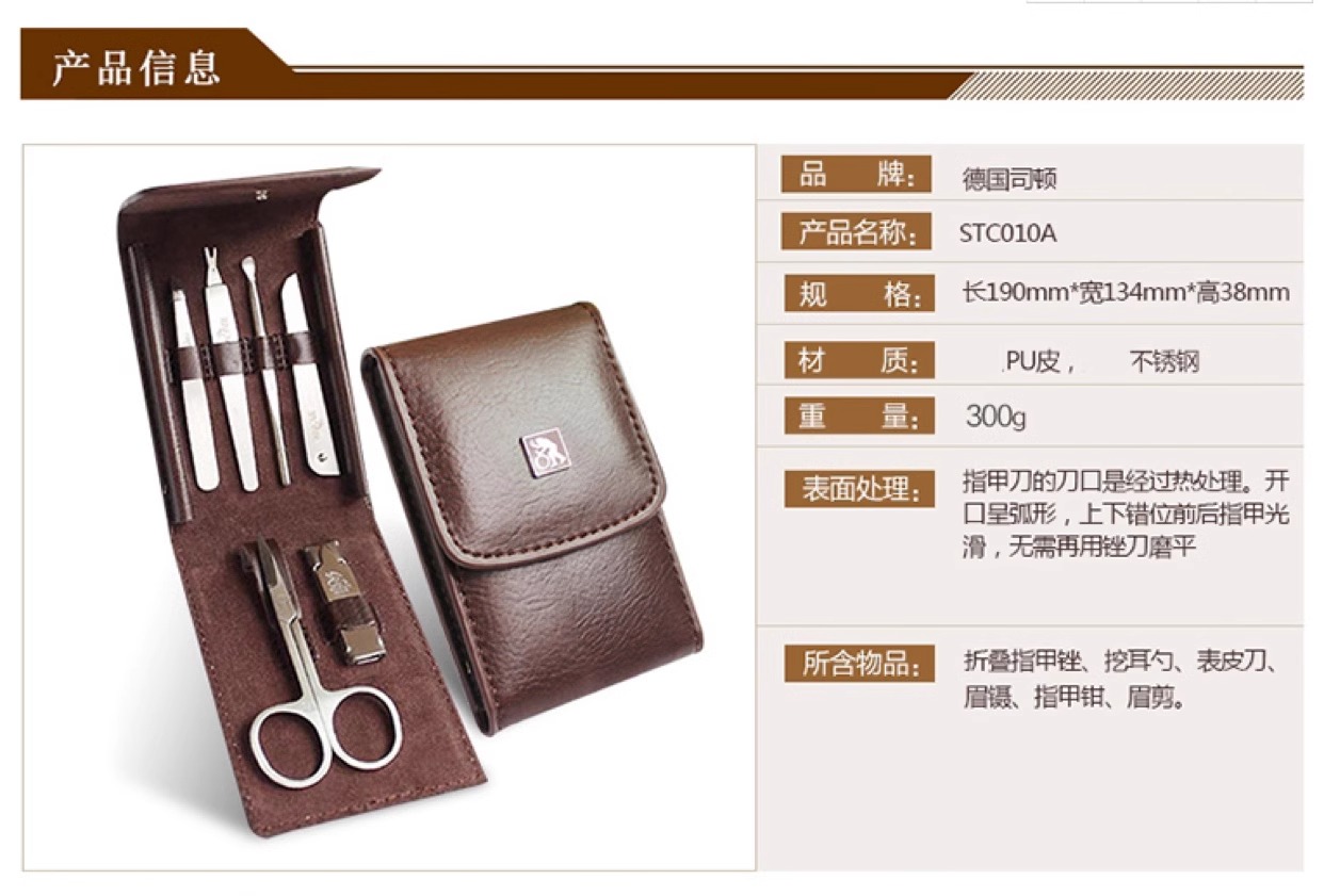 【分仓直发包邮】司顿修容修甲6件皮包套装 (配尖头眉剪)STC010A