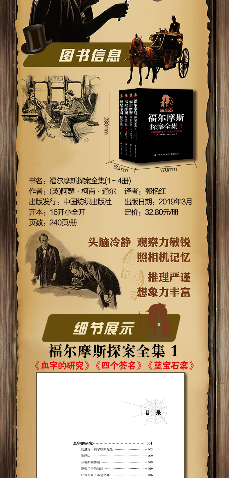 完整无删减4册】福尔摩斯探案全集(原著中文版)柯南道尔著侦探悬疑推理小说图文并茂世界名著青少年课外读物福尔摩斯探案集