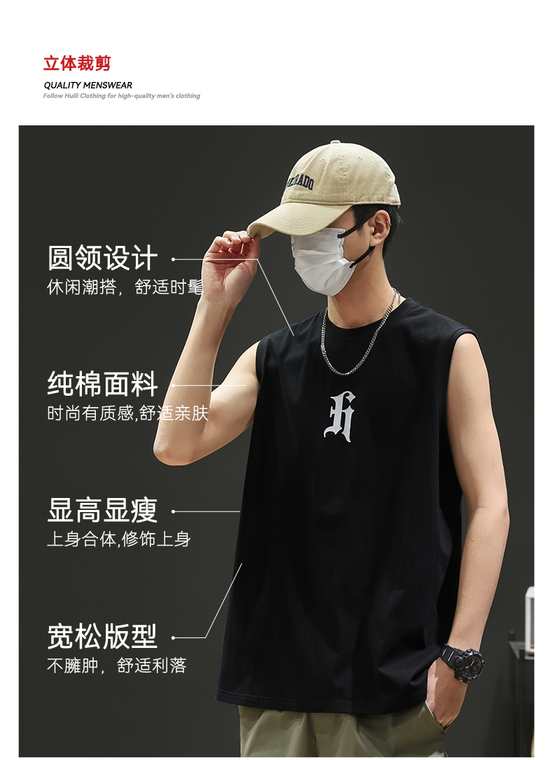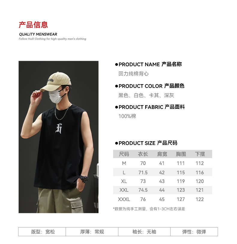 回力背心男款夏季新款美式潮流上衣健身运动坎肩纯棉无袖男士t恤