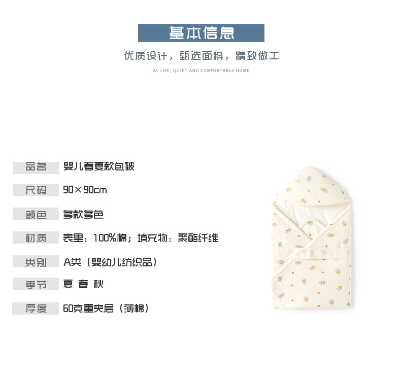 初生婴儿抱被新生儿包被纯棉包单春秋薄棉宝宝被子襁褓产房用品