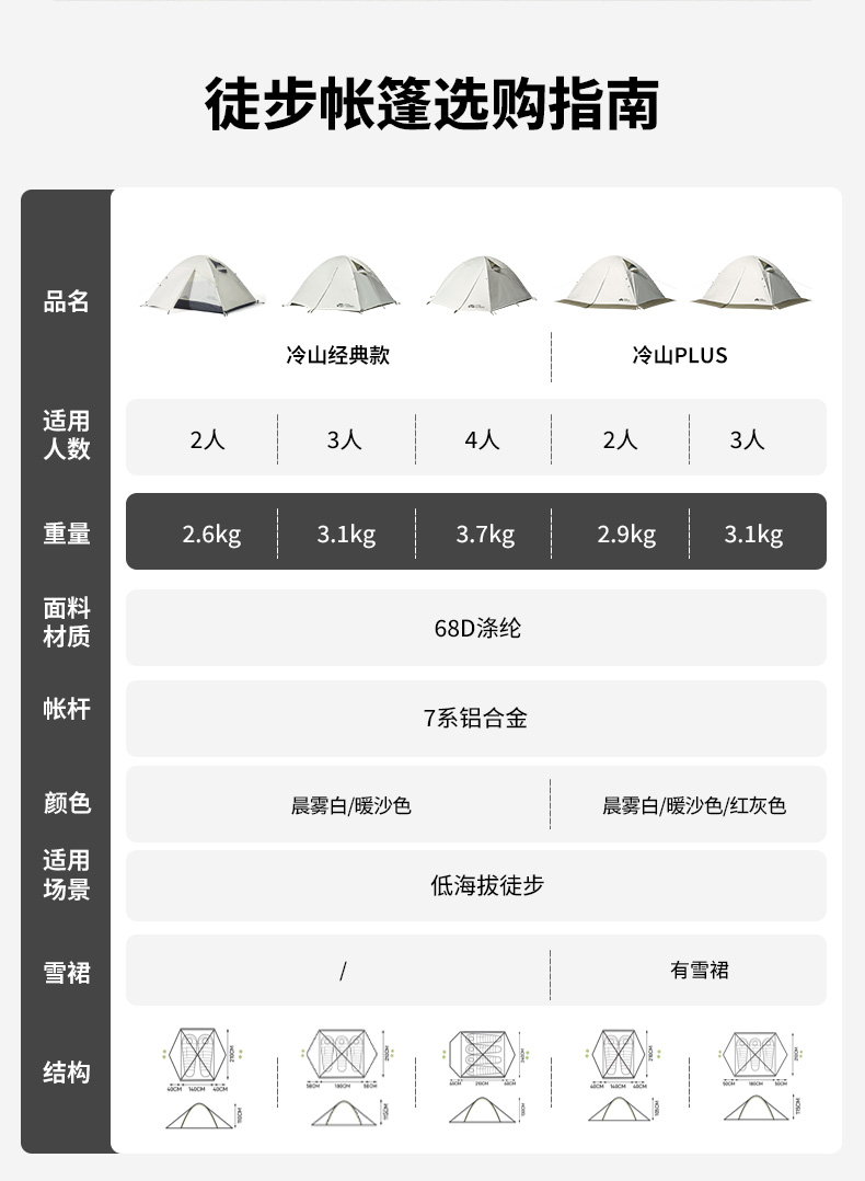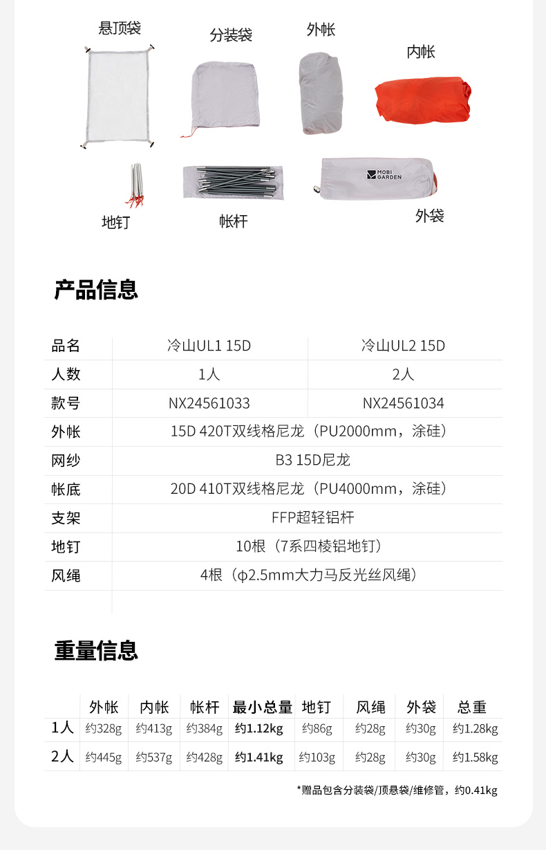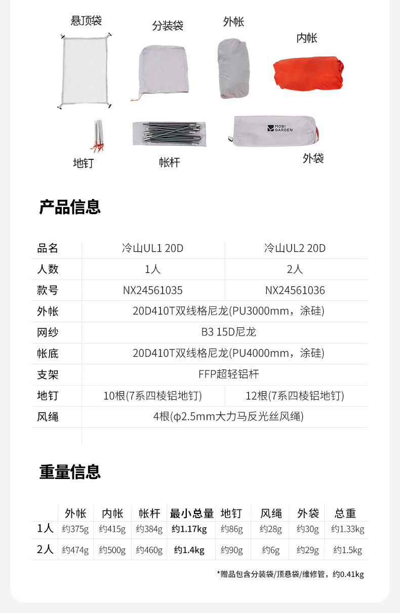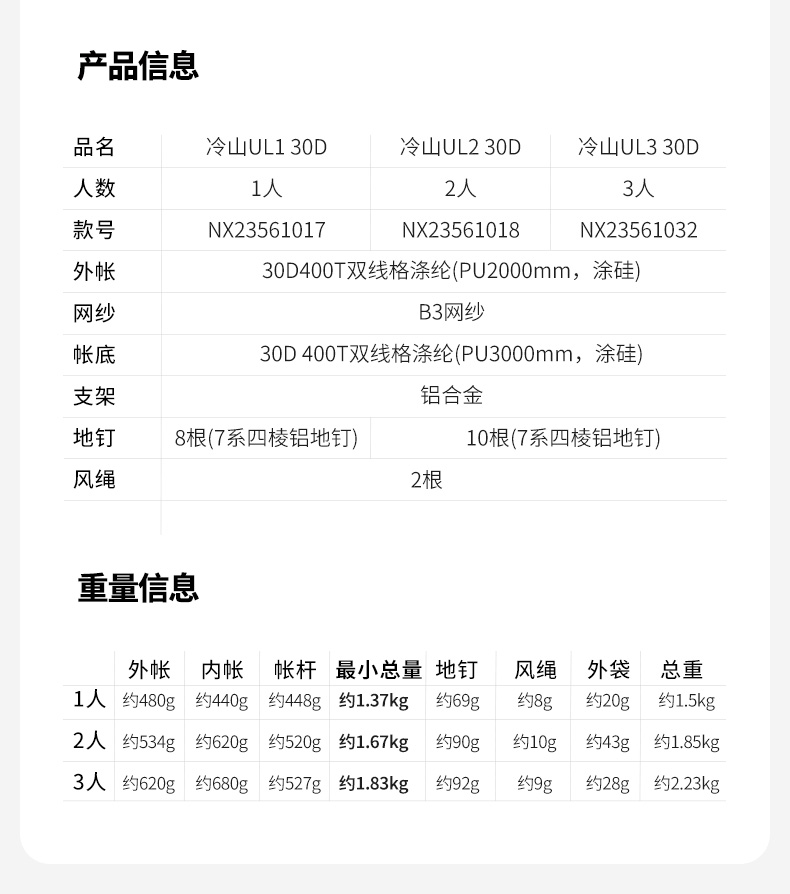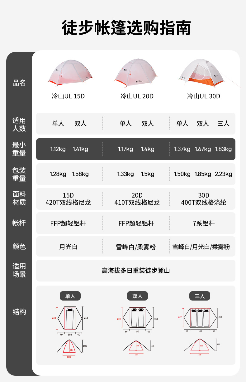 牧高笛冷山帐篷徒步登山露营户外野营过夜单人双人轻量化防雨