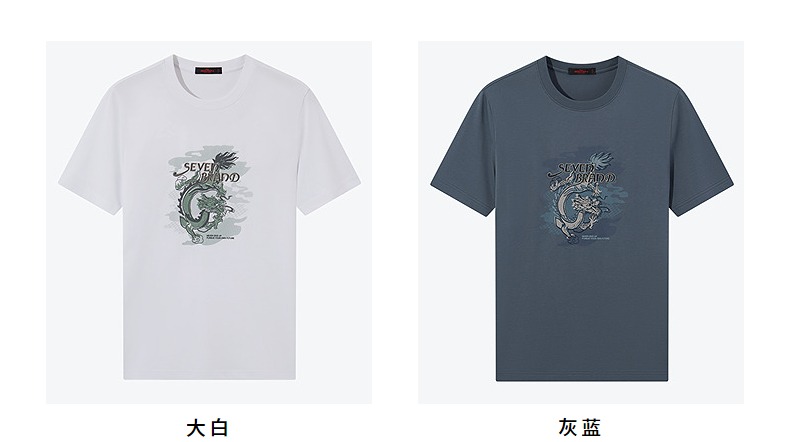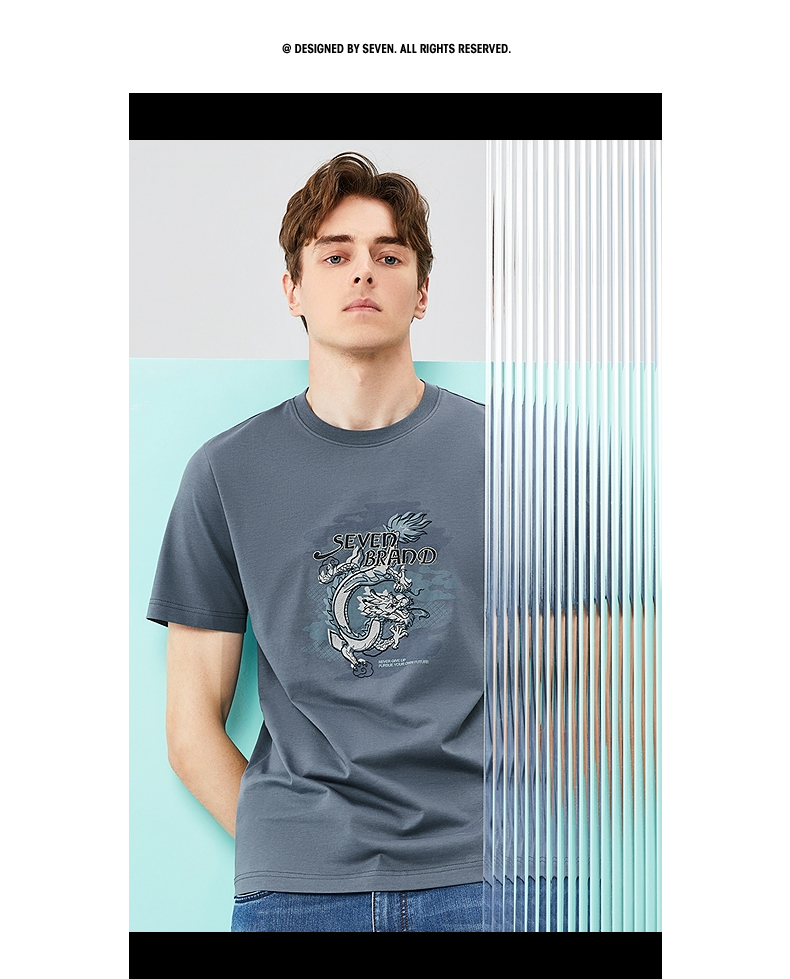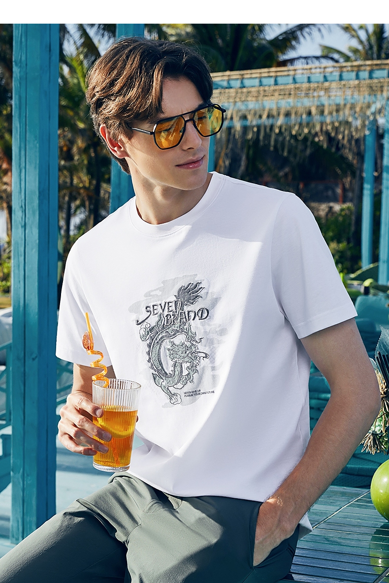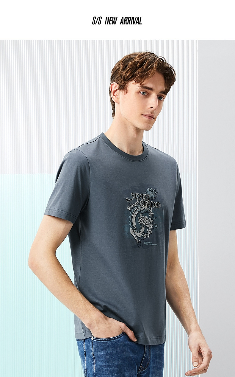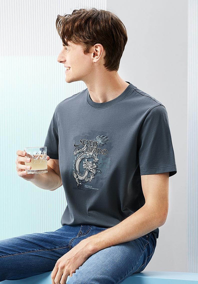 【冰藻泥】柒牌男装短袖T恤男夏季薄款时尚龙纹印花休闲圆领上衣 126T71940