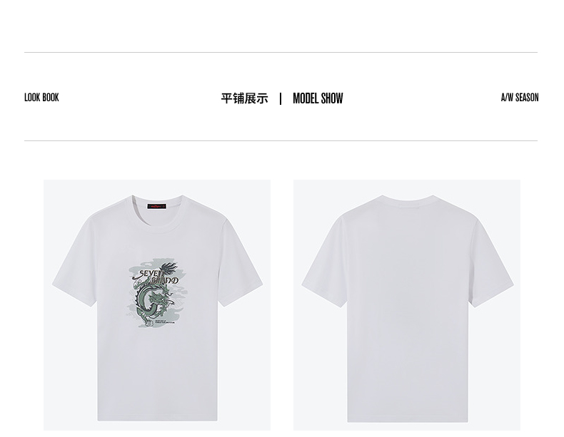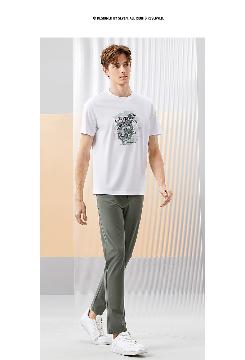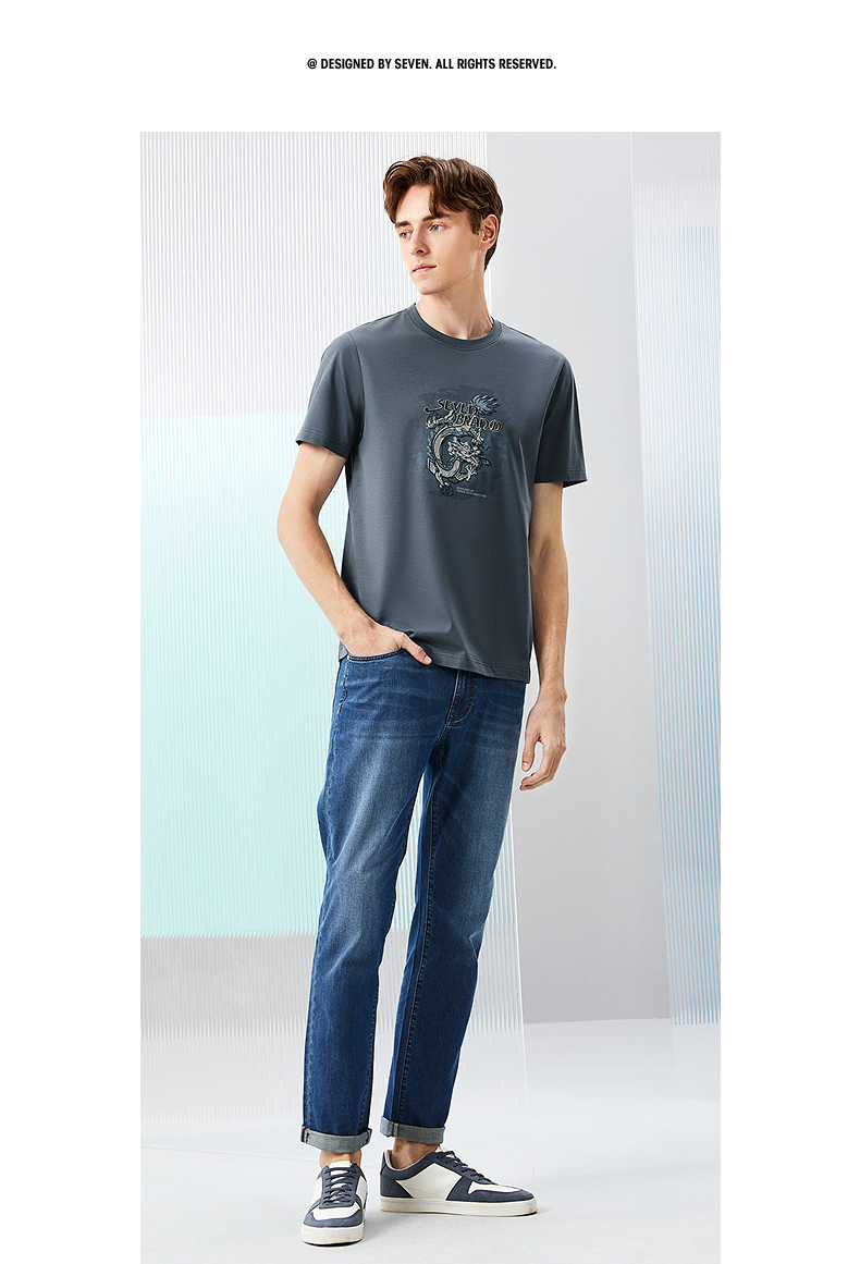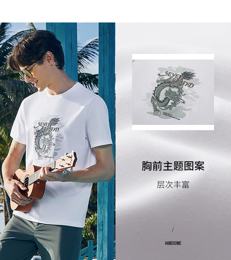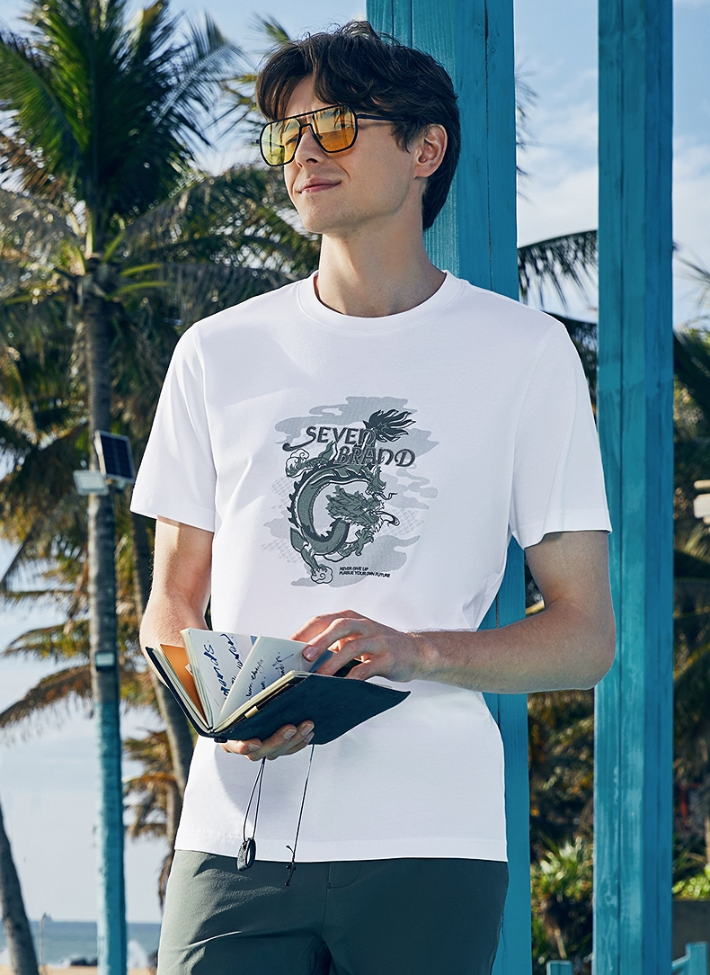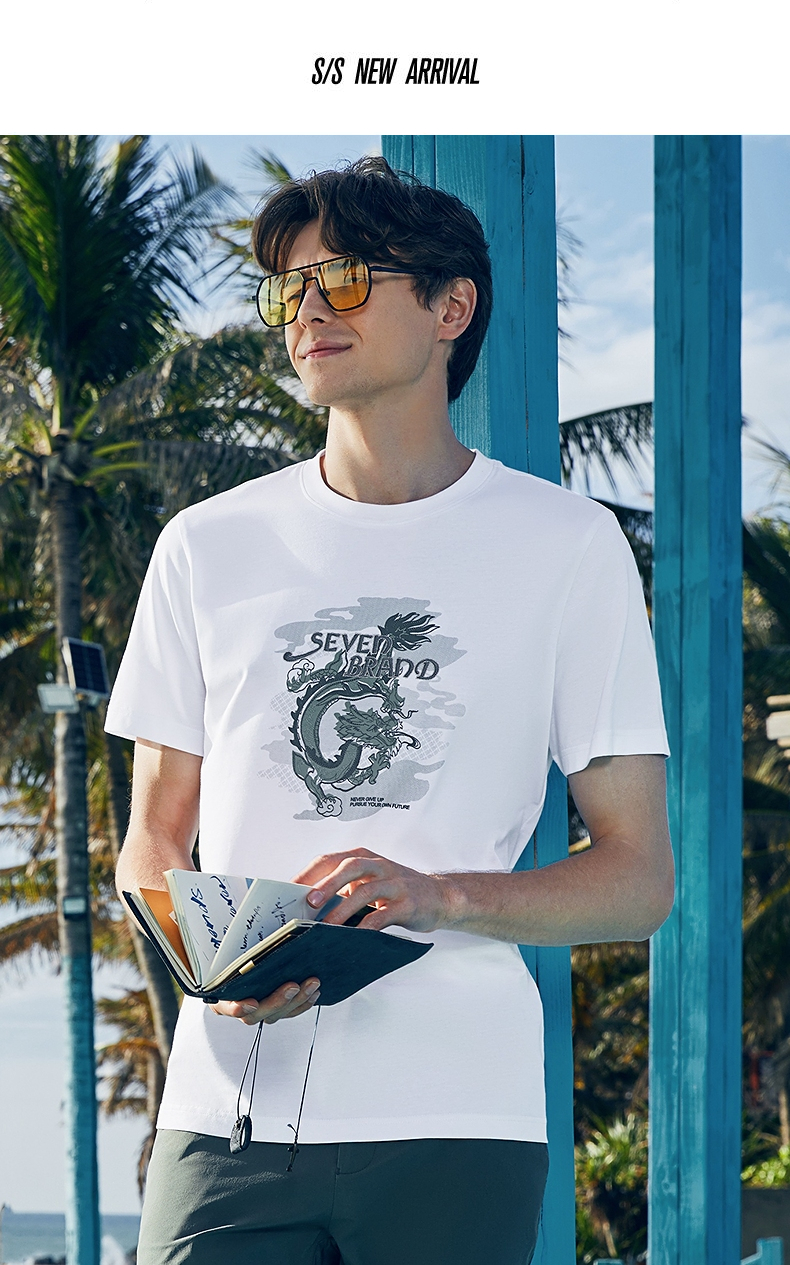 【冰藻泥】柒牌男装短袖T恤男夏季薄款时尚龙纹印花休闲圆领上衣 126T71940