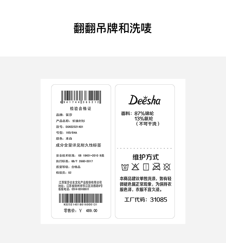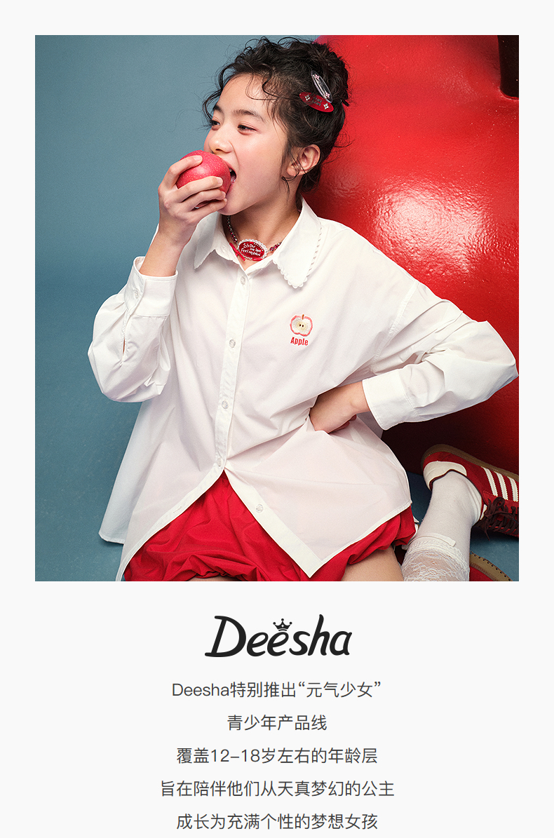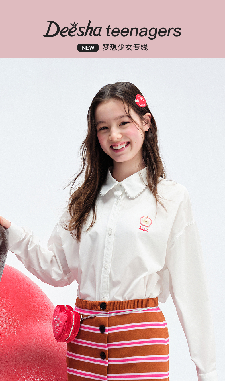 笛莎Deesha青少年女童衬衫2025夏季女童长袖衬衫