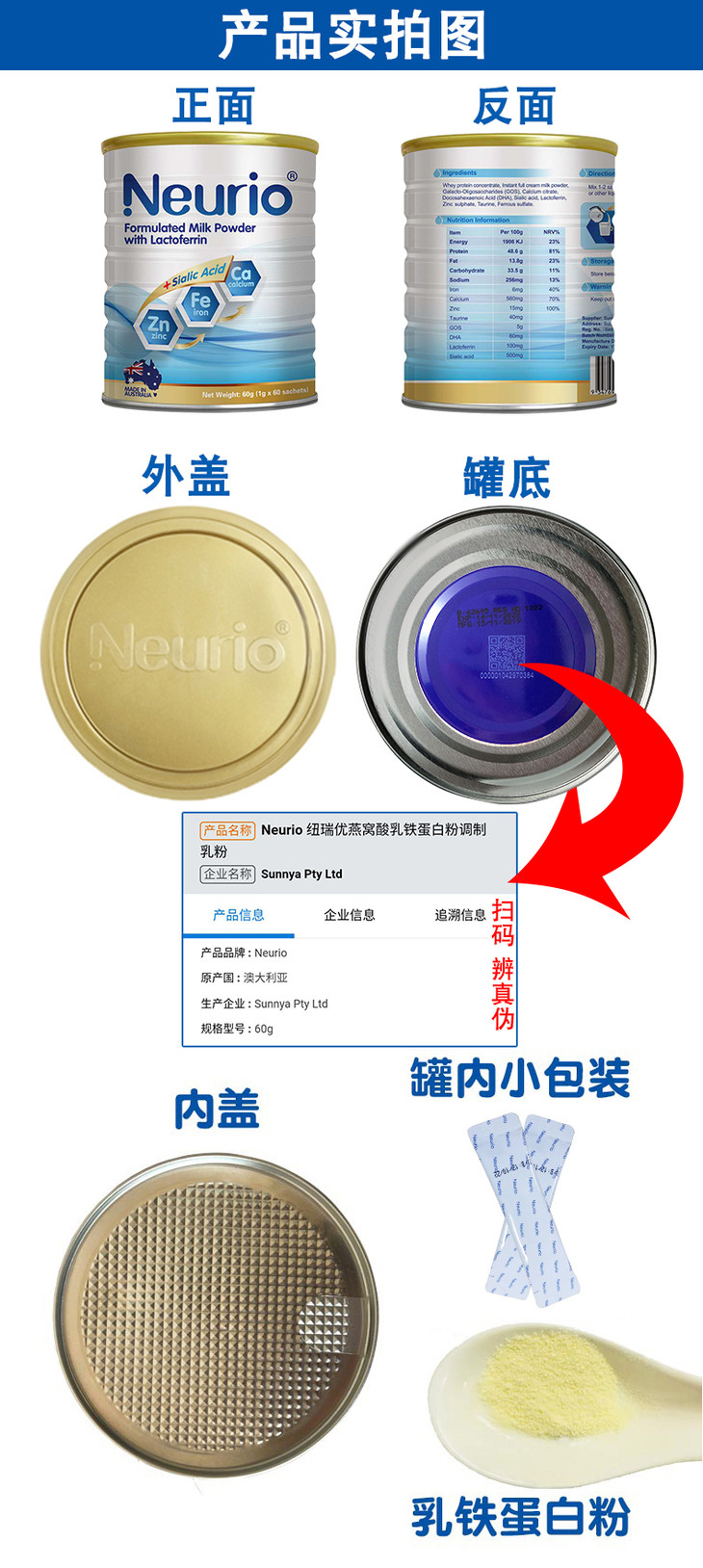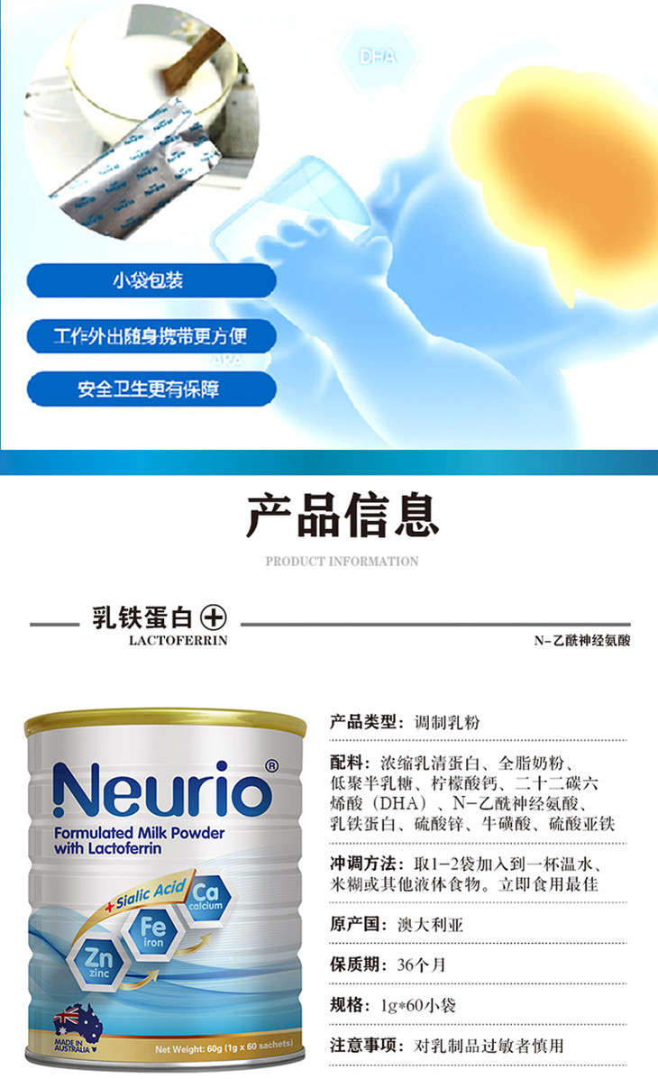 Neurio 纽瑞优乳铁蛋白粉黄金版 60g