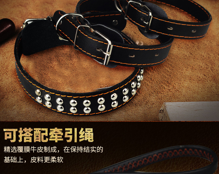 【清仓中】宠物牛皮脖圈项圈脖套 牛皮牵引绳狗绳子狗链子用品