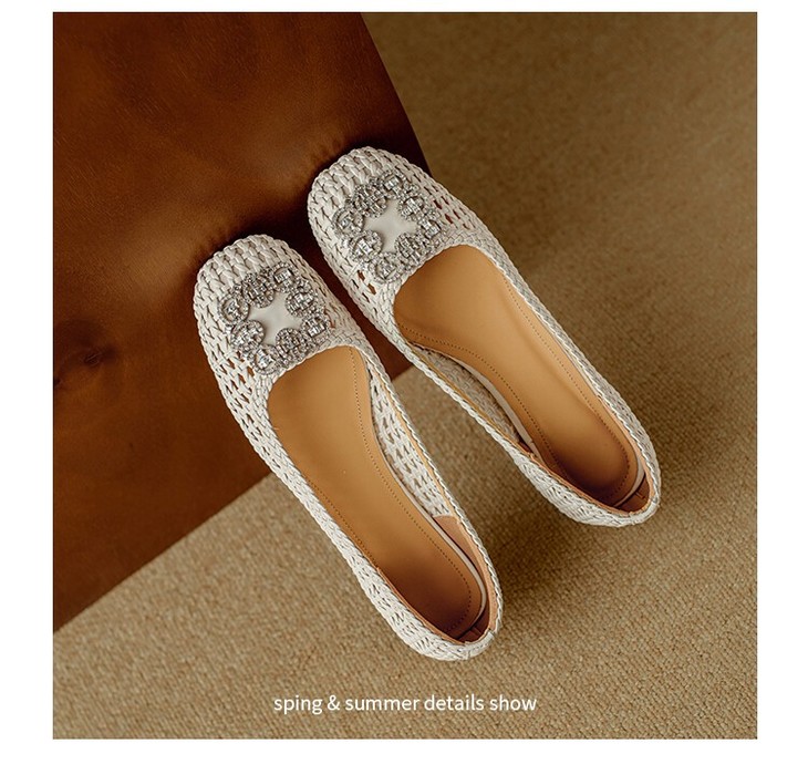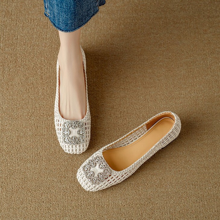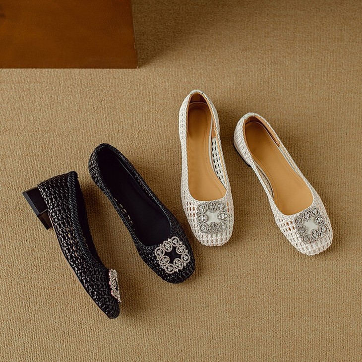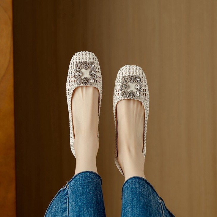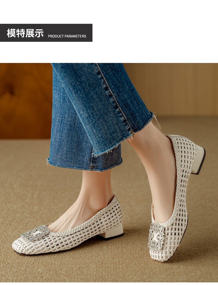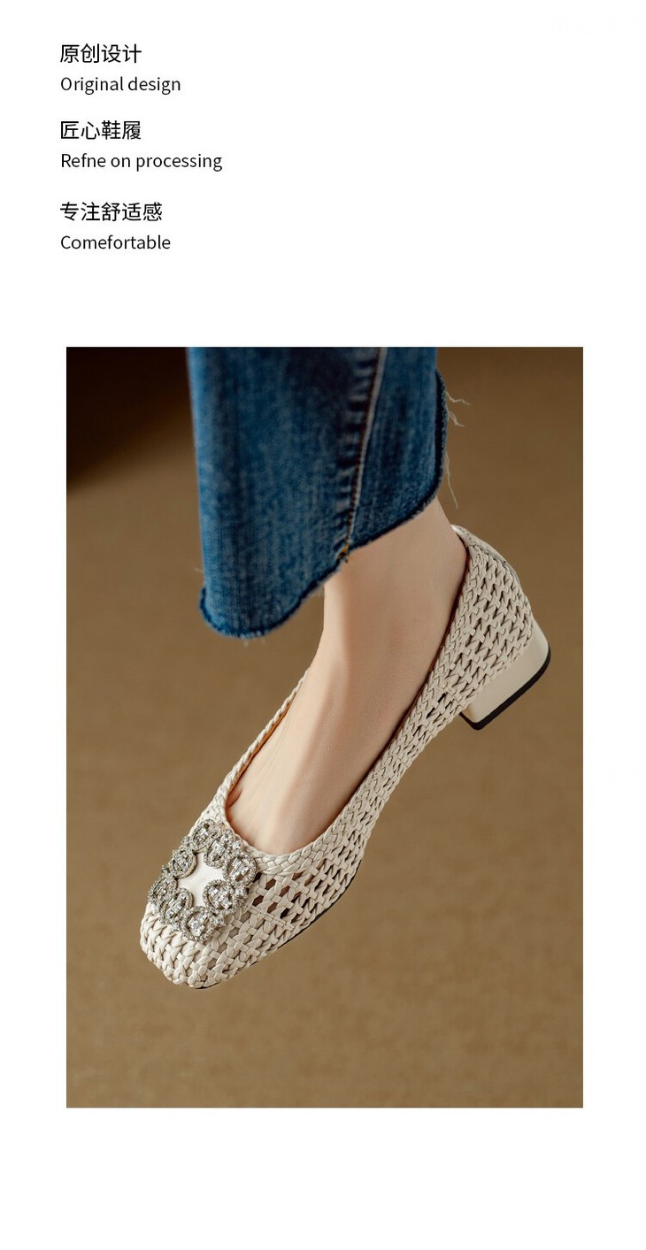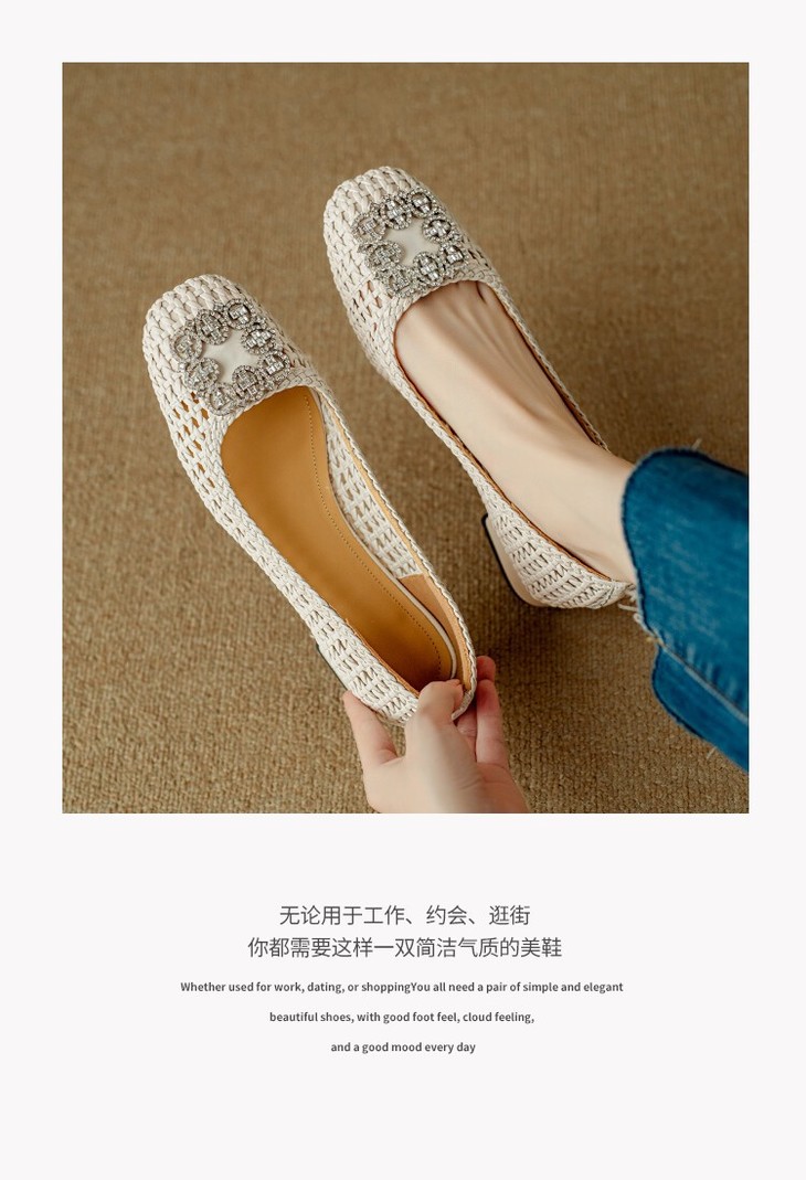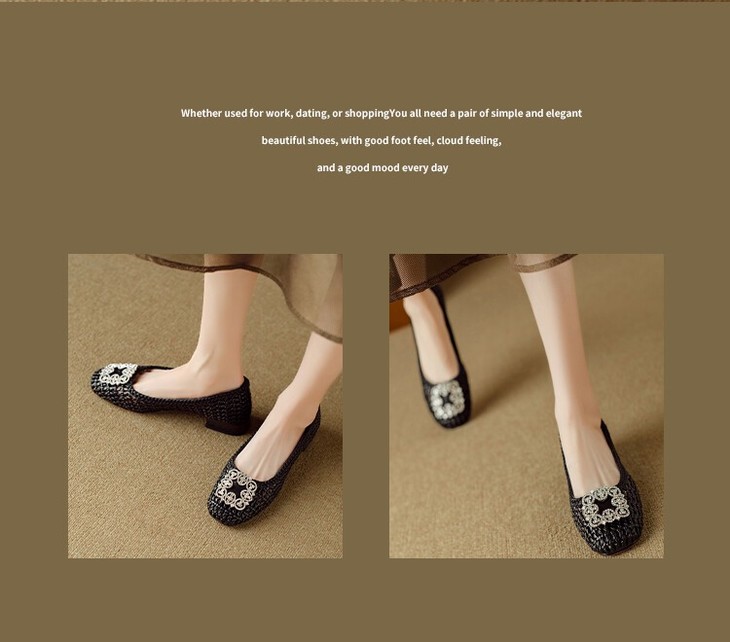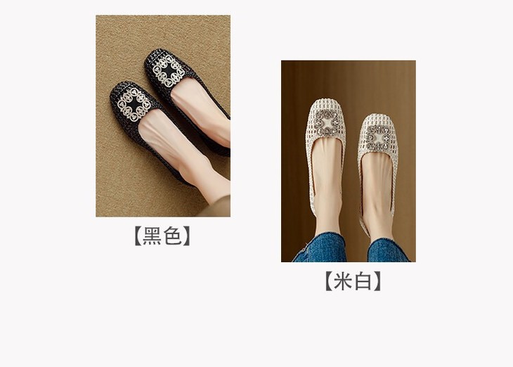 【预售5天】仙女风方头浅口,一脚蹬休闲水钻方头豆豆鞋NJMK&K1025